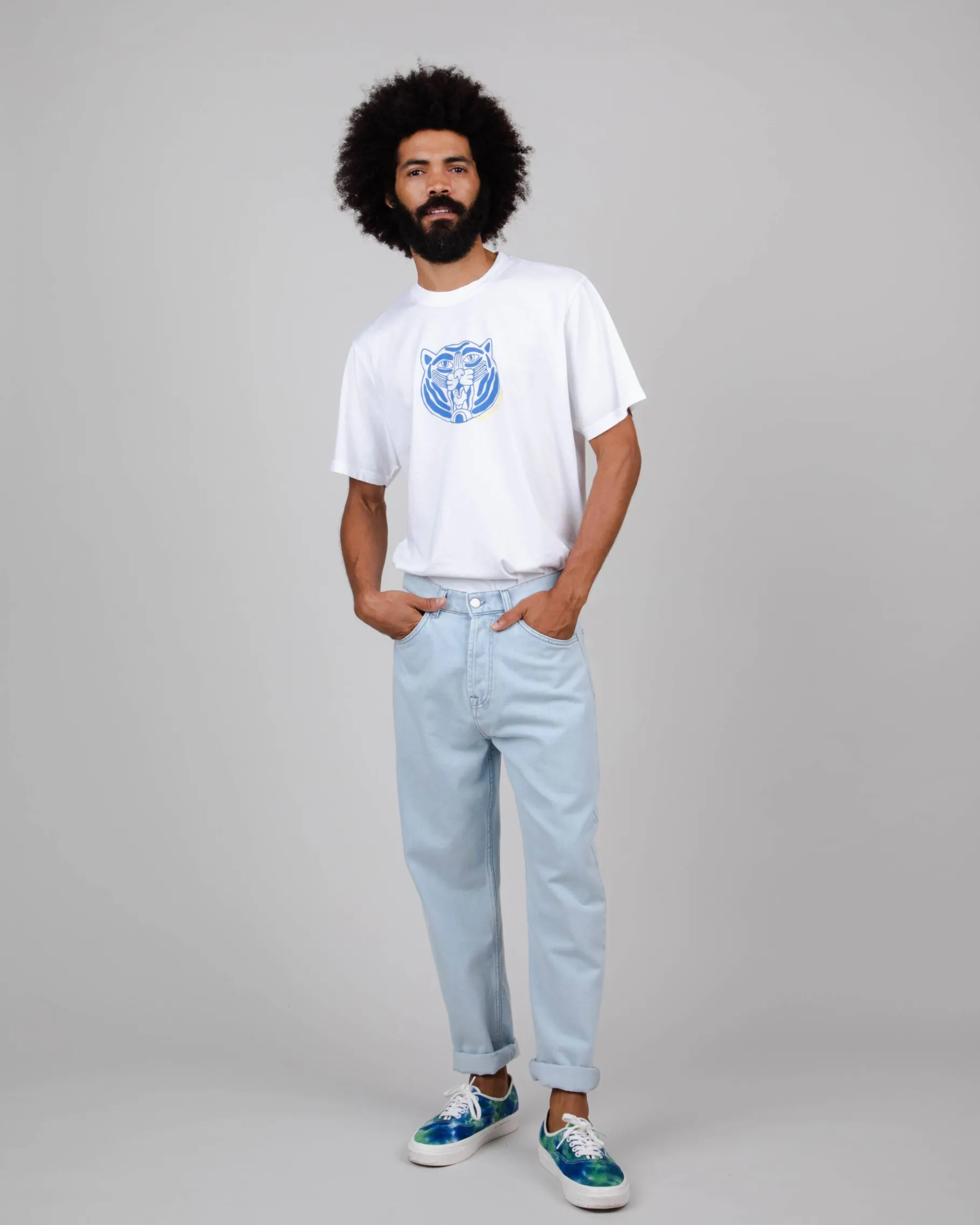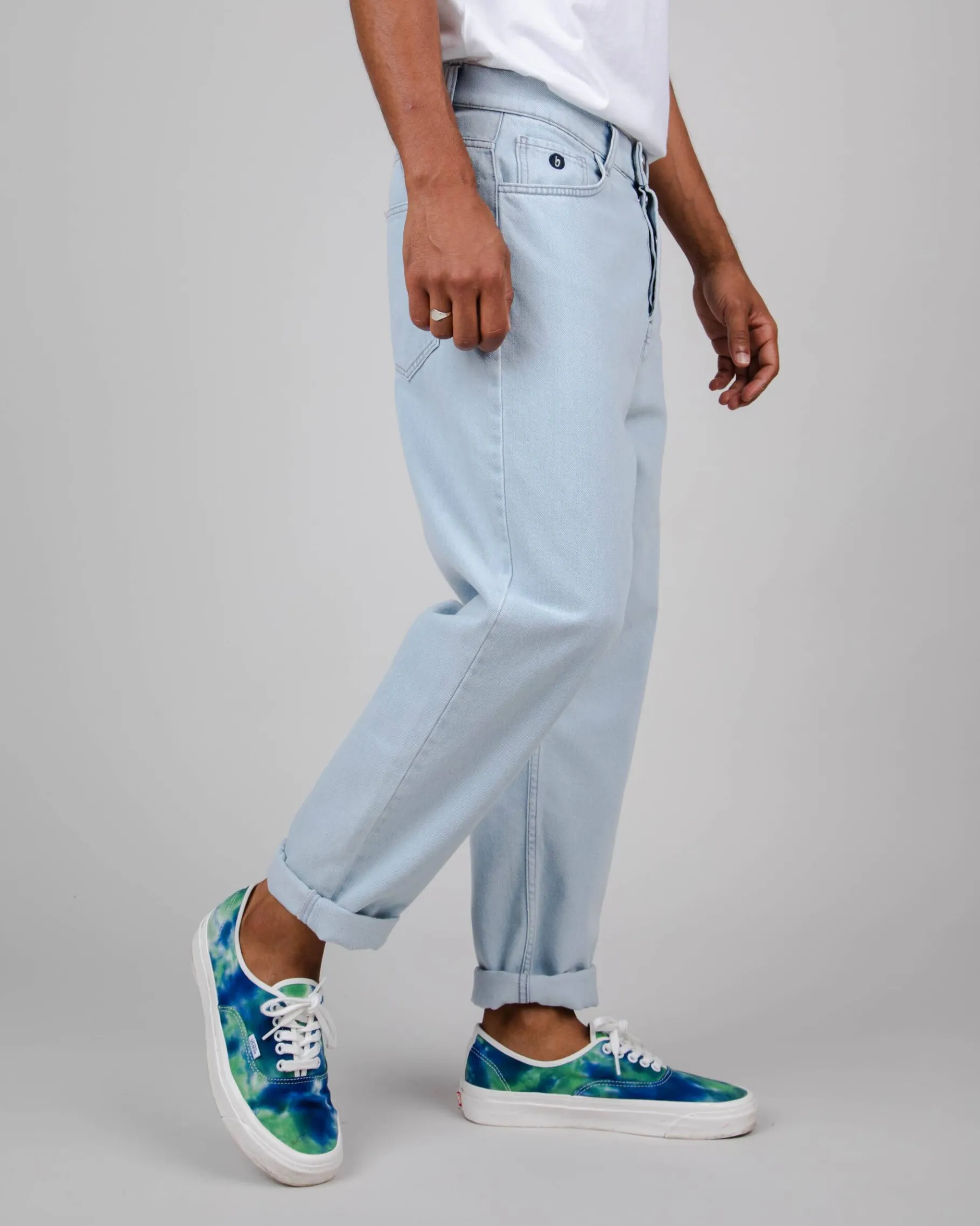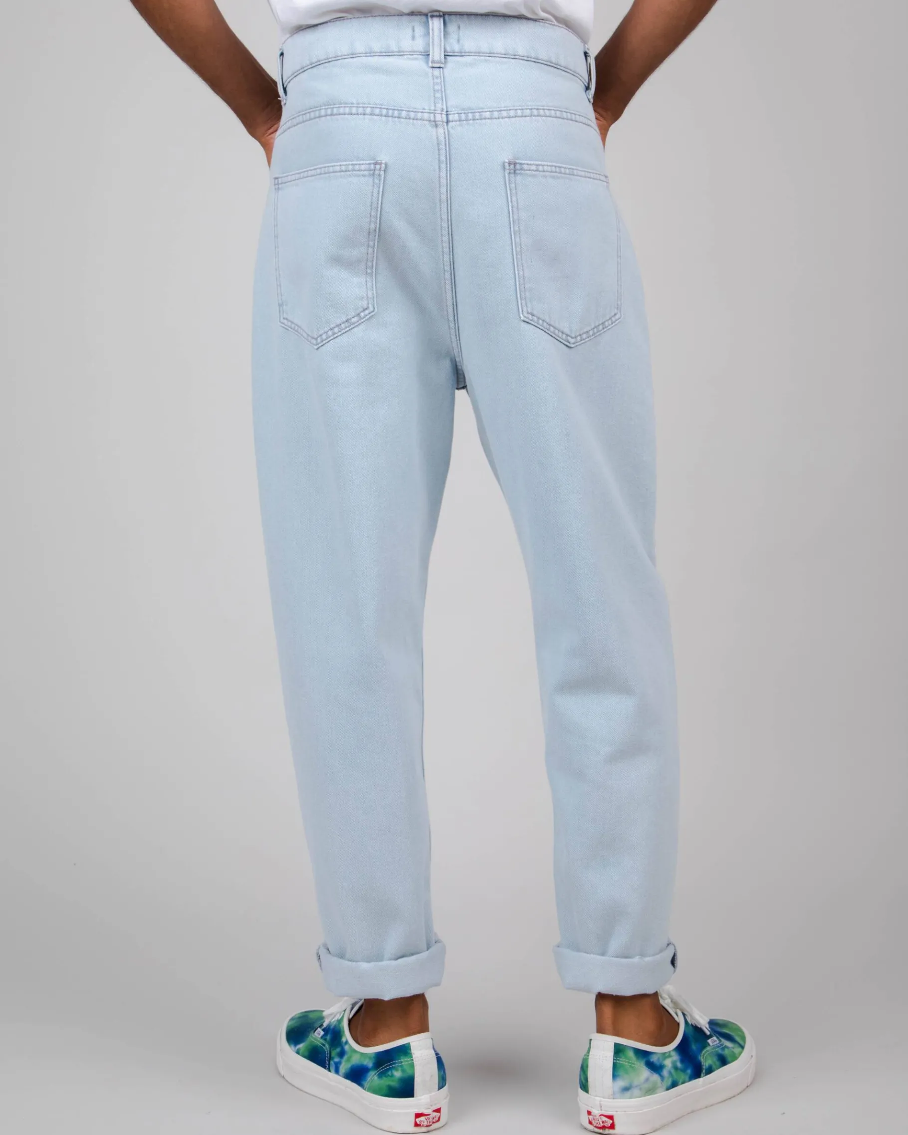 Lange Hose mit geradem Bein, Reiß- und Knopfverschluss. Mit Taschen auf der Vorderseite und aufgesetzter Tasche auf der Rückseite. Ethisch hergestellt aus Baumwolle, Jeansstoff Post-Consumer-Recycling, Recycling-Polyester und Pre-Consumer-Polyester.| Waschhinweise