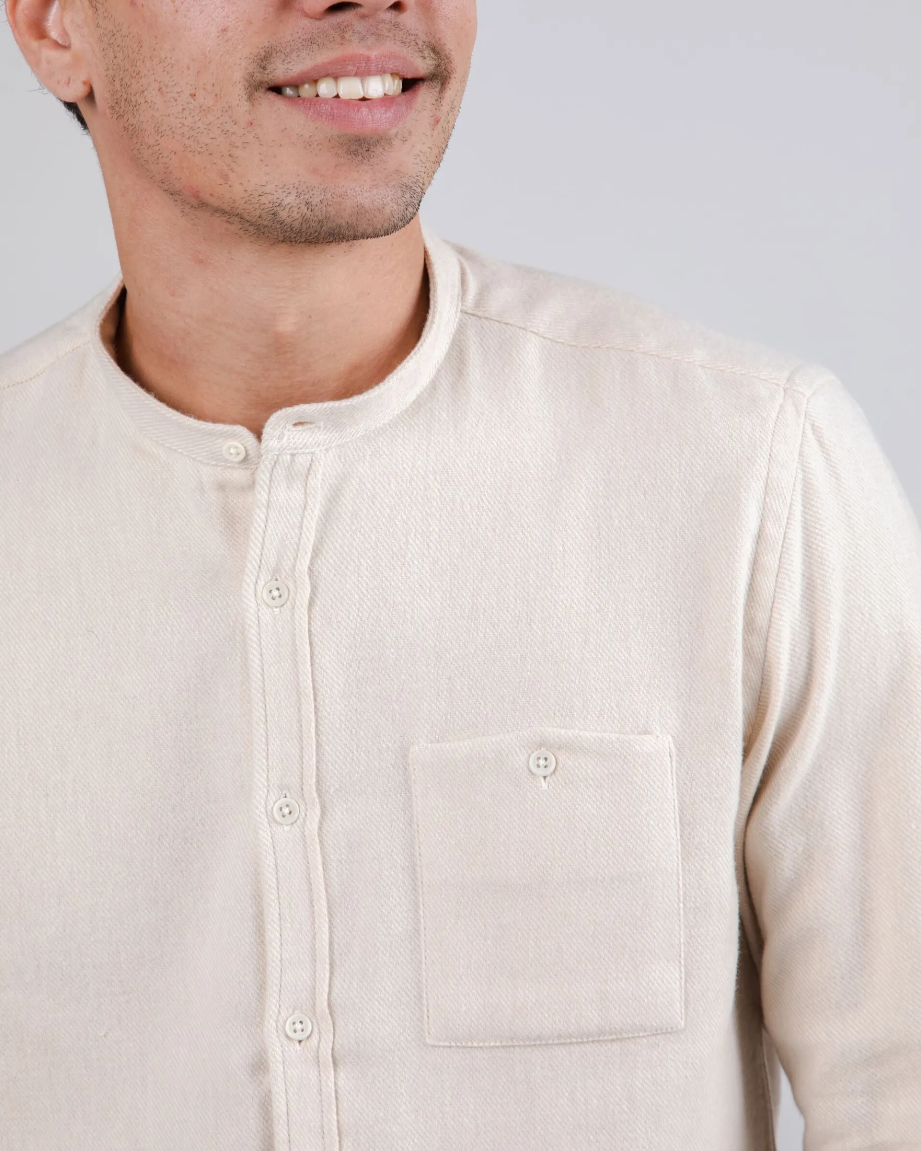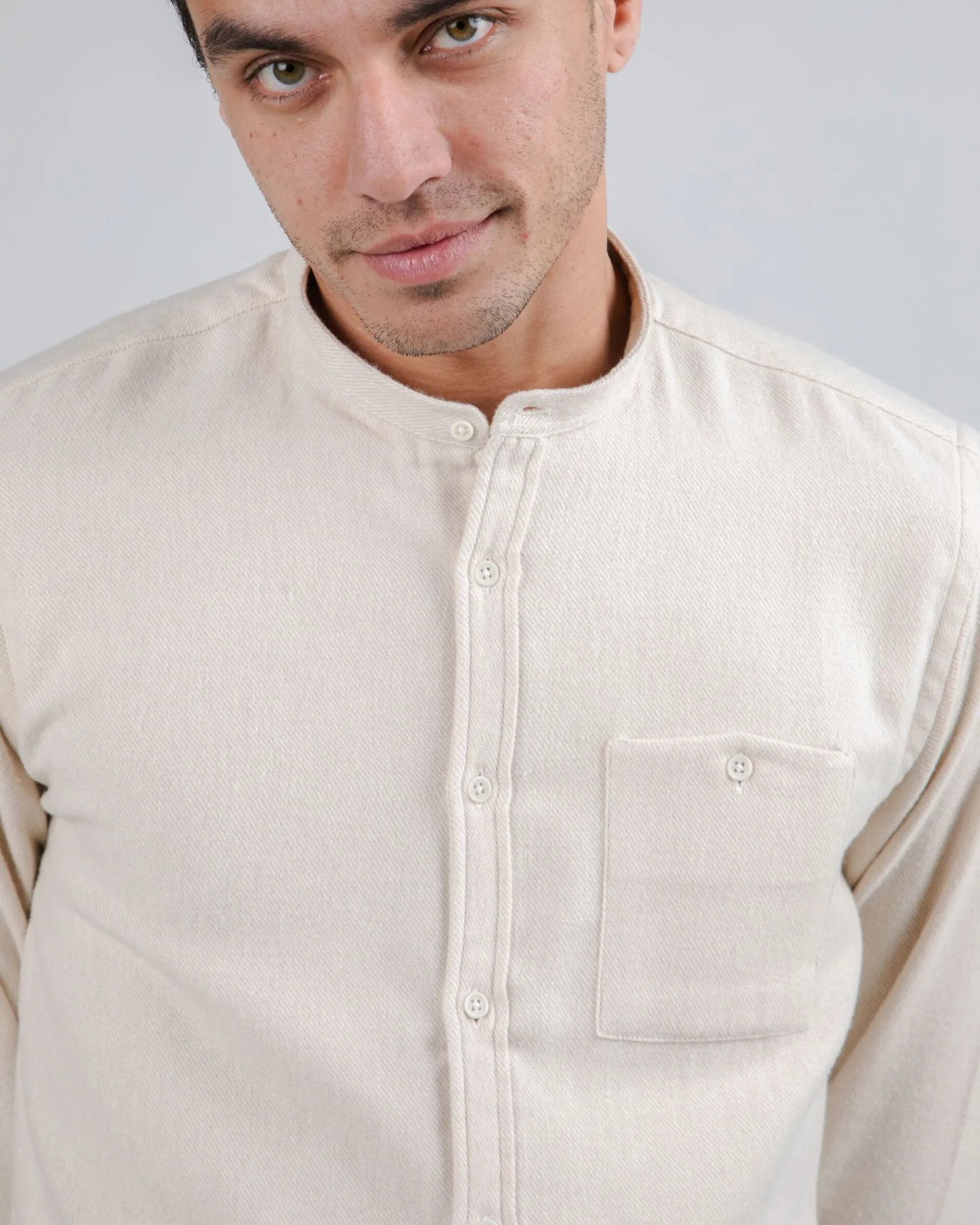 Versatile, elegant and comfortable: We gave a twist to the mao collar shirt and designed it with a pocket and in flannel – perfect to add a timeless shirt to your winter wardrobe.