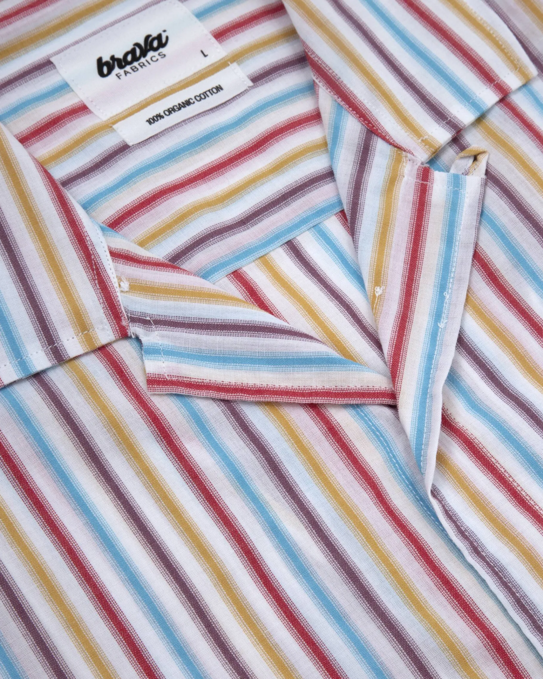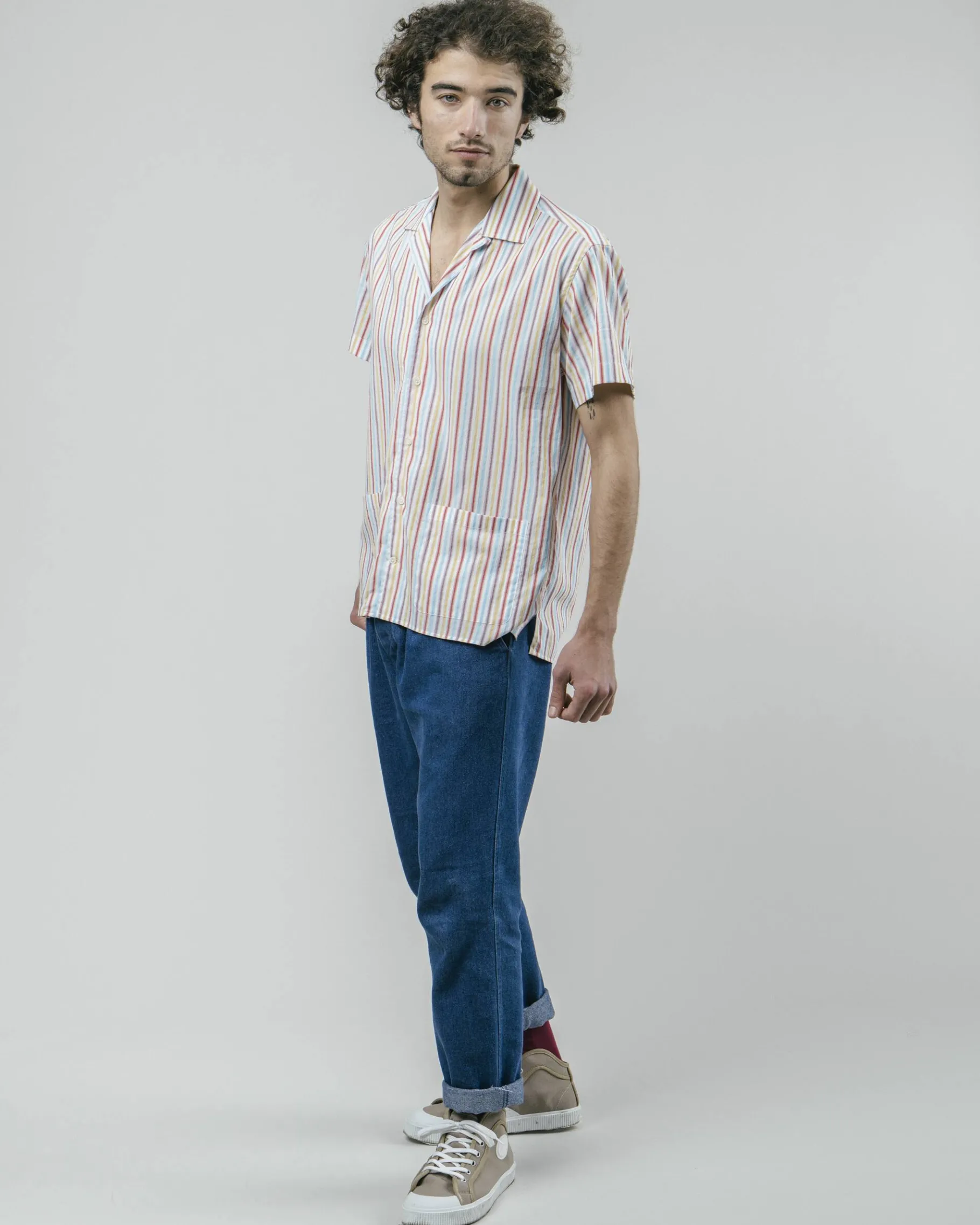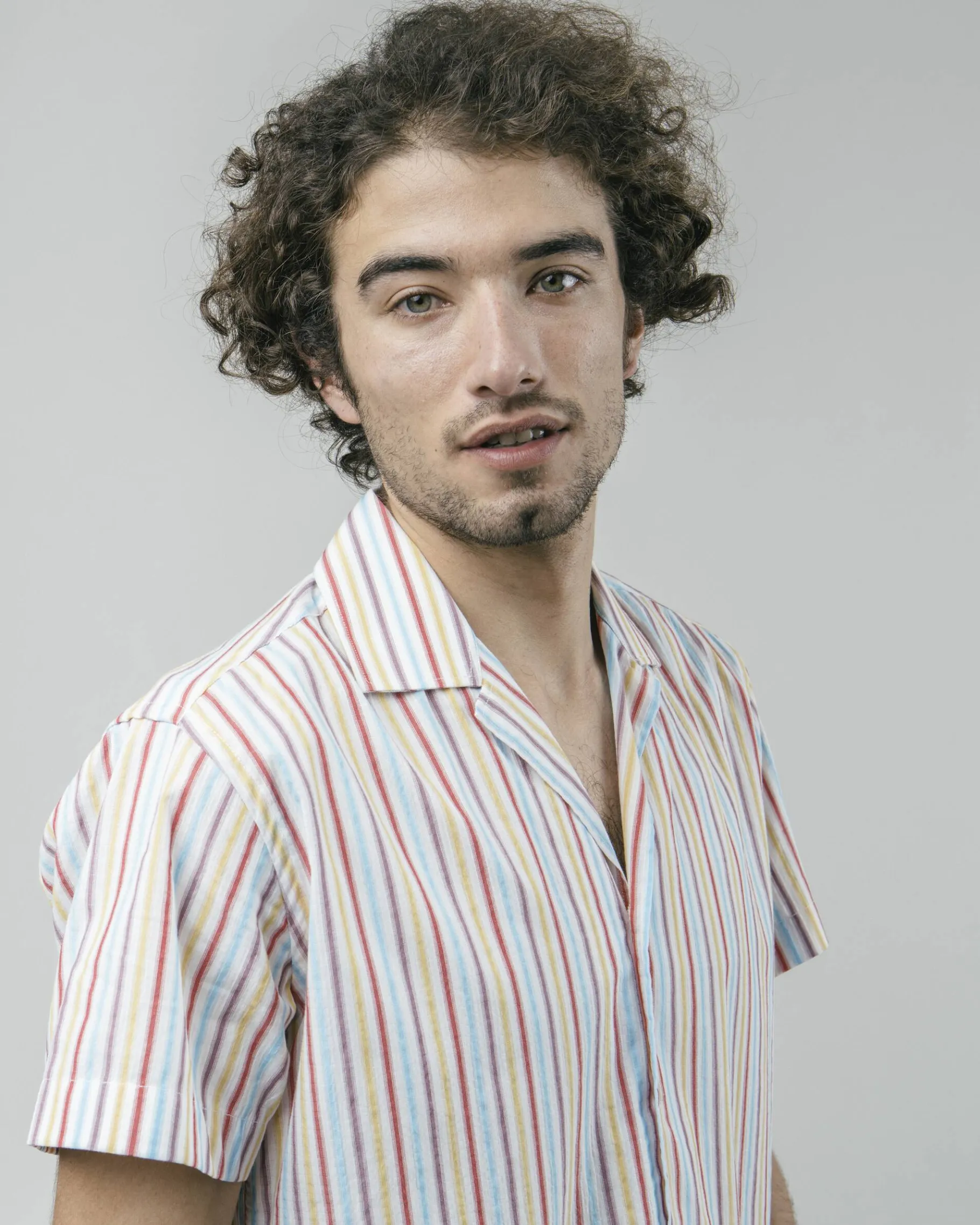 Klassisch und außergewöhnlich zugleich: Dieses Kurzarmhemd in sommerlichen Tönen ist vom klassischen Hawaiihemd inspiriert. Mit sanftem Streifenmuster und lockerer Passform liegt es perfekt zwischen lässig und elegant und bietet dir dabeu extra Komfort.