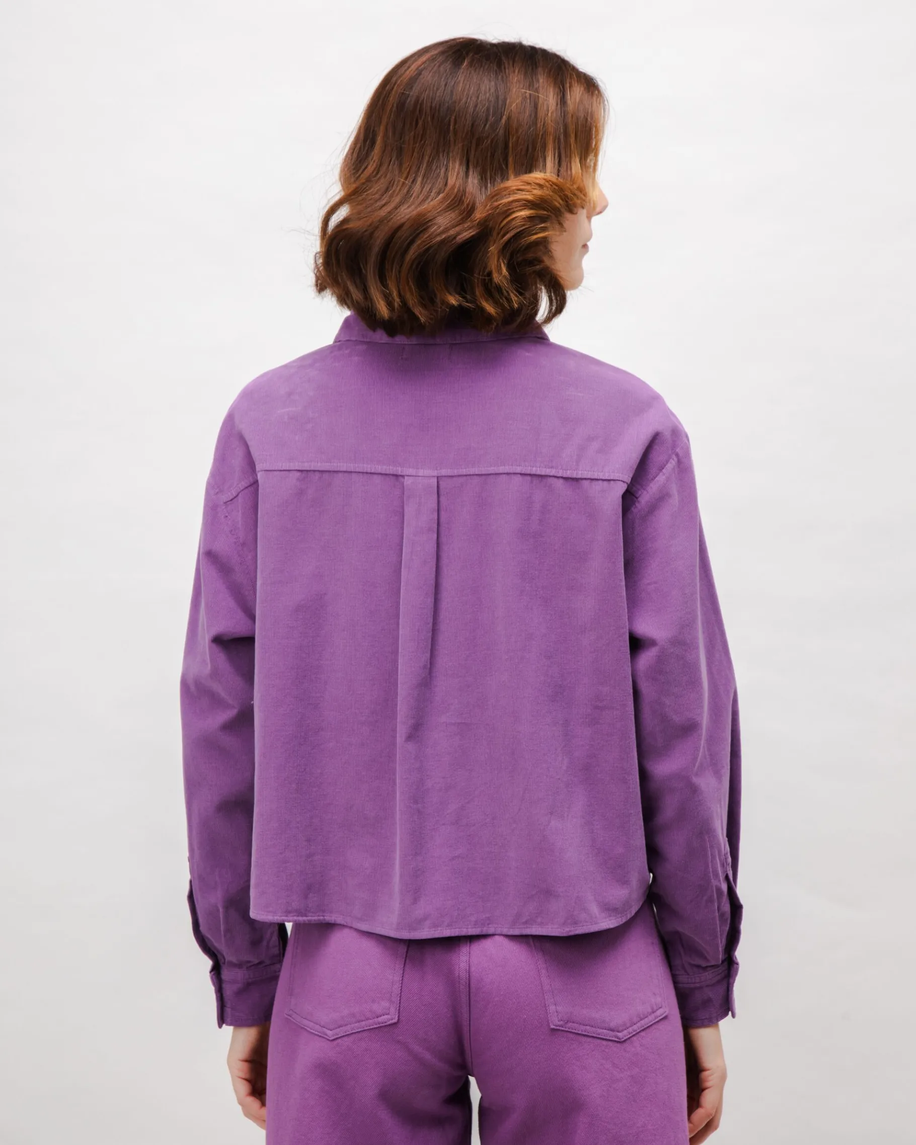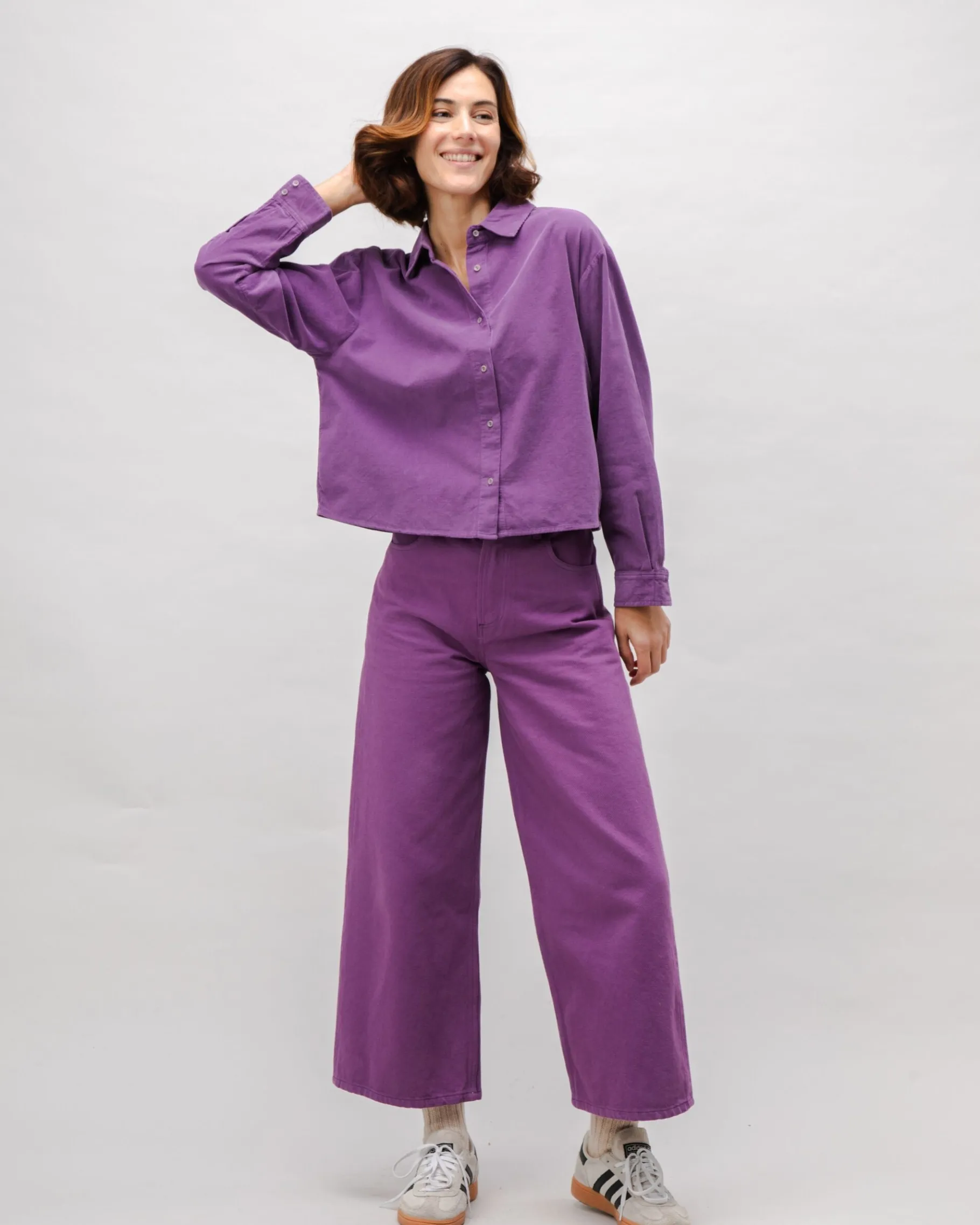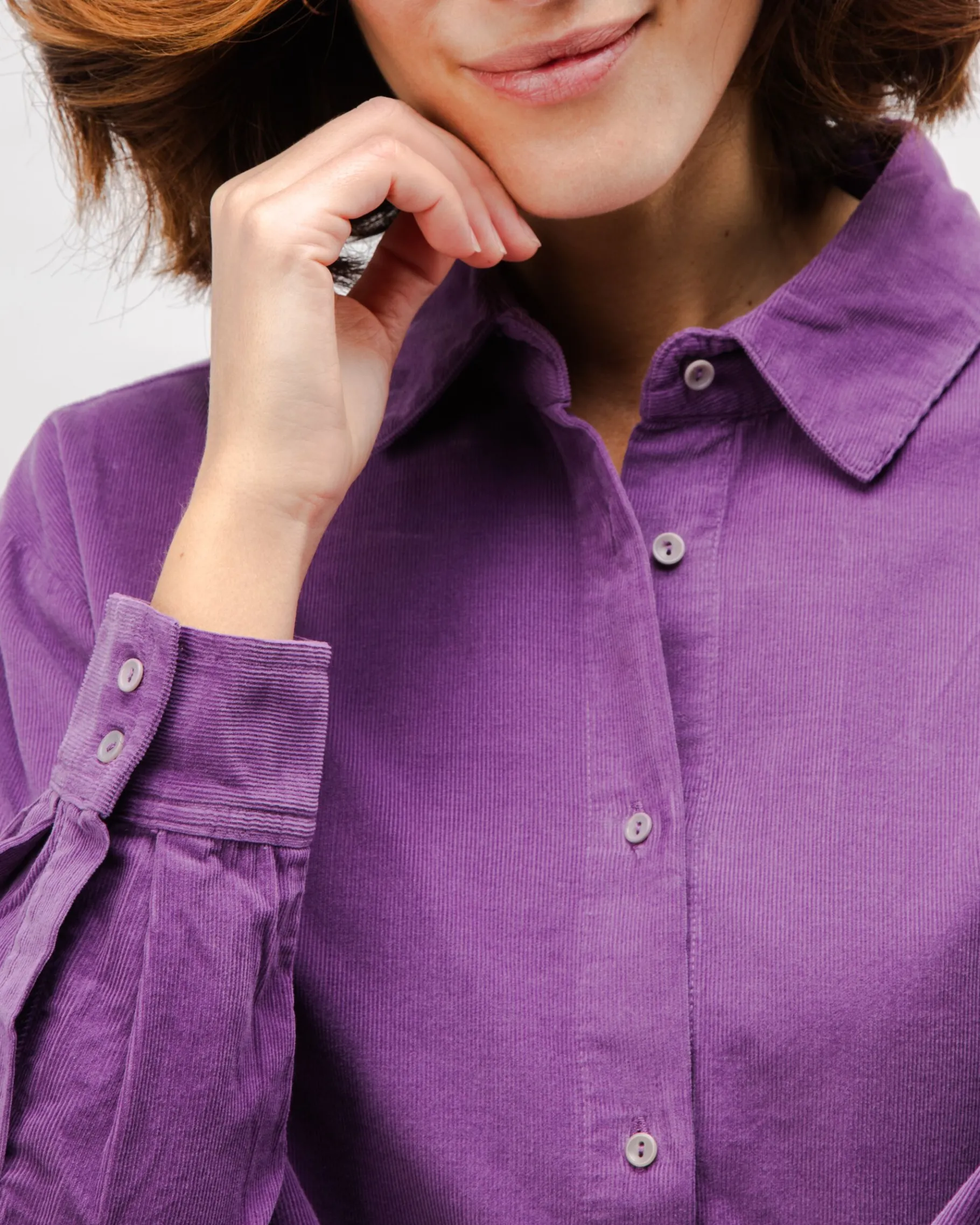 Kurzärmelige Bluse in boxy Passform mit geradem Schnitt, normalem Kragen und leicht überschnittener Schulter. Sie hat einen dekorativen Ärmelsaum und keinen Ärmelausschnitt. Ethisch hergestellt aus Bio-Baumwolle.| Waschhinweise