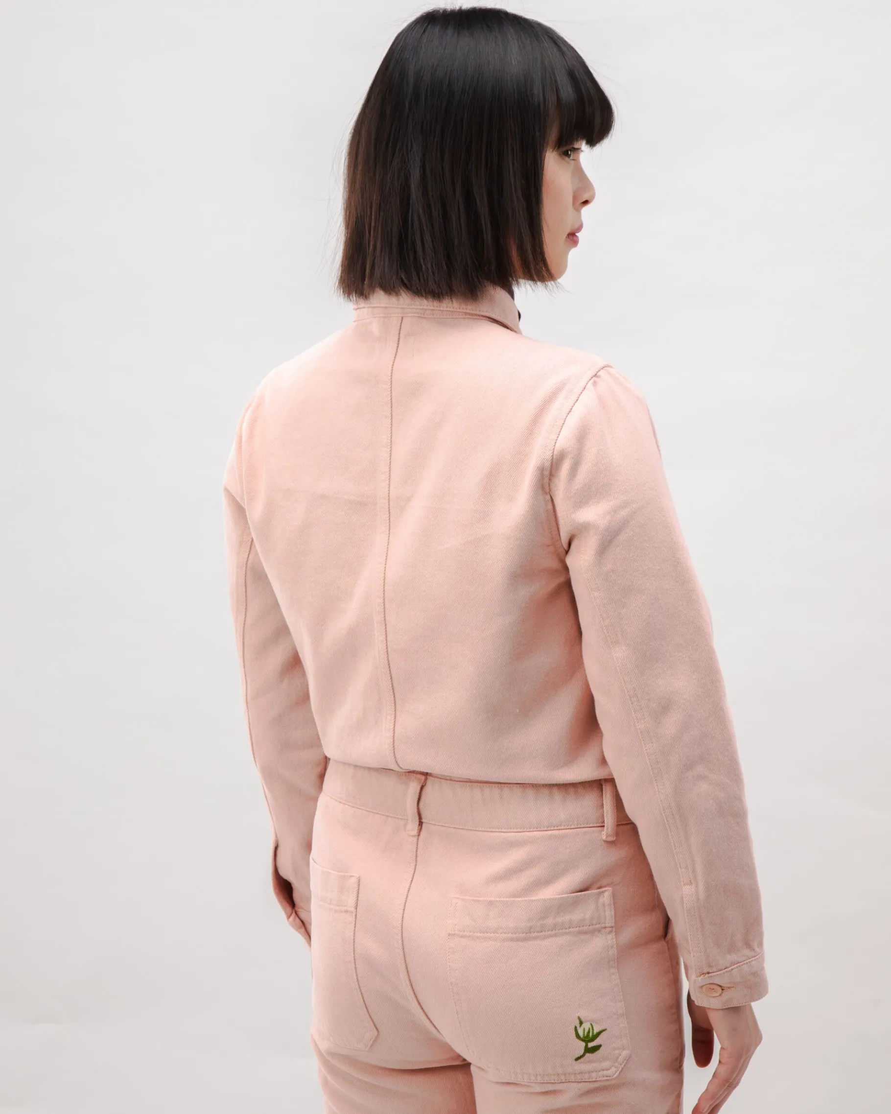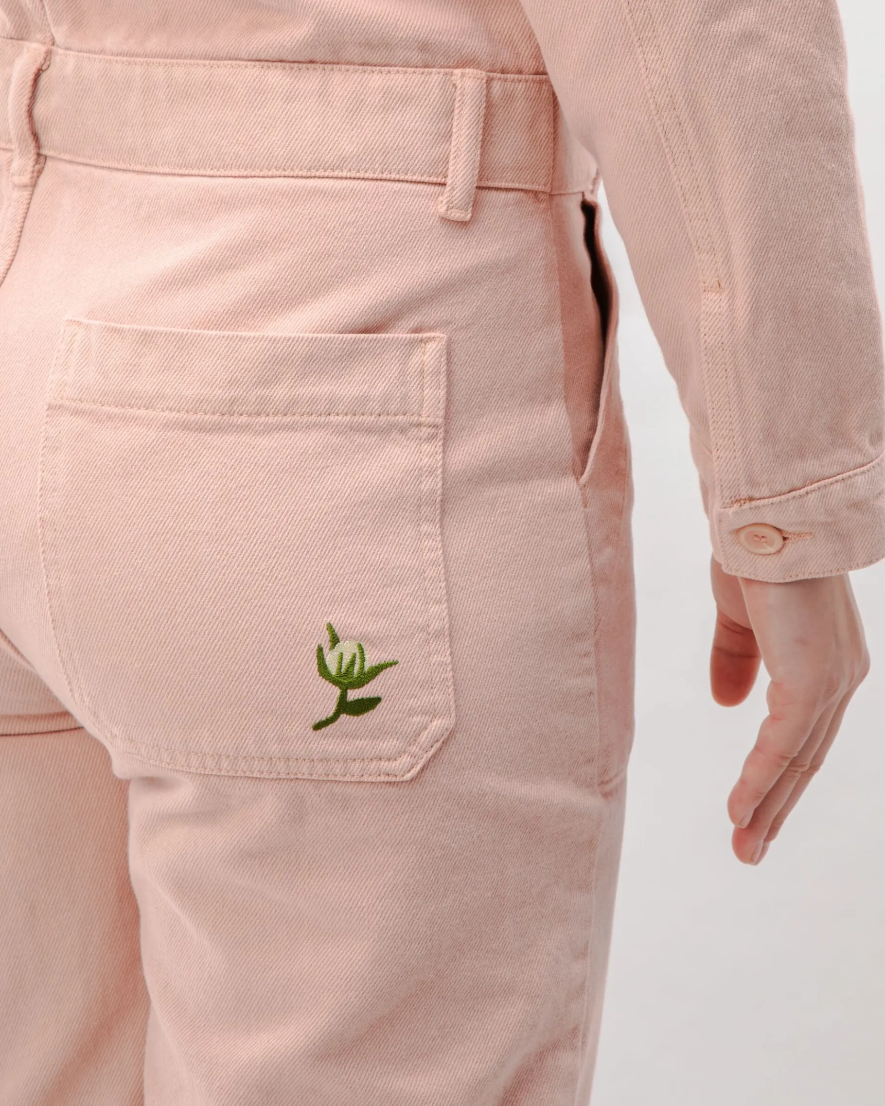 Overall aus Baumwolltwill, aus 100% Bio-Baumwolle, bekannt für seine Haltbarkeit. Wichtige Merkmale: regulärer Kragen, verdeckte Knopfleiste mit Corozo-Knöpfen, vordere und hintere Taschen, Gürtelschlaufen, geknöpfte Manschetten und spezielle Stickerei auf einer Gesäßtasche.| Waschhinweise