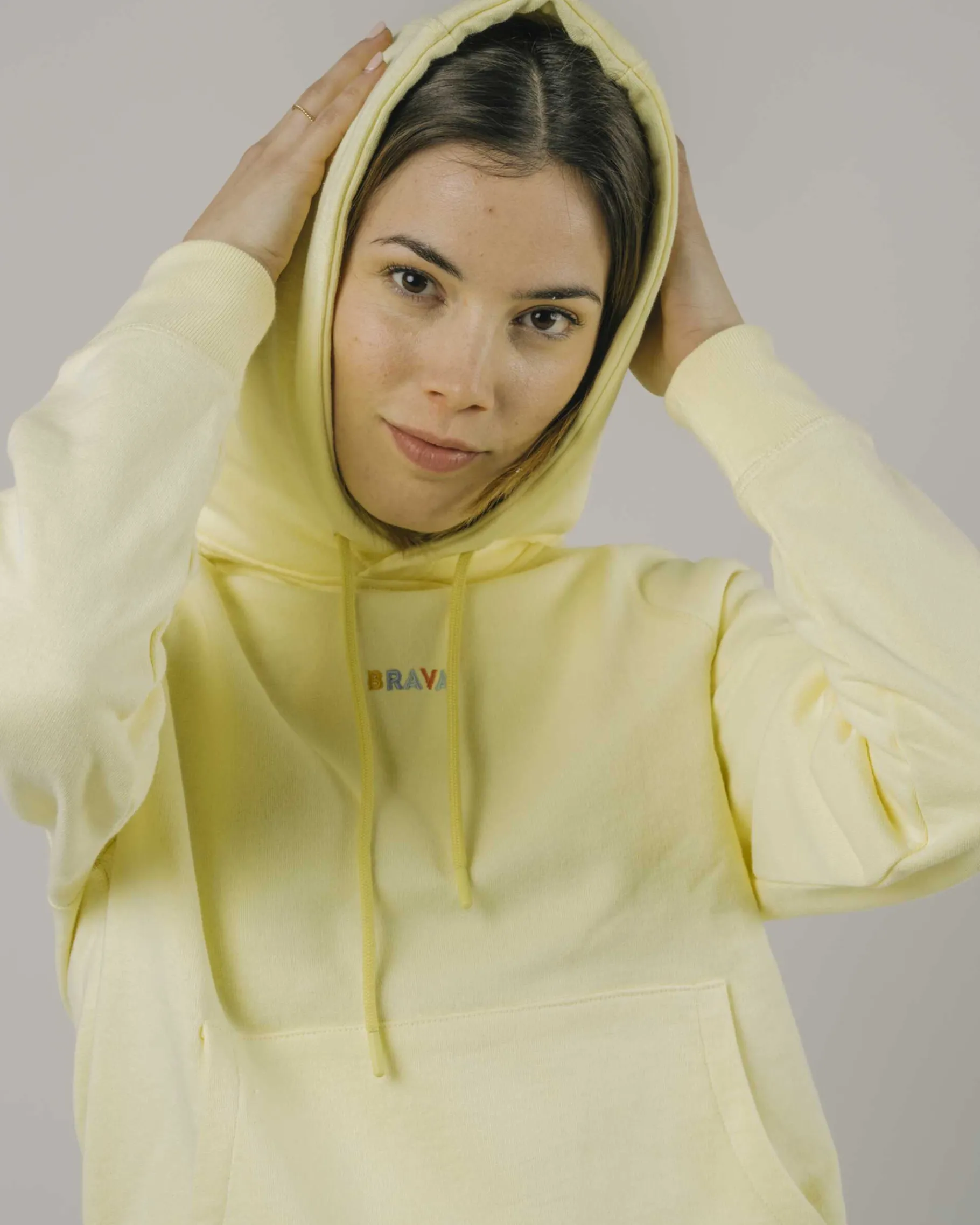 We Are Brava – du auch? Dieser entspannte Hoodie ist mit seinen filigran gestickten Details sowie seinem fröhlichen Farbtonperfekt für kühlere Sommertage.