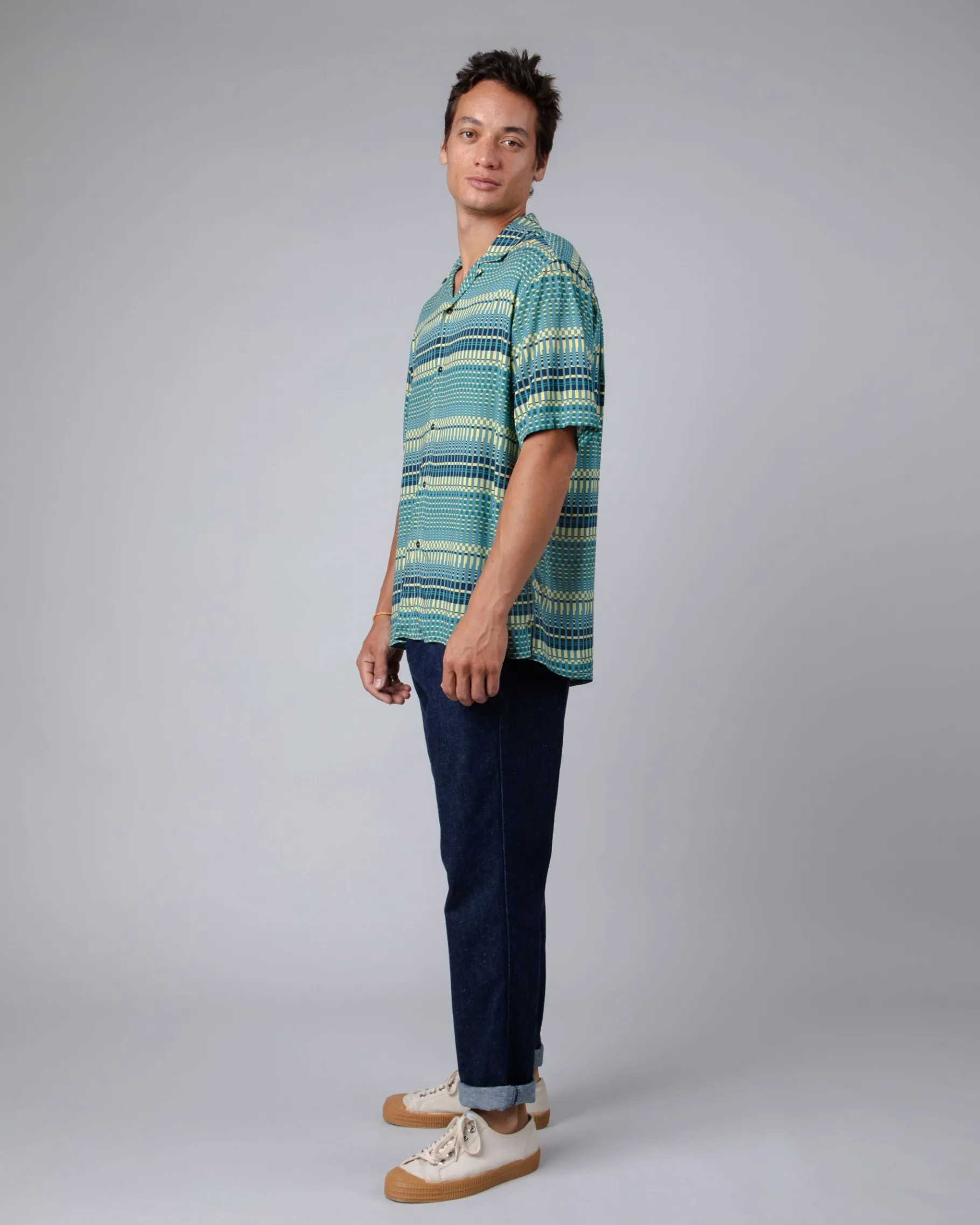Bedrucktes Aloha-Shirt mit kurzen Ärmeln und lockerer Passform. Es hat eine leicht überschnittene Schulter, einen geraden Saum, einen Reverskragen und einen Knopfverschluss. Ethisch hergestellt aus nachhaltiger Viskose.| Waschhinweise
