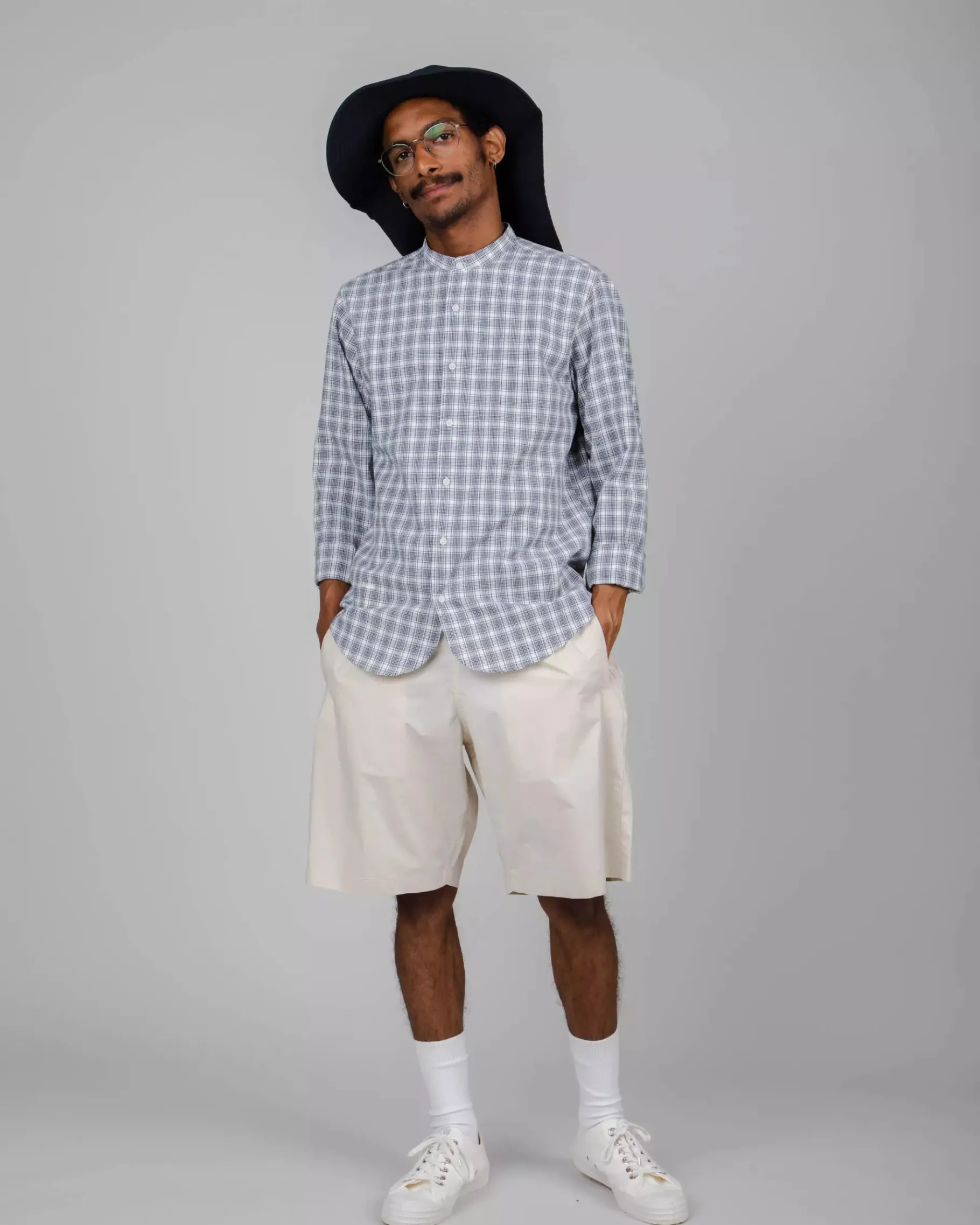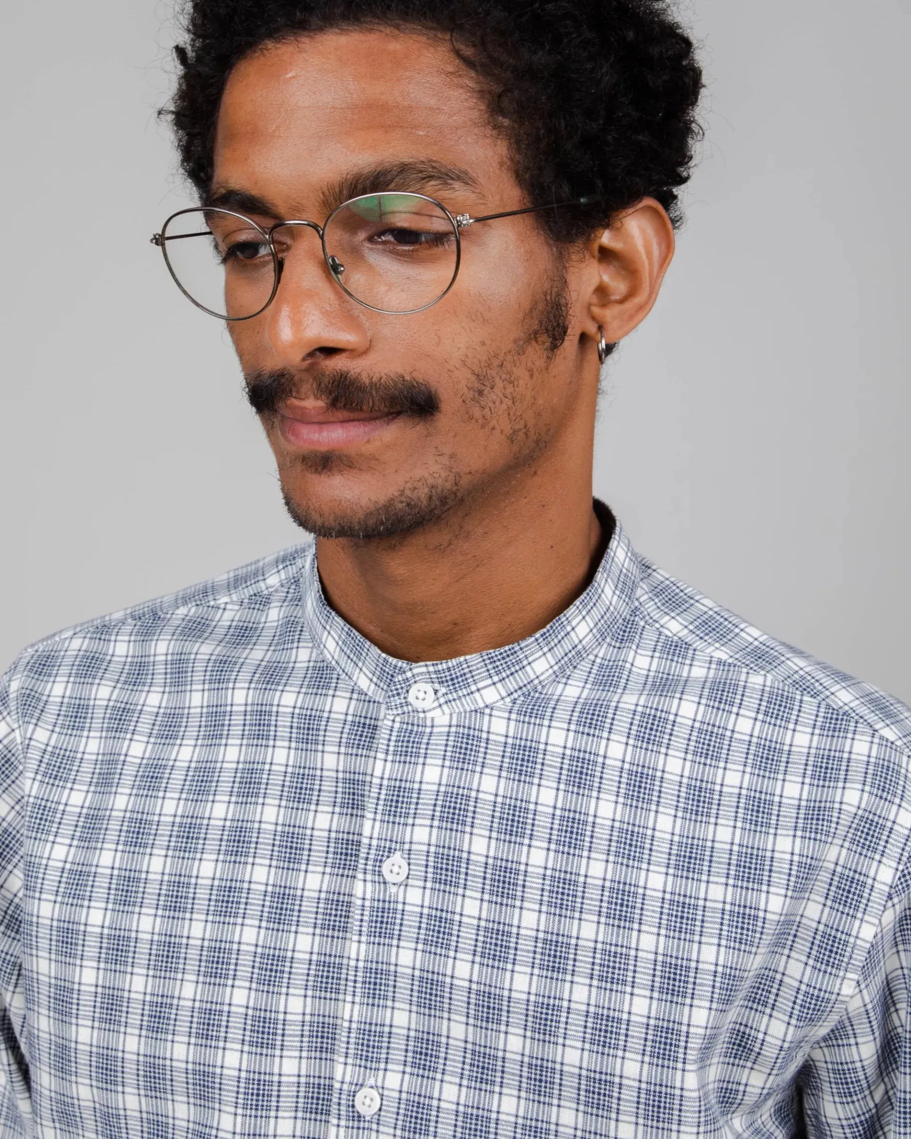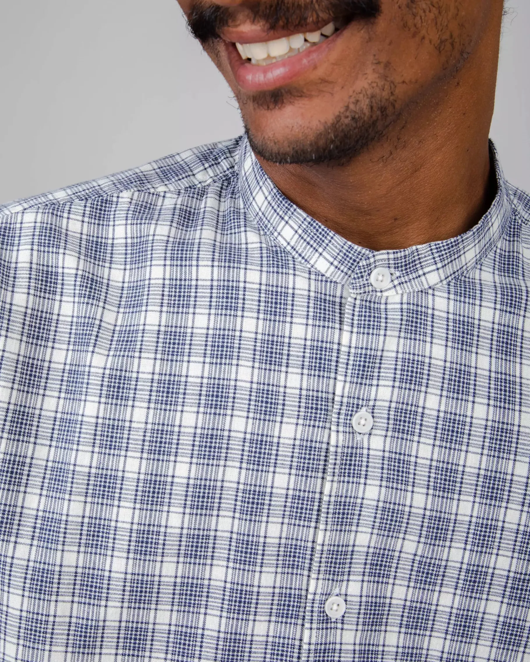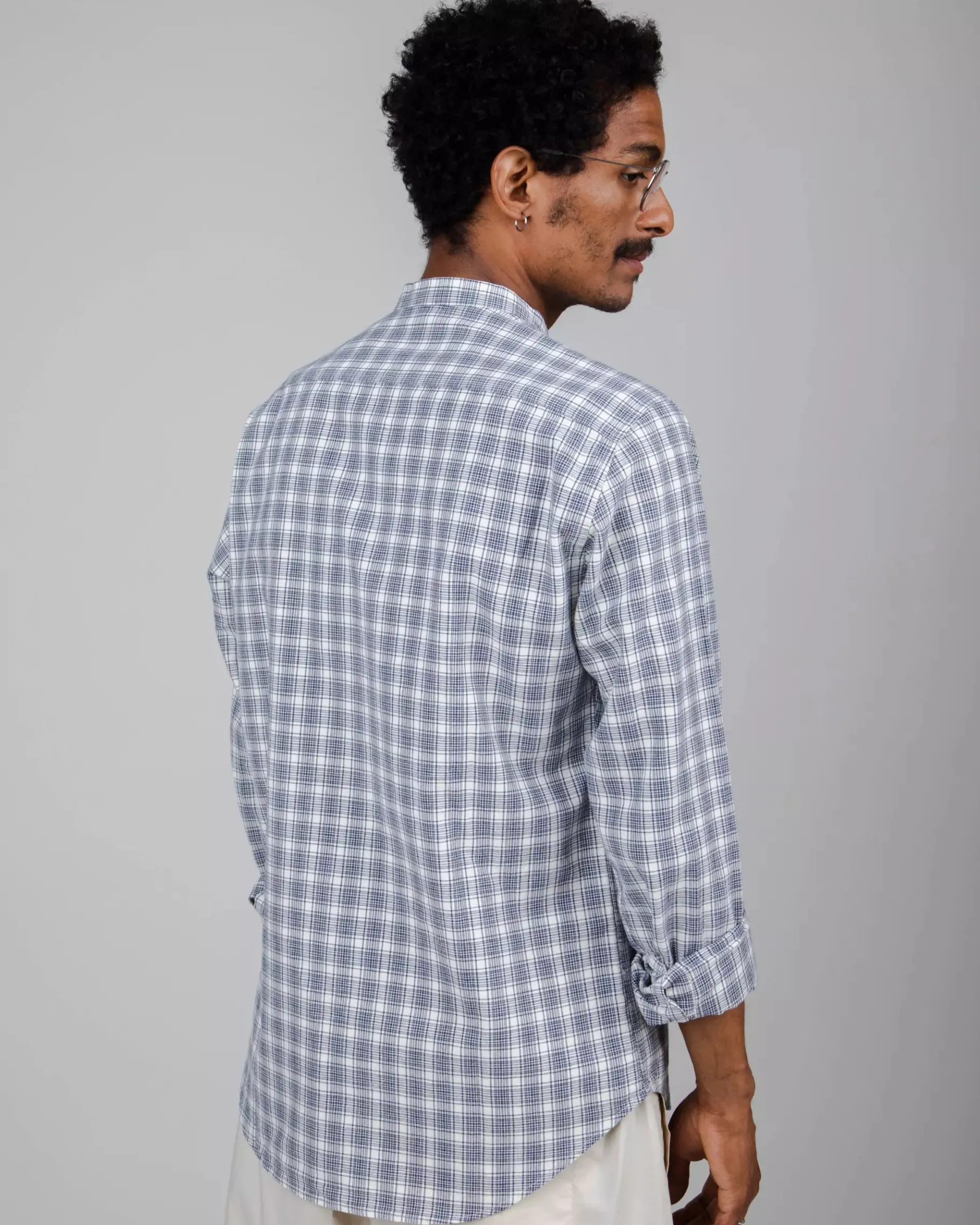 Long sleeved, check Mao shirt. Very soft, 100% organic cotton fabric. Ethically produced in Portugal.| Washing instructions