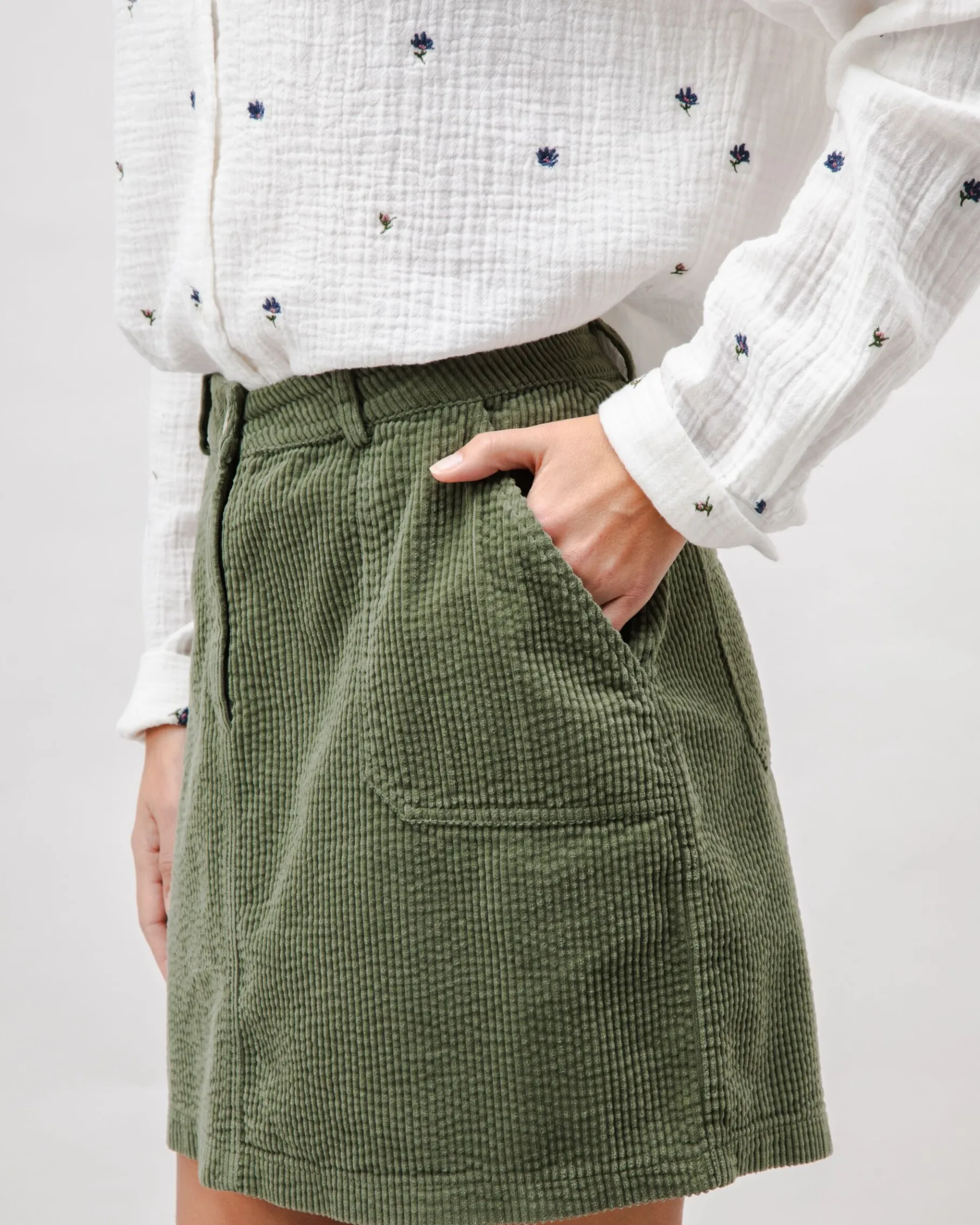 Cordrock mit normaler Passform und Vordertaschen. Ethisch aus Bio-Baumwolle hergestellt.| Waschhinweise