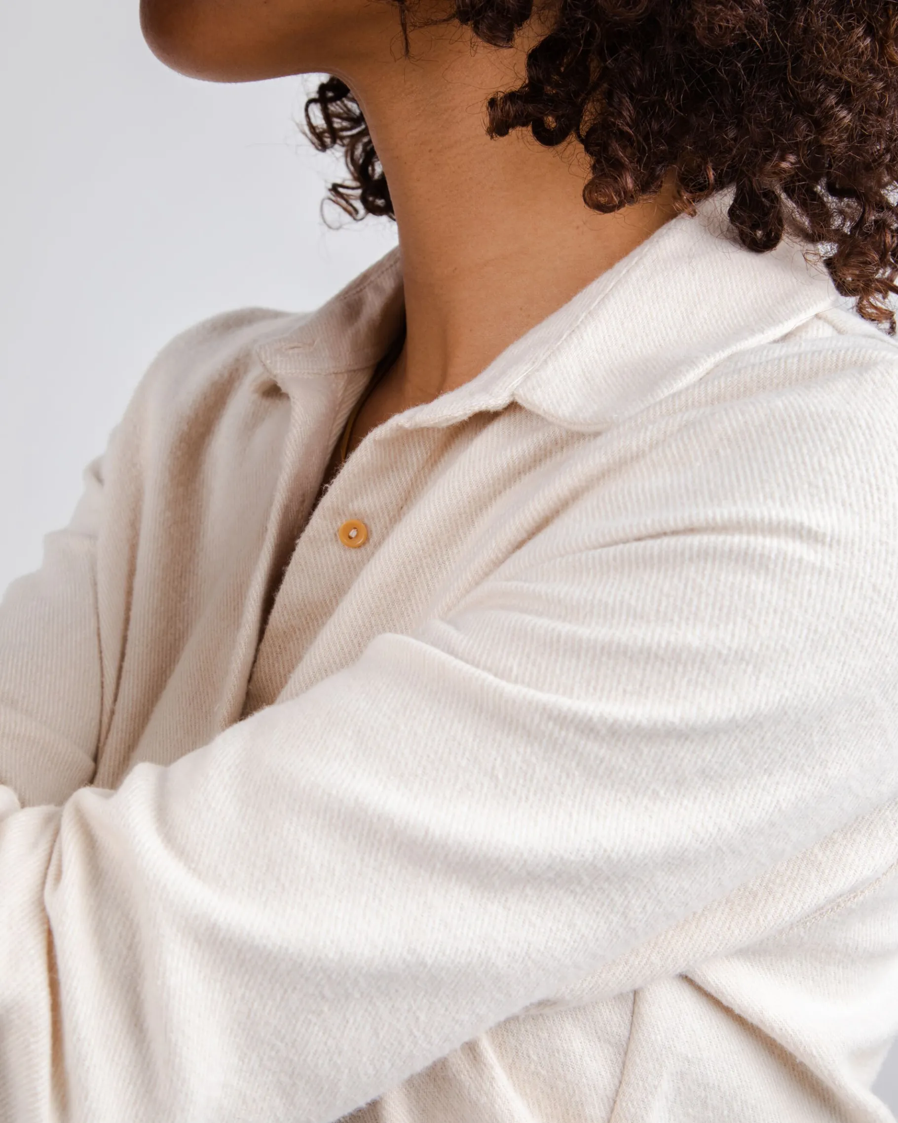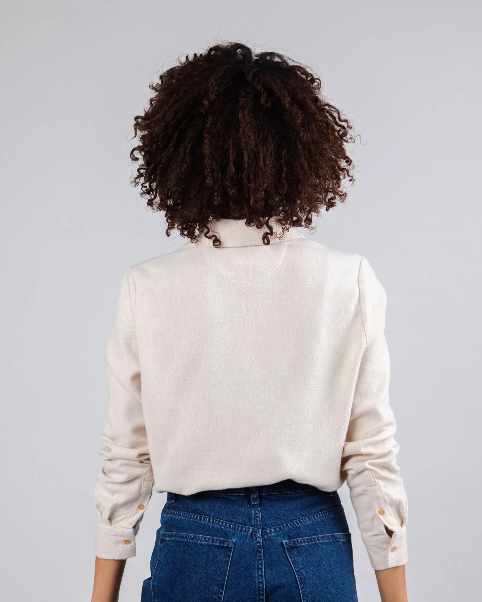 Egal ob im Home-Office, im Büro oder in der Stadt, unsere kuschelig-weiche Flannel Bluse in zeitlosem Ecru ist so bequem und vielseitig, dass sie einfach zu jeder Gelegenheit passt.