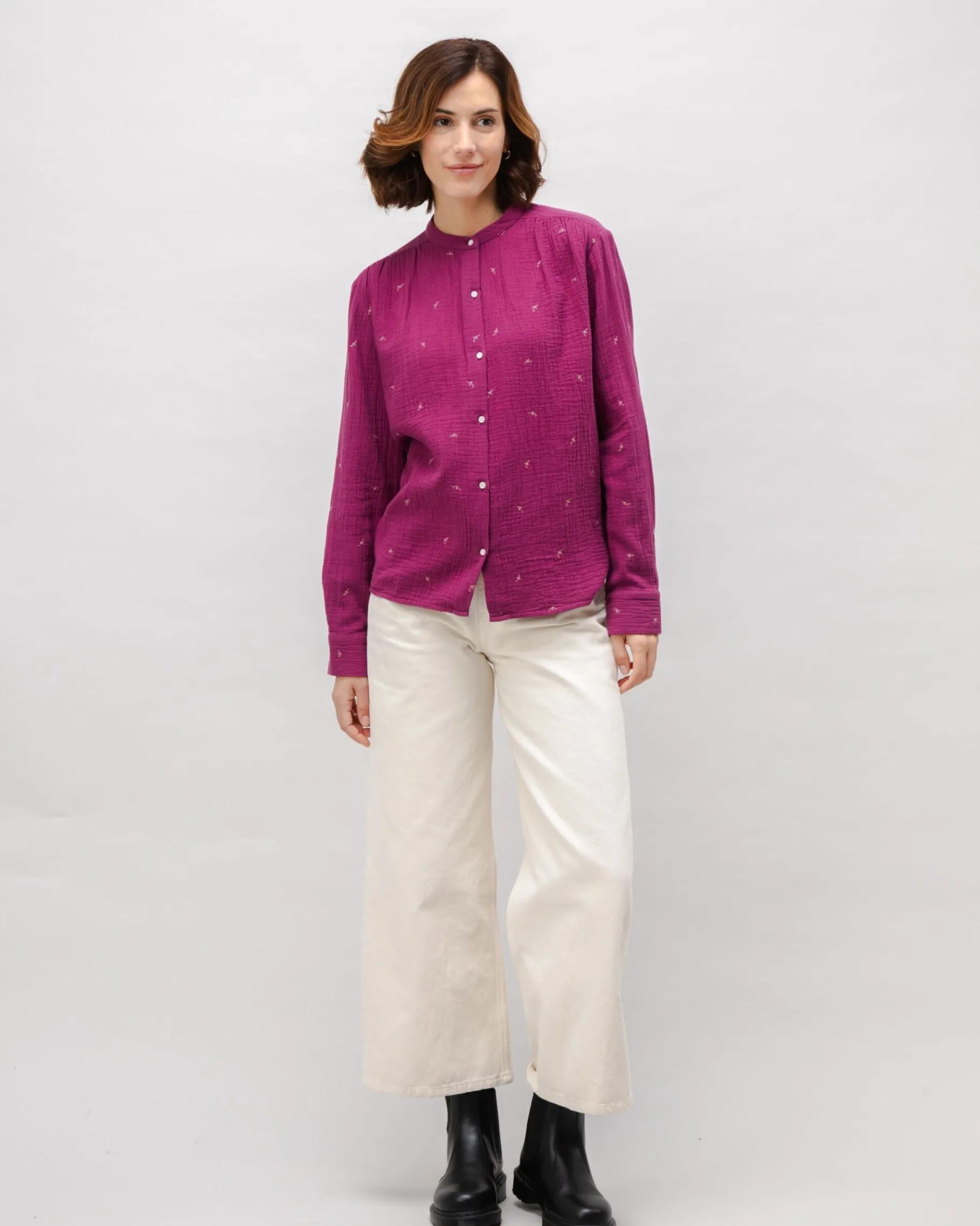 Langarmbluse mit Print, ohne Knopfleiste und Rückenpassé. Etwas schmaler geschnitten. Besonderes Design für farbenfrohe Herbst- und Wintertage. Ethisch hergestellt aus Bio-Baumwolle.| Waschhinweise