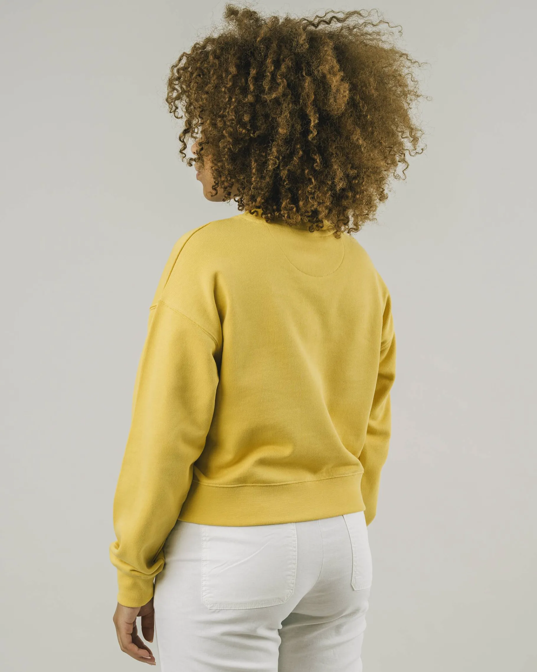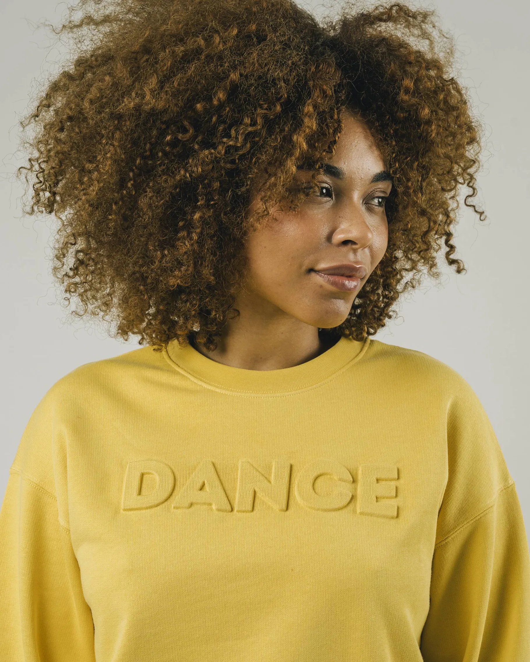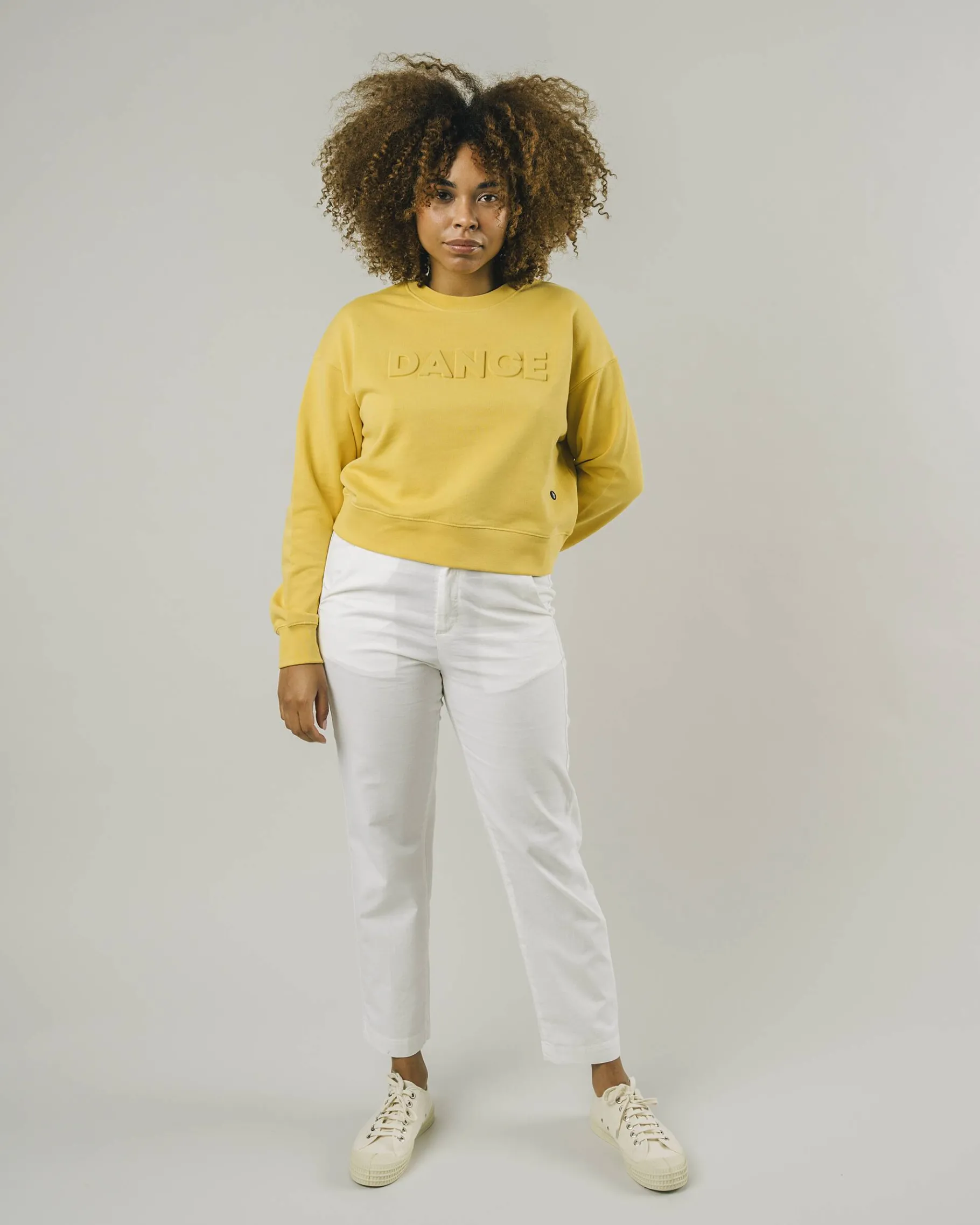Dein nächstes Sommer-Essential: Dieses lässige Oversize-Sweatshirt in Cropped Fit sorgt mit dem fröhlichen Ockerton und dem Schriftaufzug sofort für gute Laune!