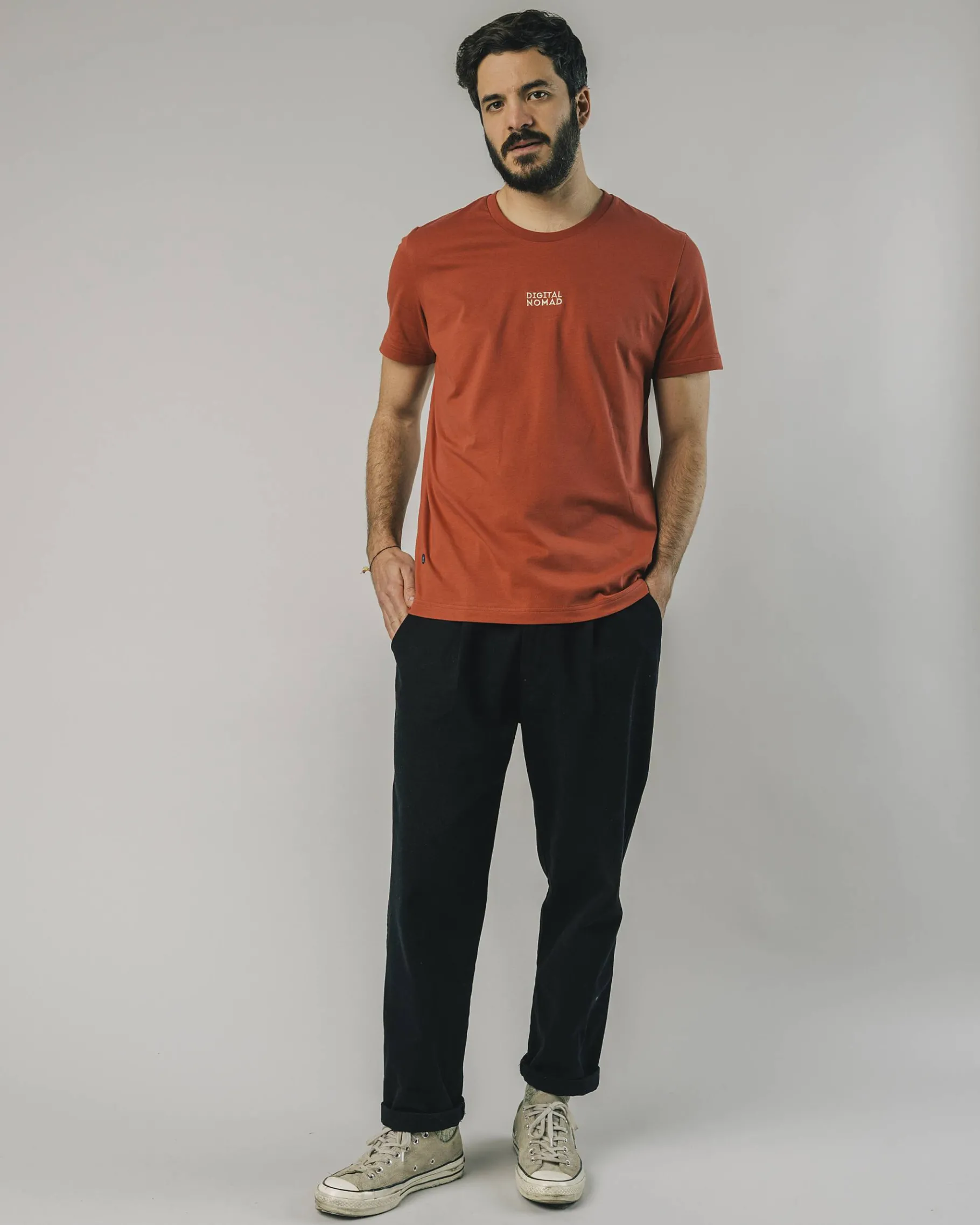 Reisen, wohin man will, tun, was man liebt und Menschen aus aller Welt treffen. Dieses T-shirt in Terracotta ist unsere Hommage an alle digitalen Nomaden da draußen und diejenigen, die davon träumen, es zu werden.