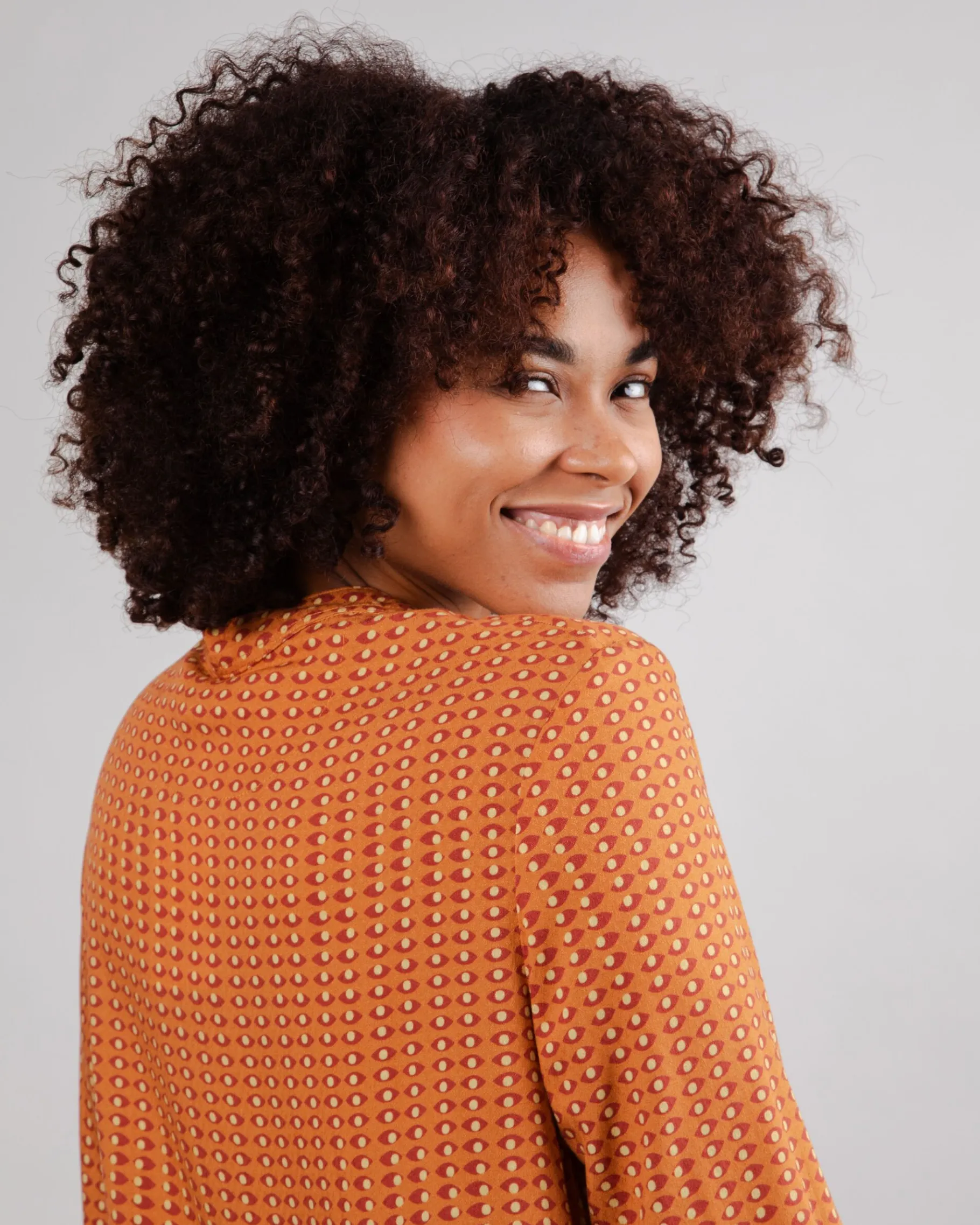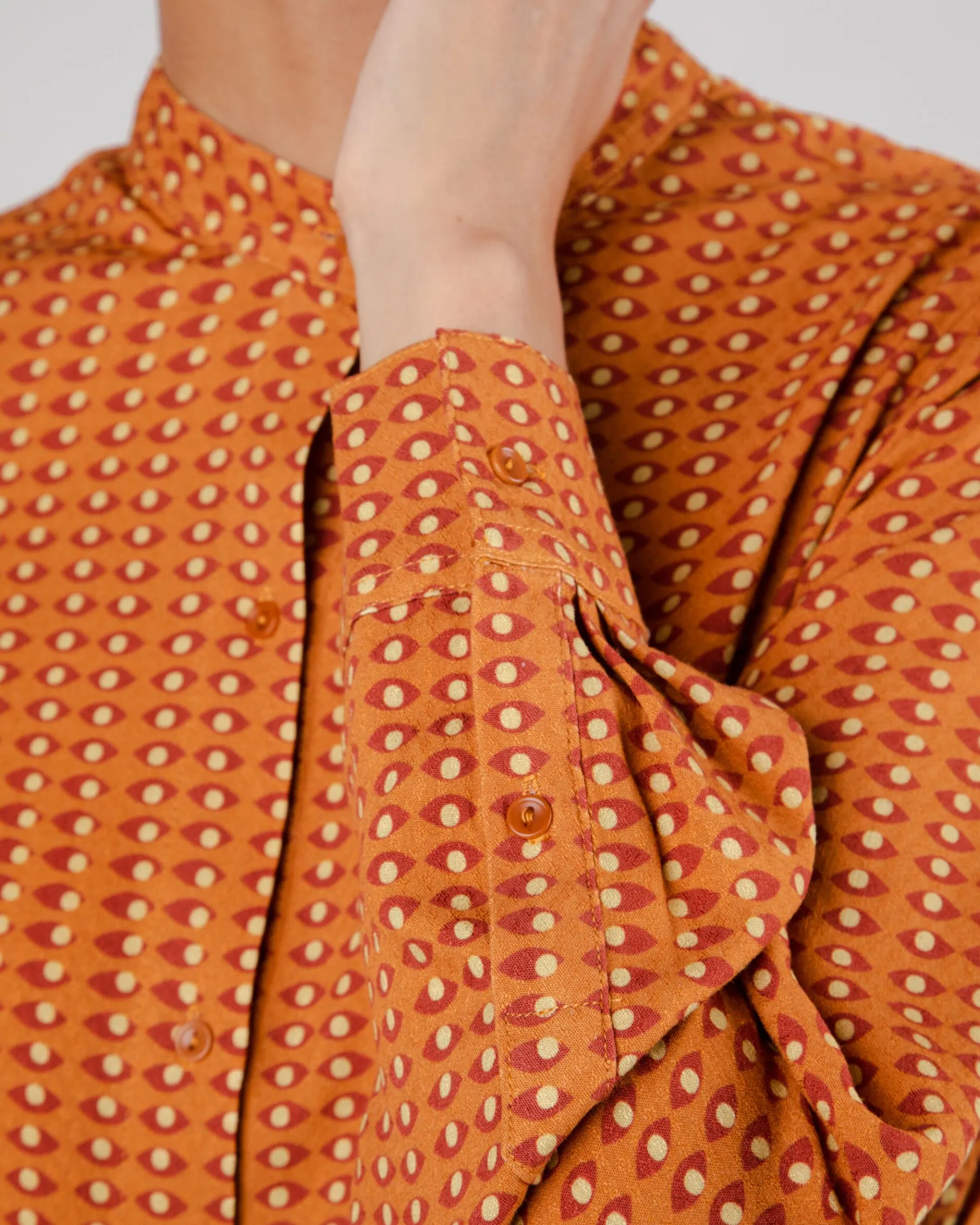 Langarmbluse mit Print, Mao-Kragen und normaler Passform. Ein klassischer Schnitt mit ganz besonderem Design für farbenfrohe Herbst- und Wintertage. Ethisch hergestellt aus Ecovero Viskose.| Waschhinweise