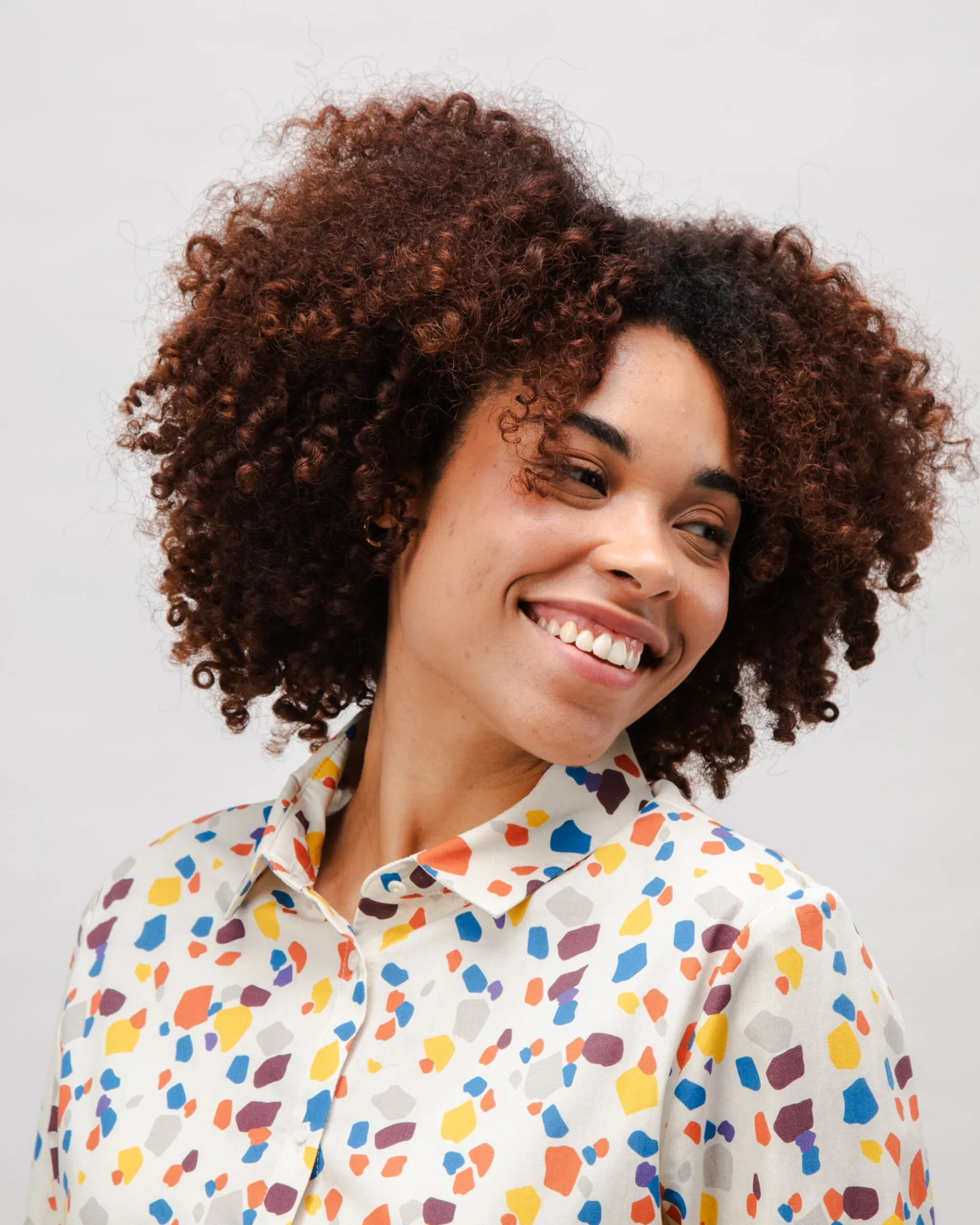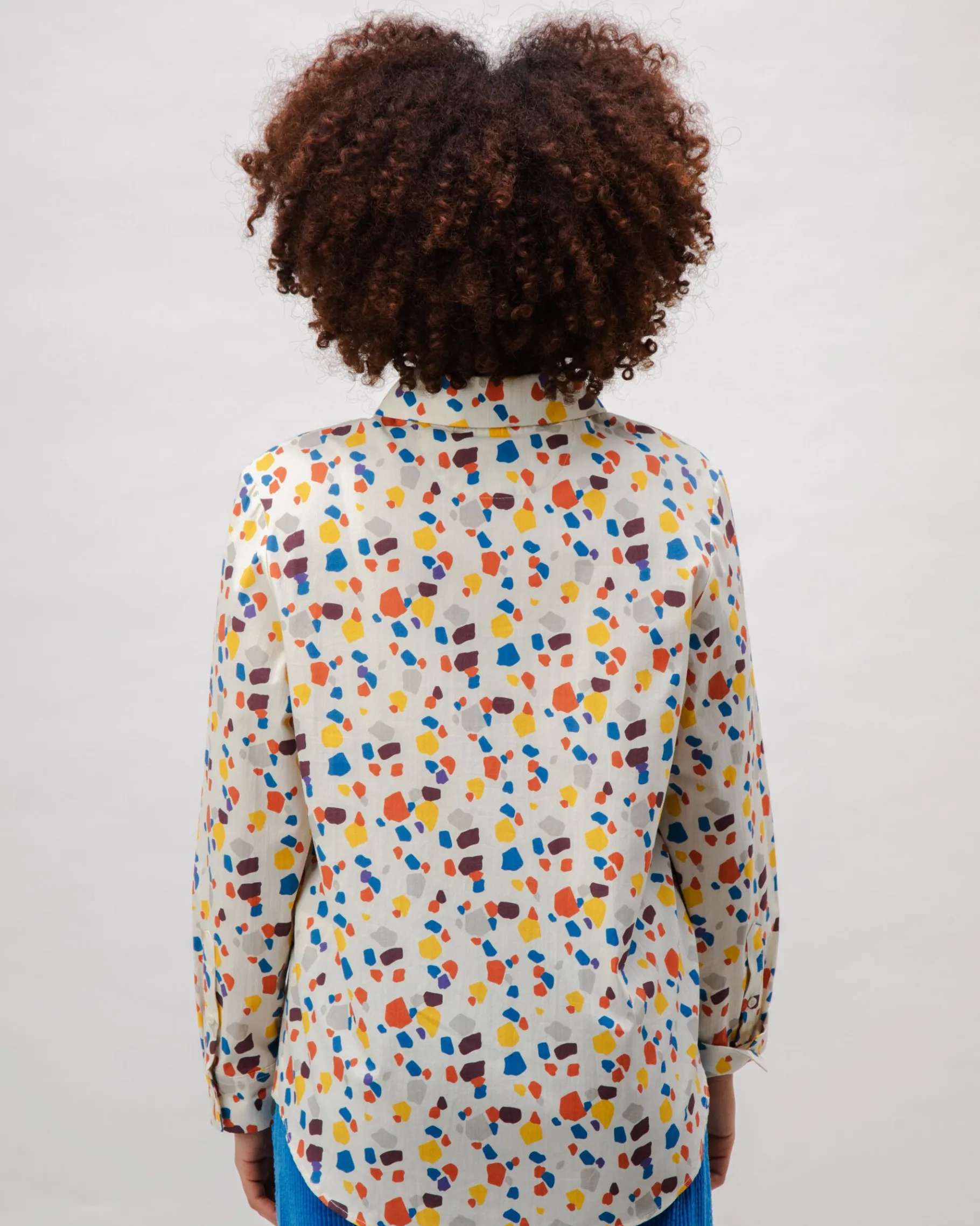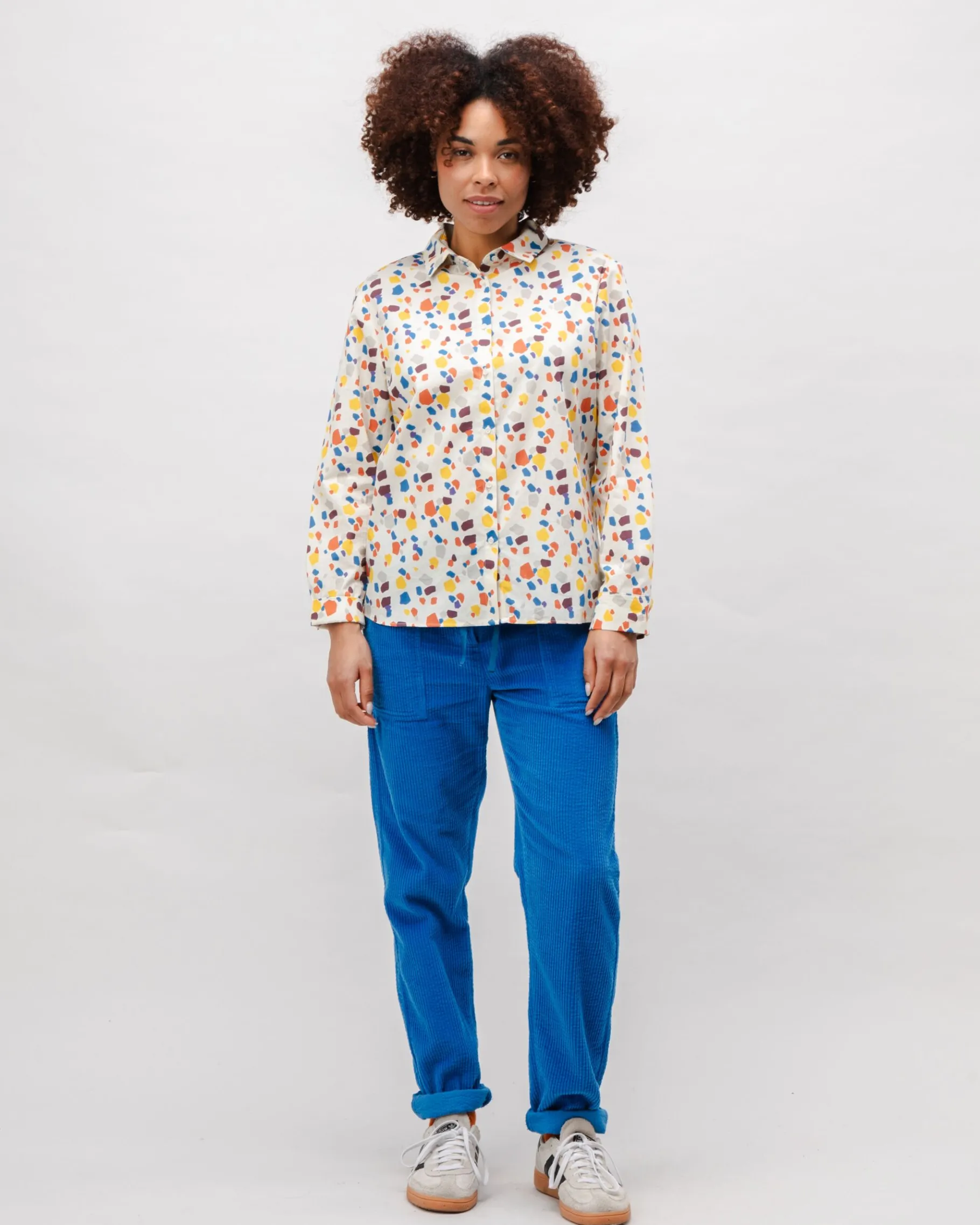 Langarmbluse mit Print, ohne Knopfleiste und Rückenpassé. Etwas schmaler geschnitten. Besonderes Design für farbenfrohe Herbst- und Wintertage. Ethisch hergestellt aus Bio-Baumwolle.| Waschhinweise