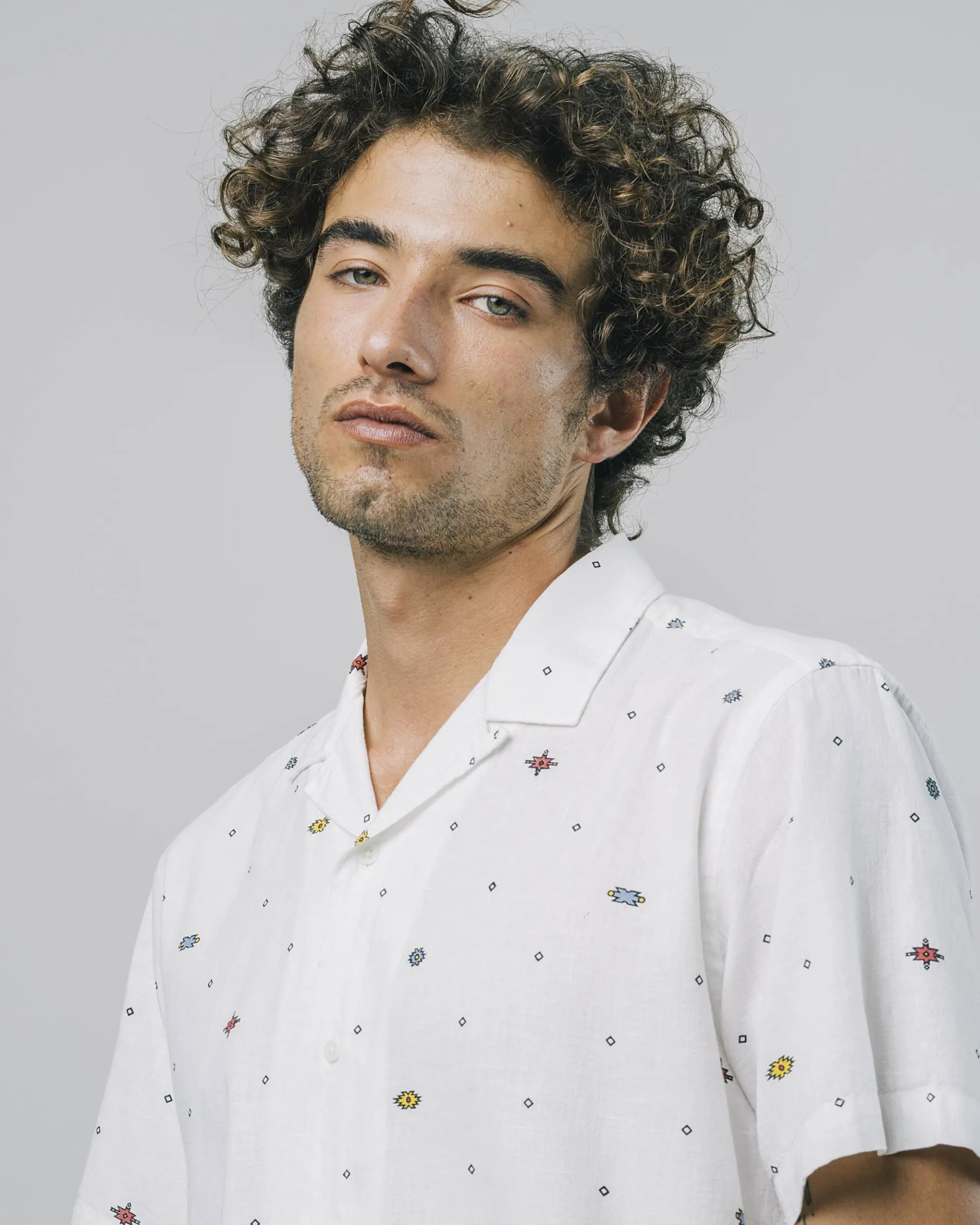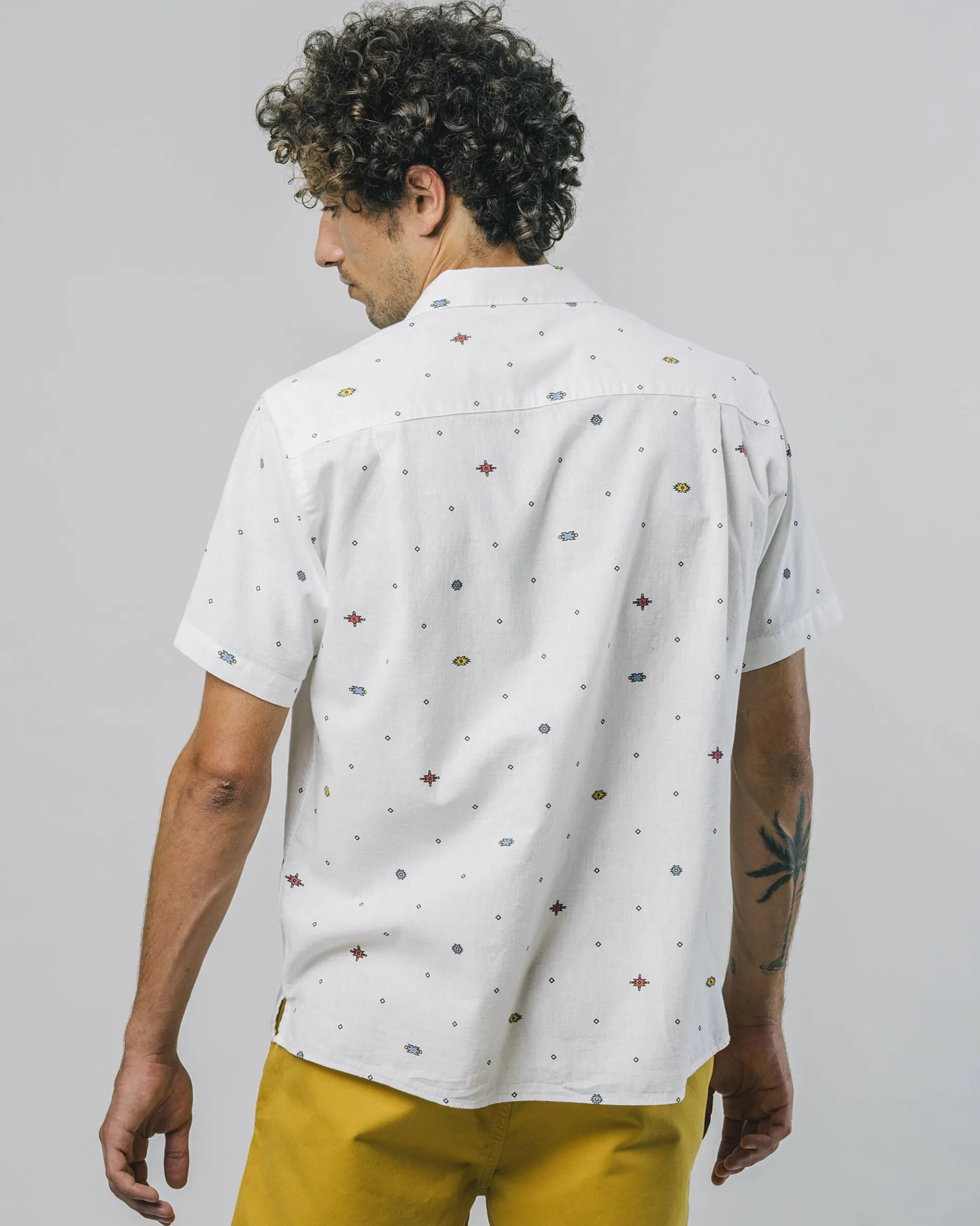 Inspiriert von der traditionellen Kunst, die uns auf unseren Reisen durch Südafrika begegnete, zeichnet sich dieses Hemd durch ihre typischen geometrischen Muster und leuchtenden Farbkombinationen aus.