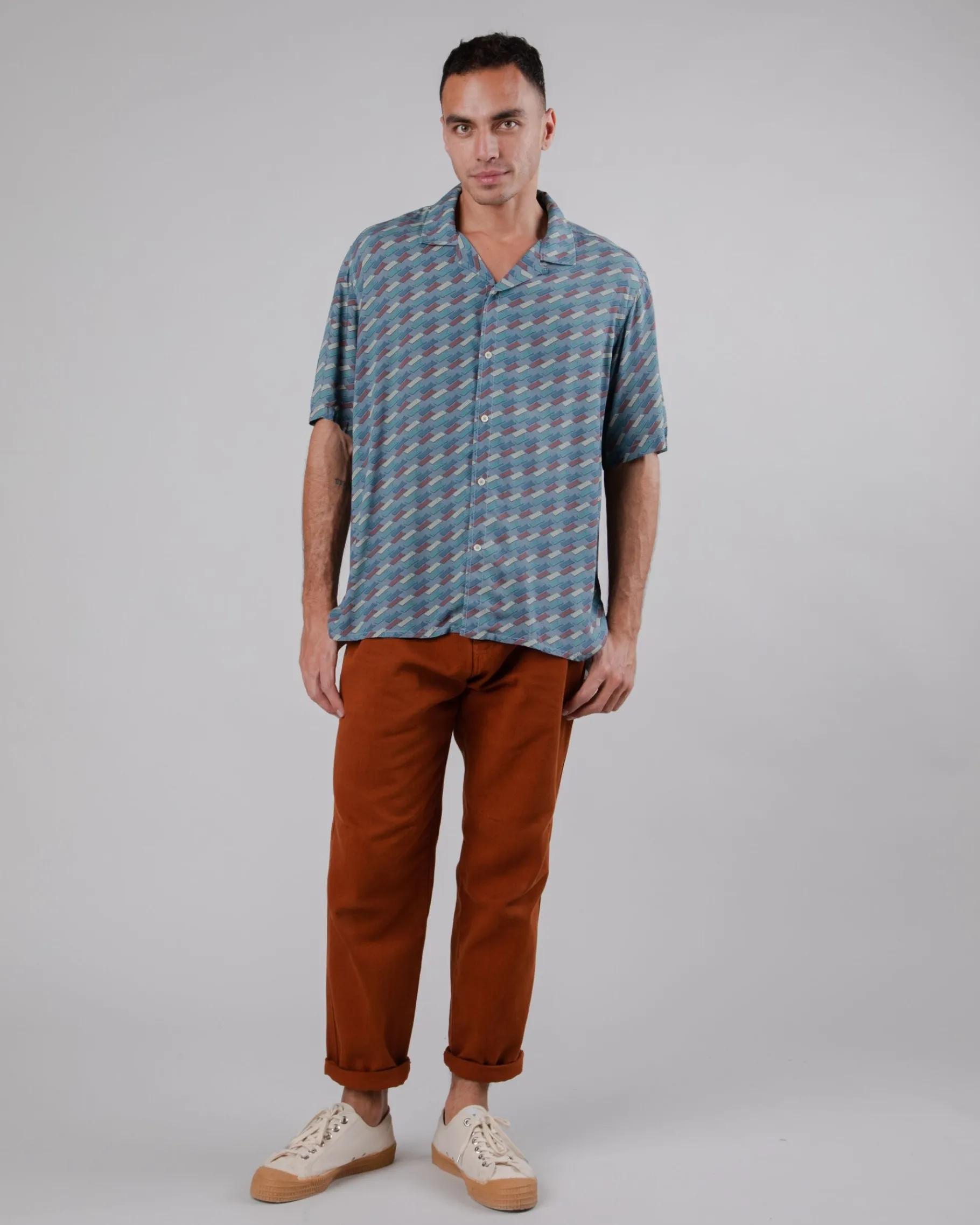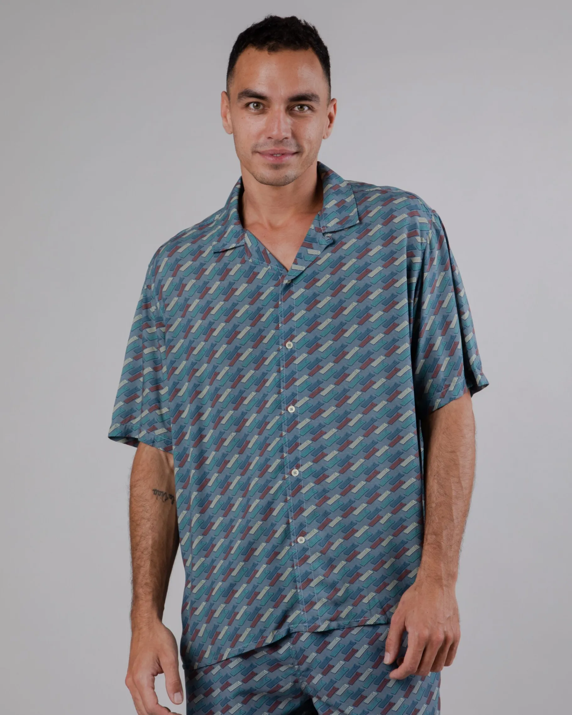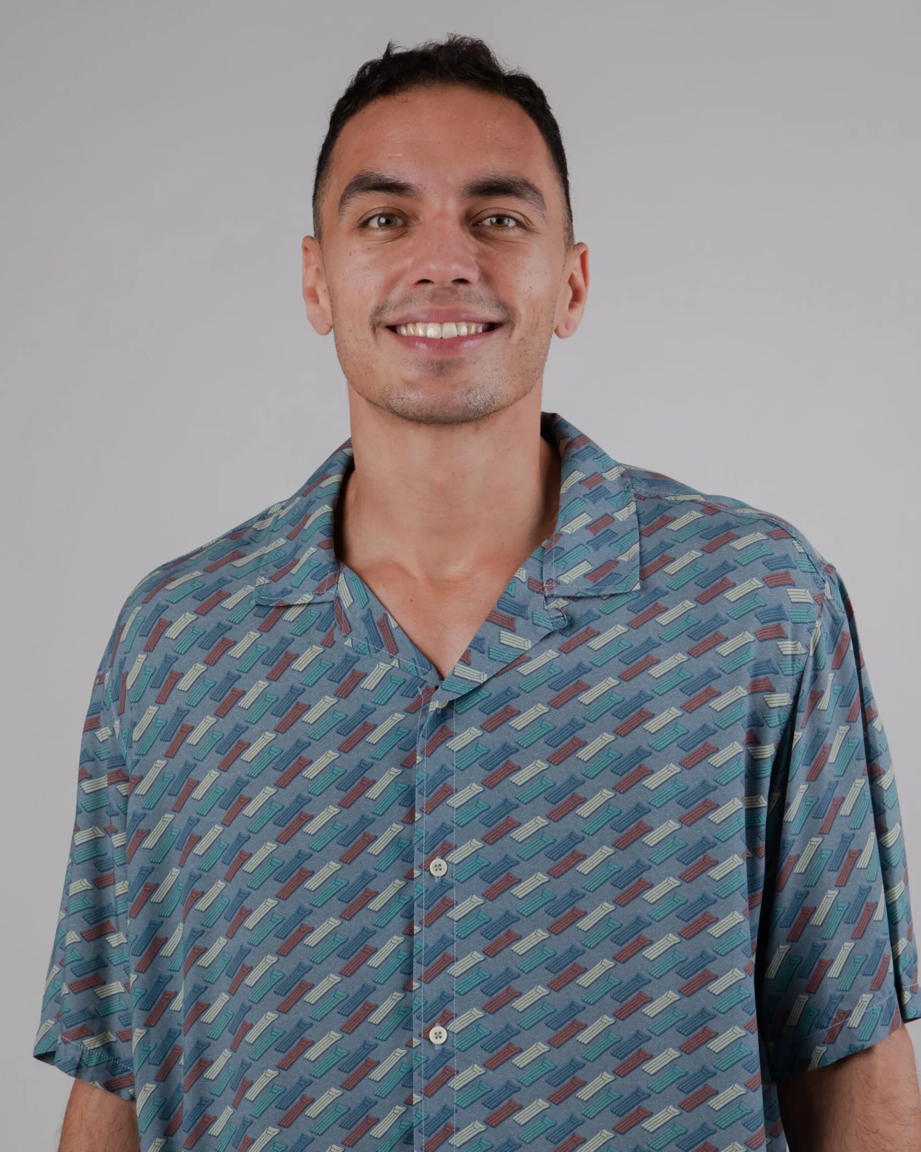 Locker geschnittenes, kurzärmeliges Aloha-Shirt mit „Inflatables“-Druck. Es hat eine leicht überschnittene Schulter, einen geraden Saum, einen Reverskragen und einen Knopfverschluss. Ethisch hergestellt aus nachhaltiger Viskose.| Waschhinweise