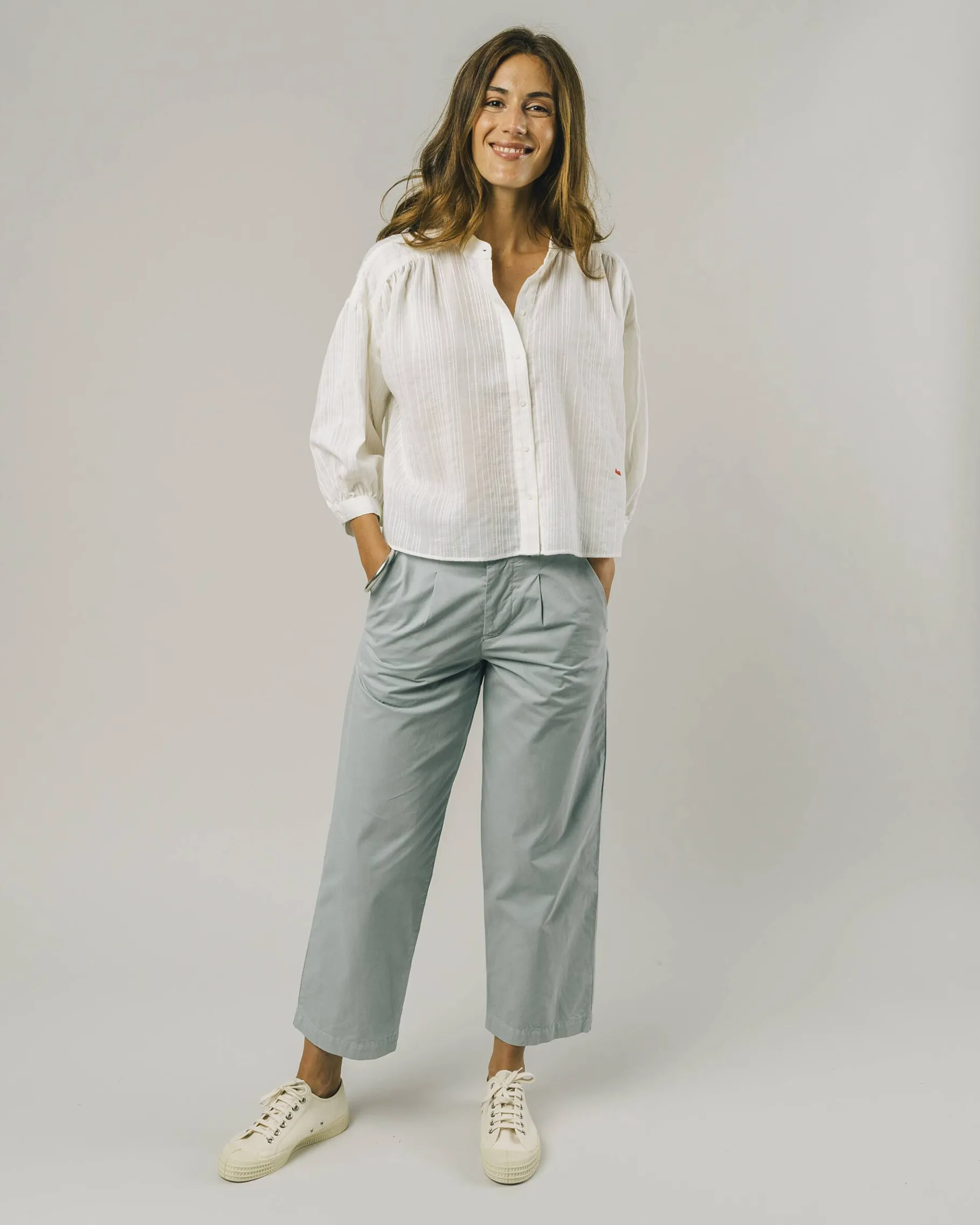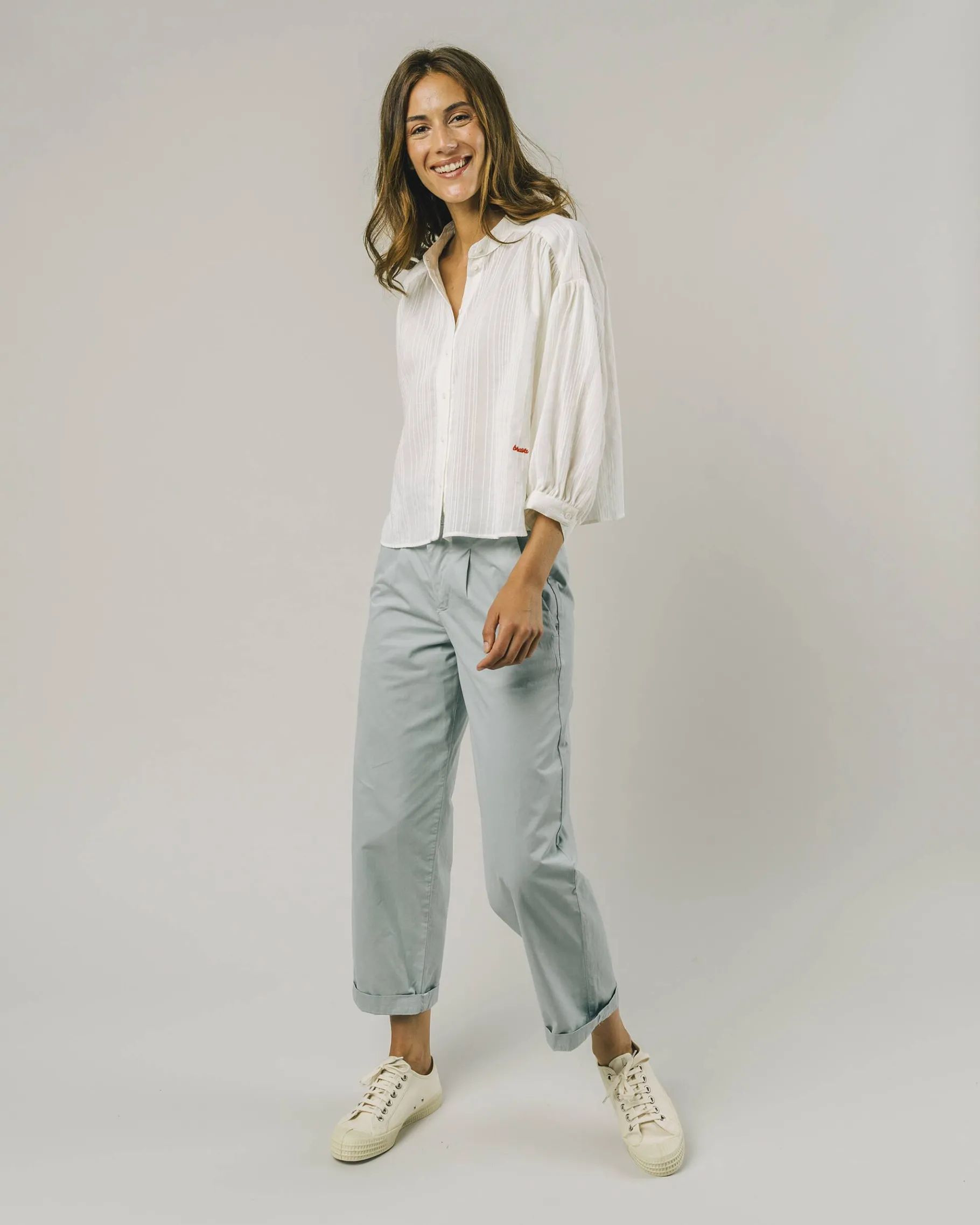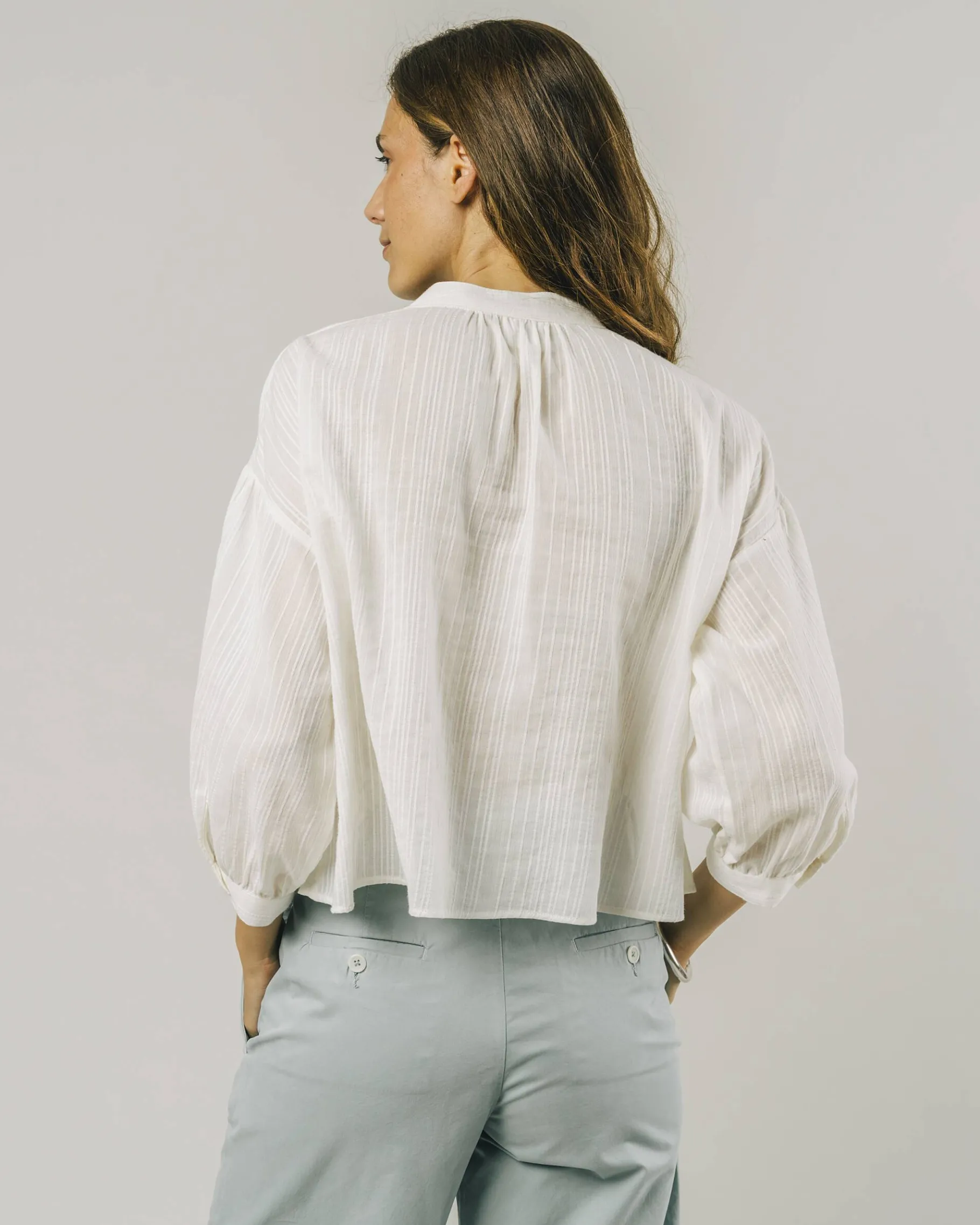Eine Bluse, die den schmalen Grat zwischen leger und gehobener Alltagskleidung findet! Ein luftiger Stoff aus Bio-Baumwolle kombiniert mit einer schmeichelhaften Passform sorgt für einen bequemen und eleganten Look.