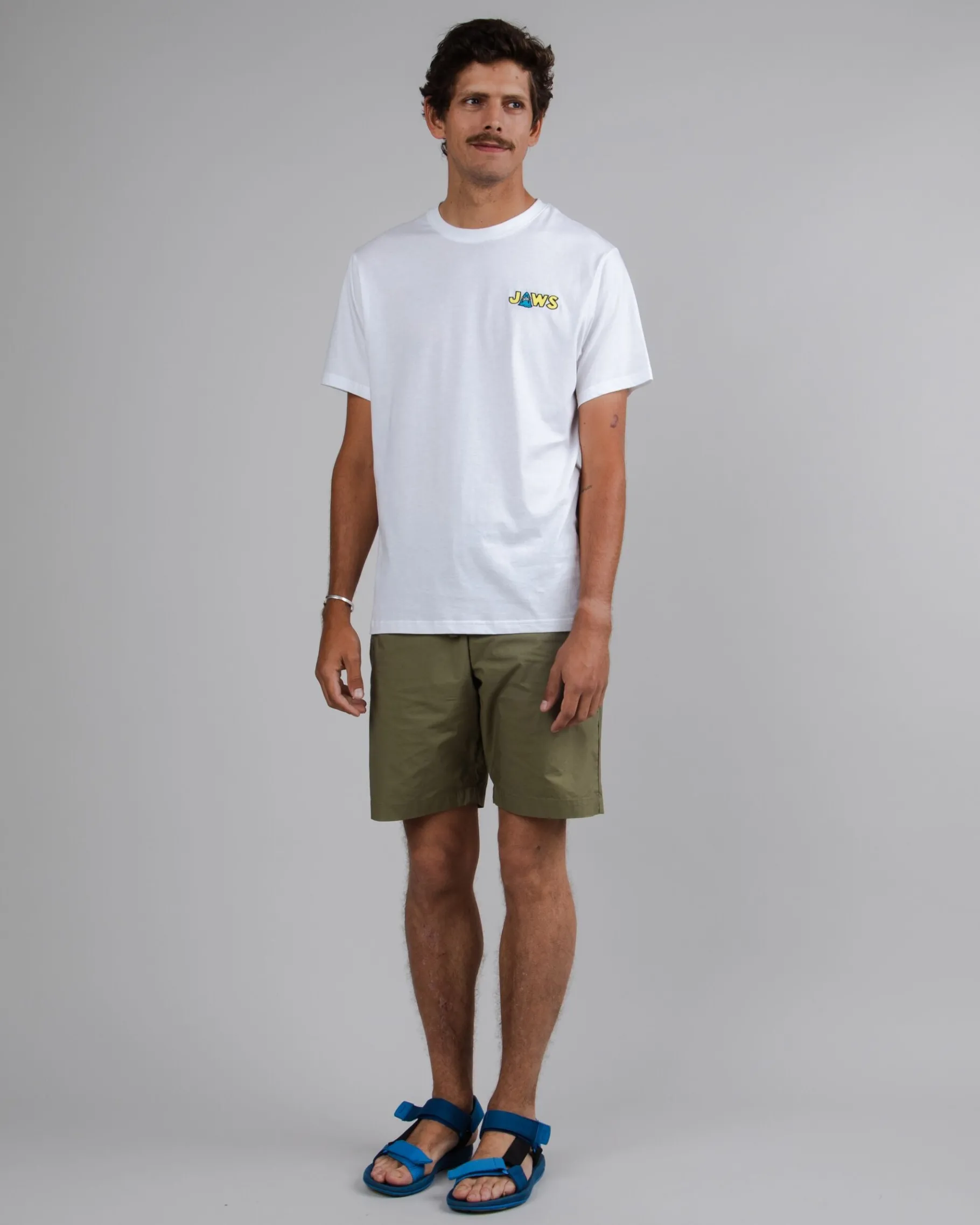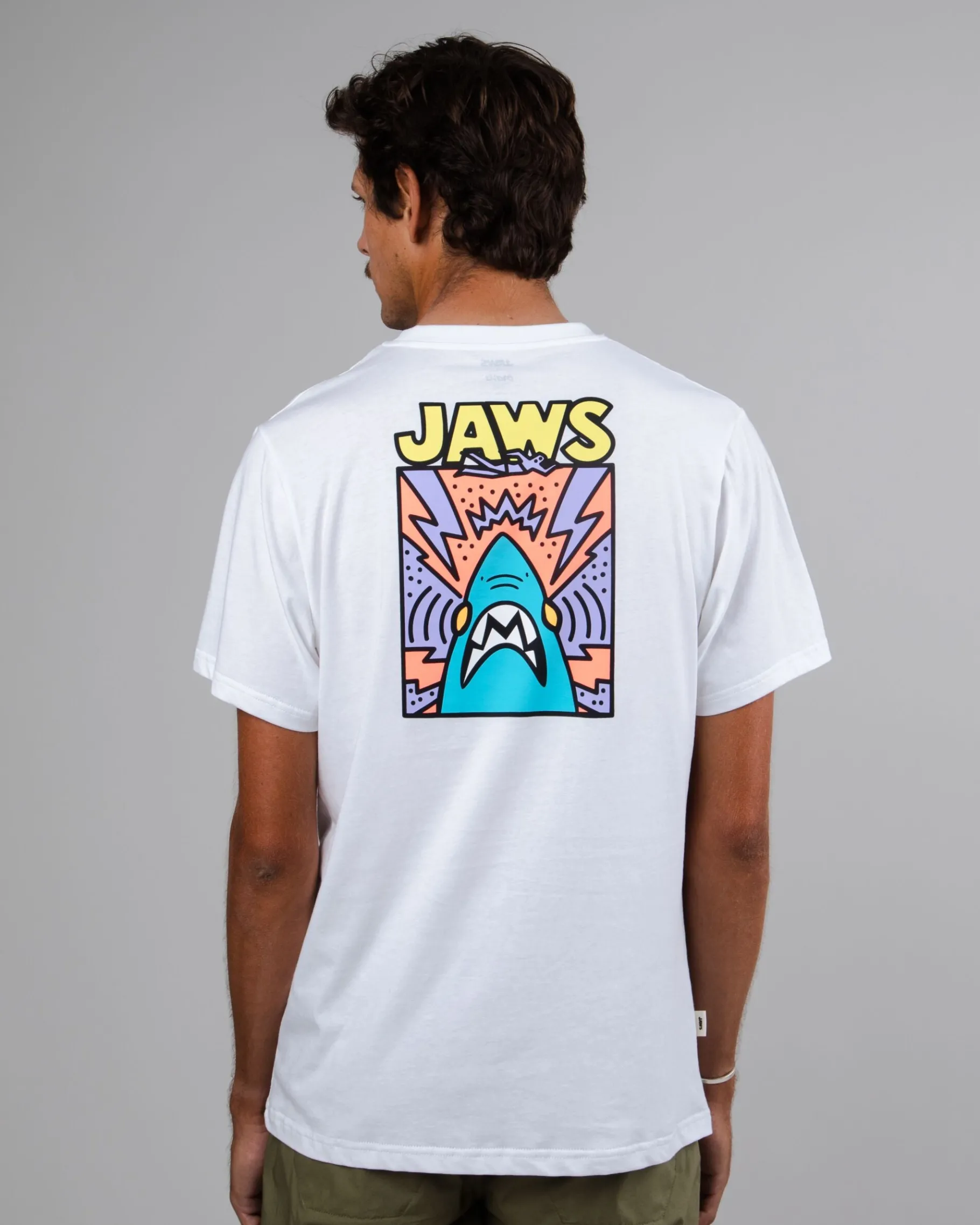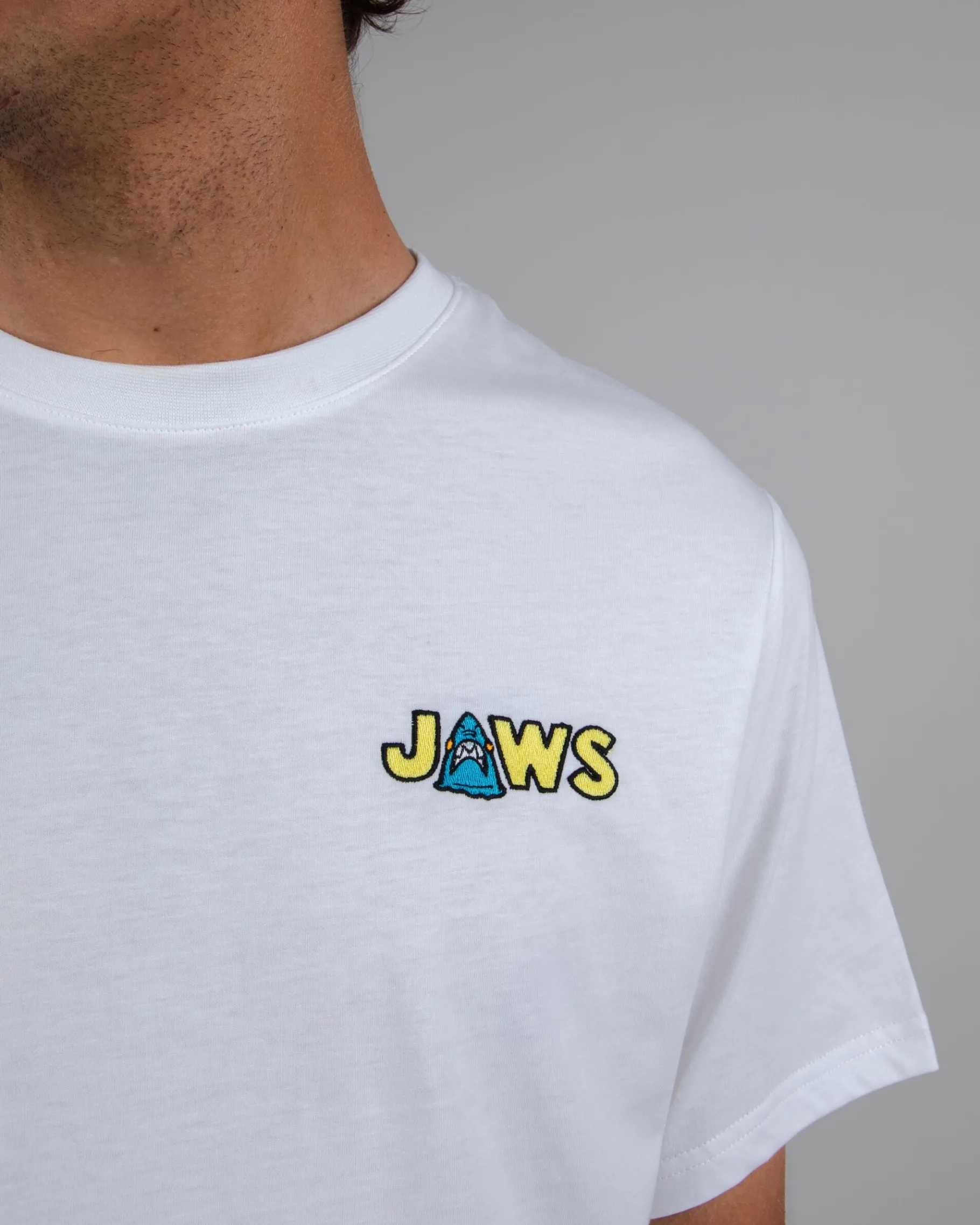 Kurzärmeliges T-Shirt in normaler Passform mit einem Jaws-Aufdruck. Der runde Kragen und die grafischen Details sorgen für einen zusätzlichen Akzent. Ethisch hergestellt aus biologischer Baumwolle.| Waschhinweise