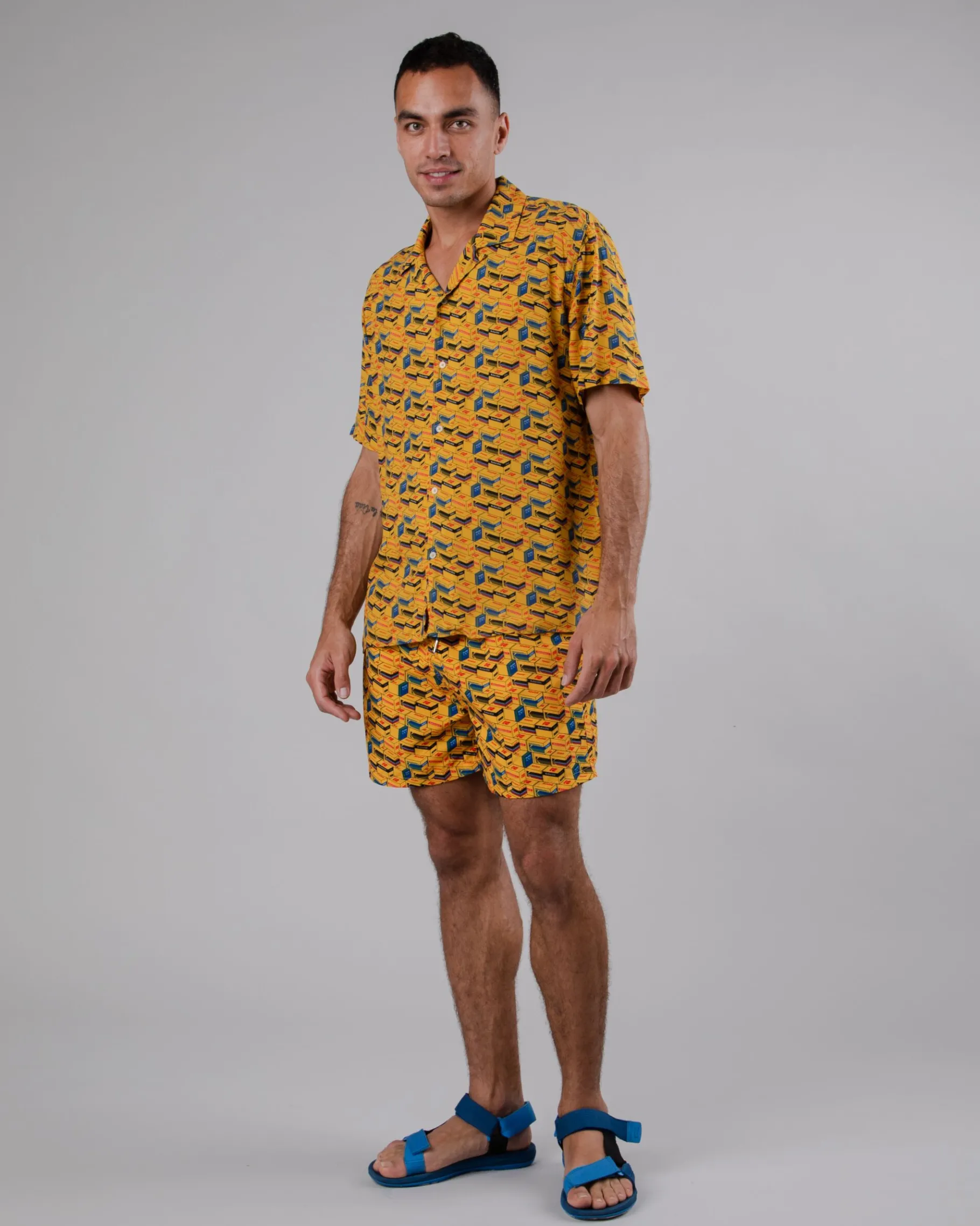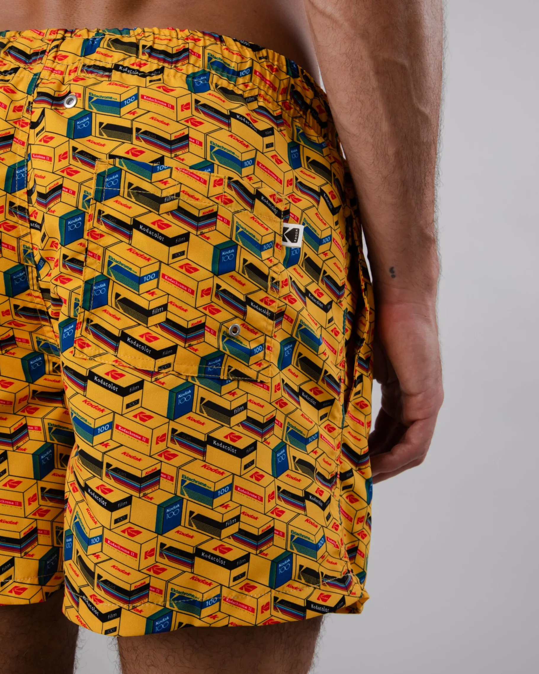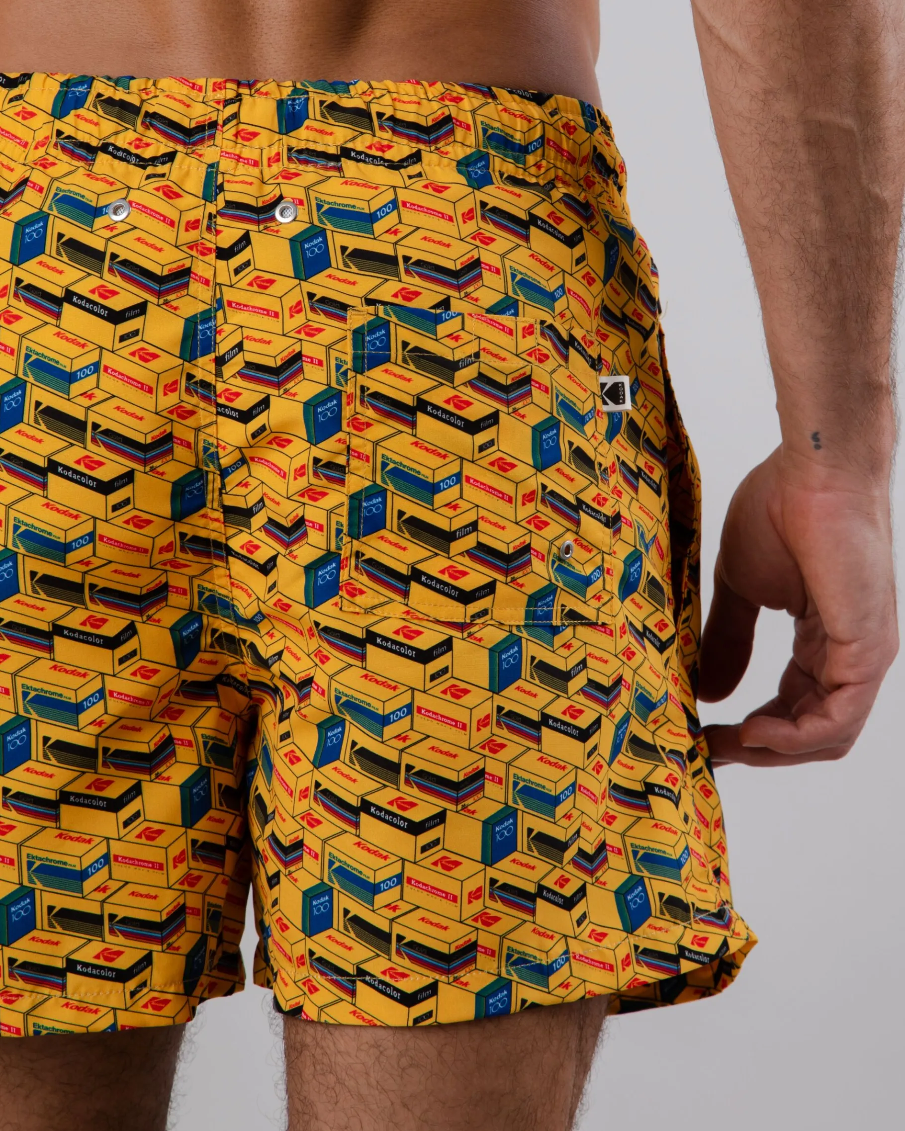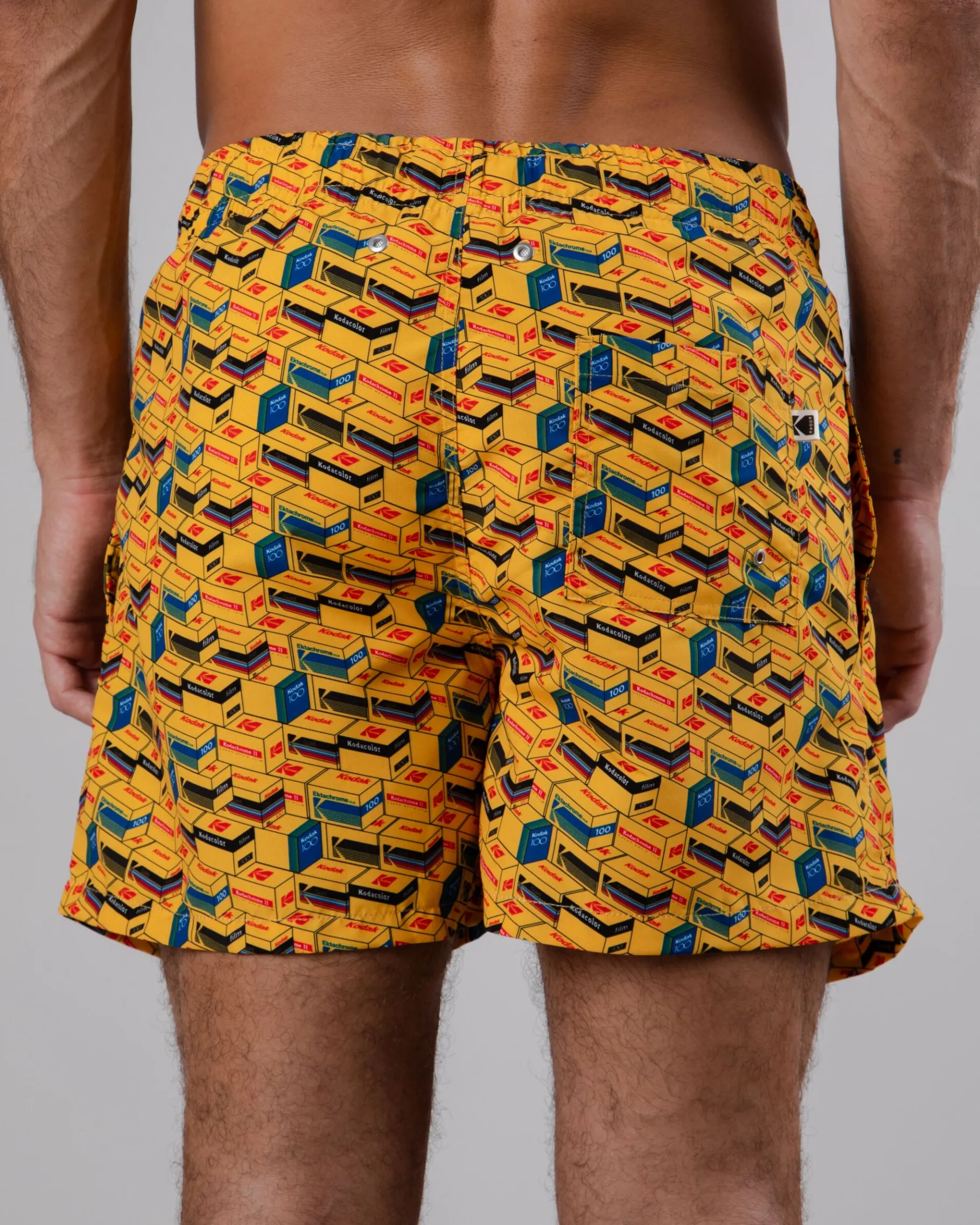 Kurze Badehose mit geradem Bein und Kodak-Aufdruck. Mit elastischem Bund und Kordelzug zur Regulierung der Passform. Vordertaschen und eine aufgesetzte Tasche auf der Rückseite. Ethisch hergestellt aus recyceltem Polyester.| Waschhinweise