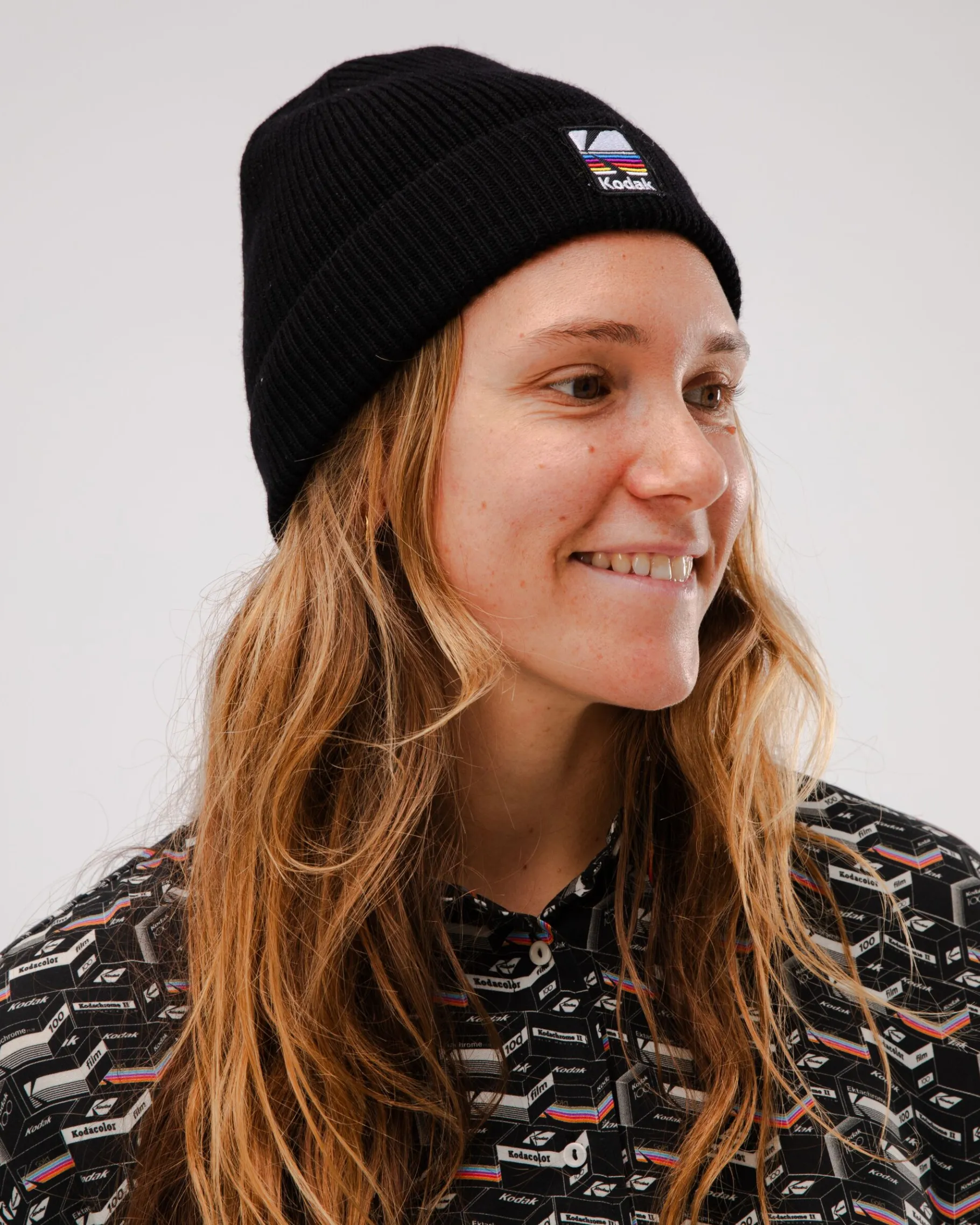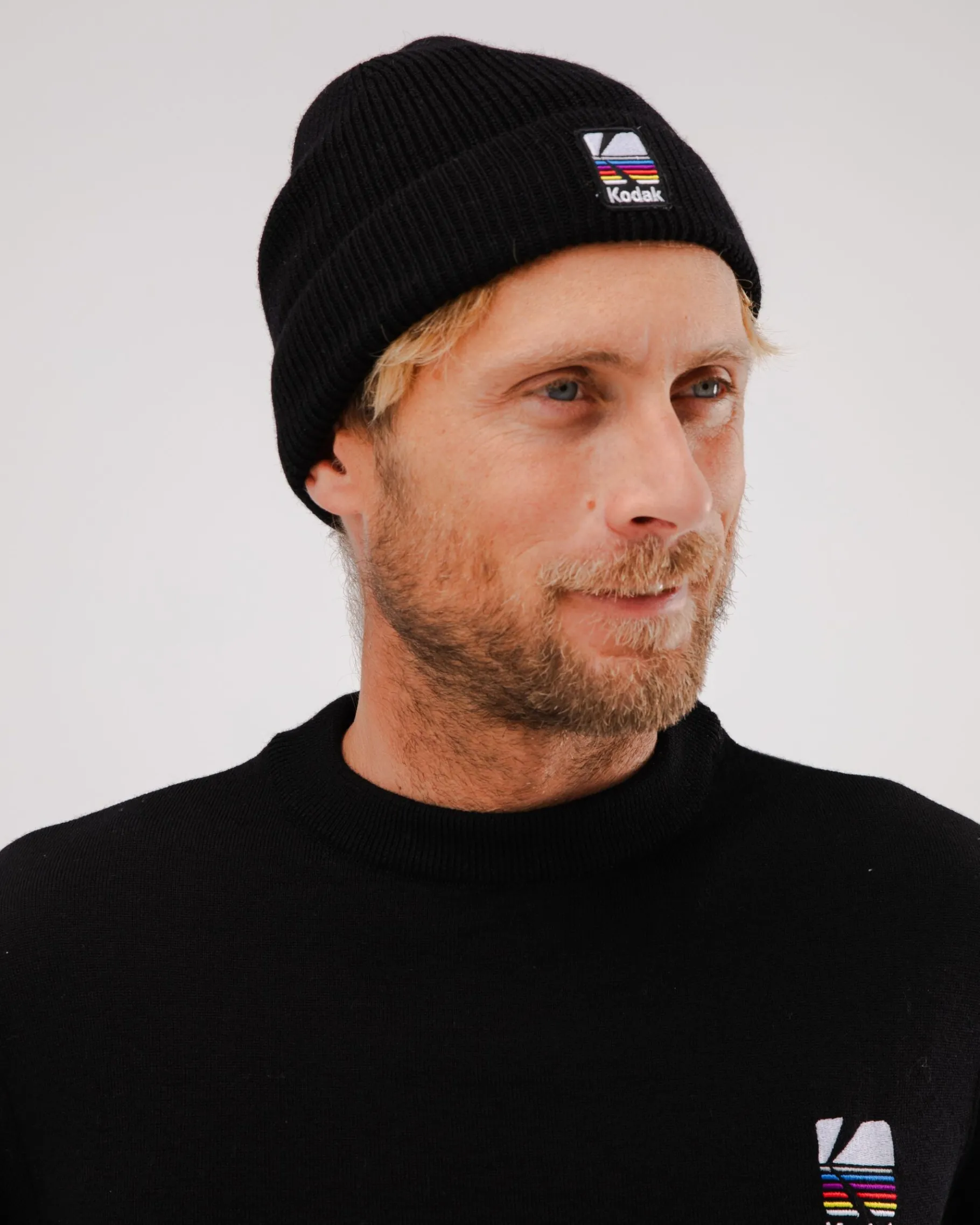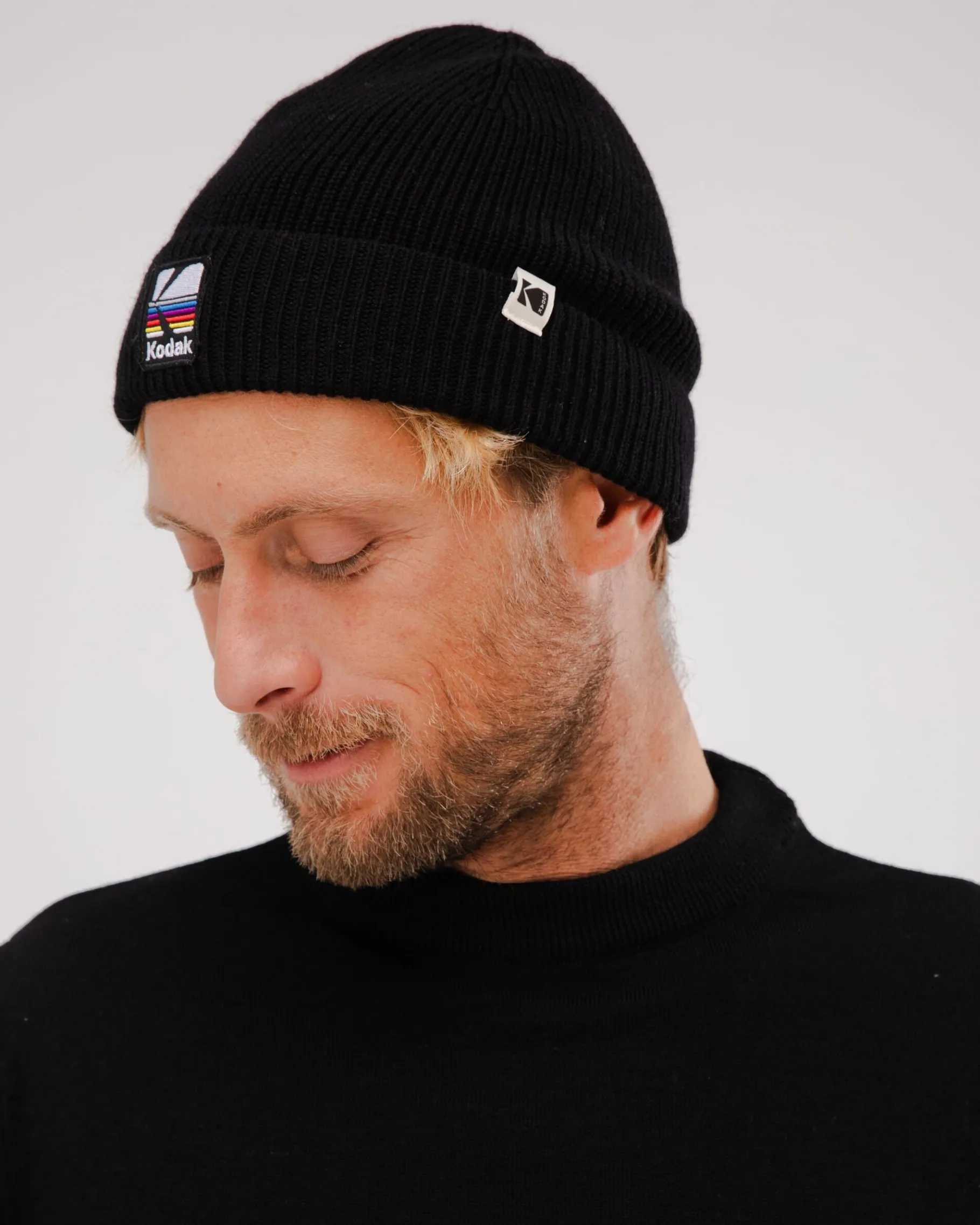 Discover the new Kodak x Brava collection with this black 1×1 rib knit beanie style hat that will keep your head warm all season long. With seam on the top and hem. Ethically made from mulesing free merino wool.| Waschhinweise
