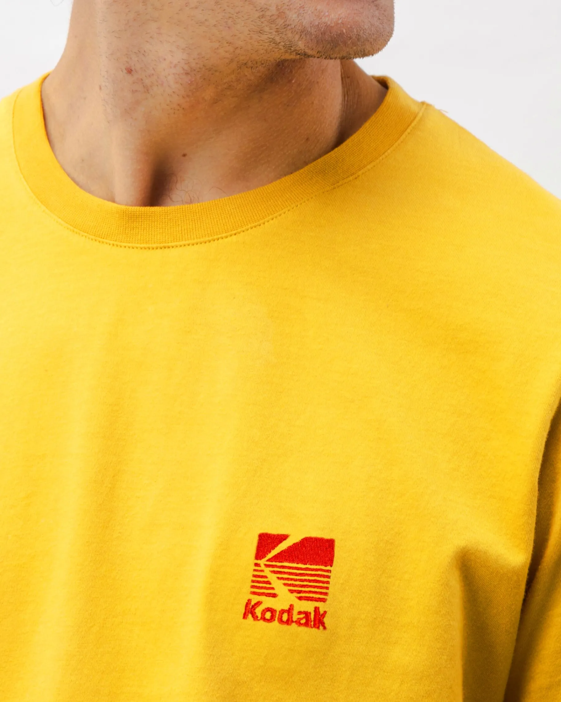 Regular Fit T-Shirt mit einer Kodak-Stickerei. Es hat einen ovalen Ausschnitt. Ethisch hergestellt aus biologischer Baumwolle.| Waschhinweise