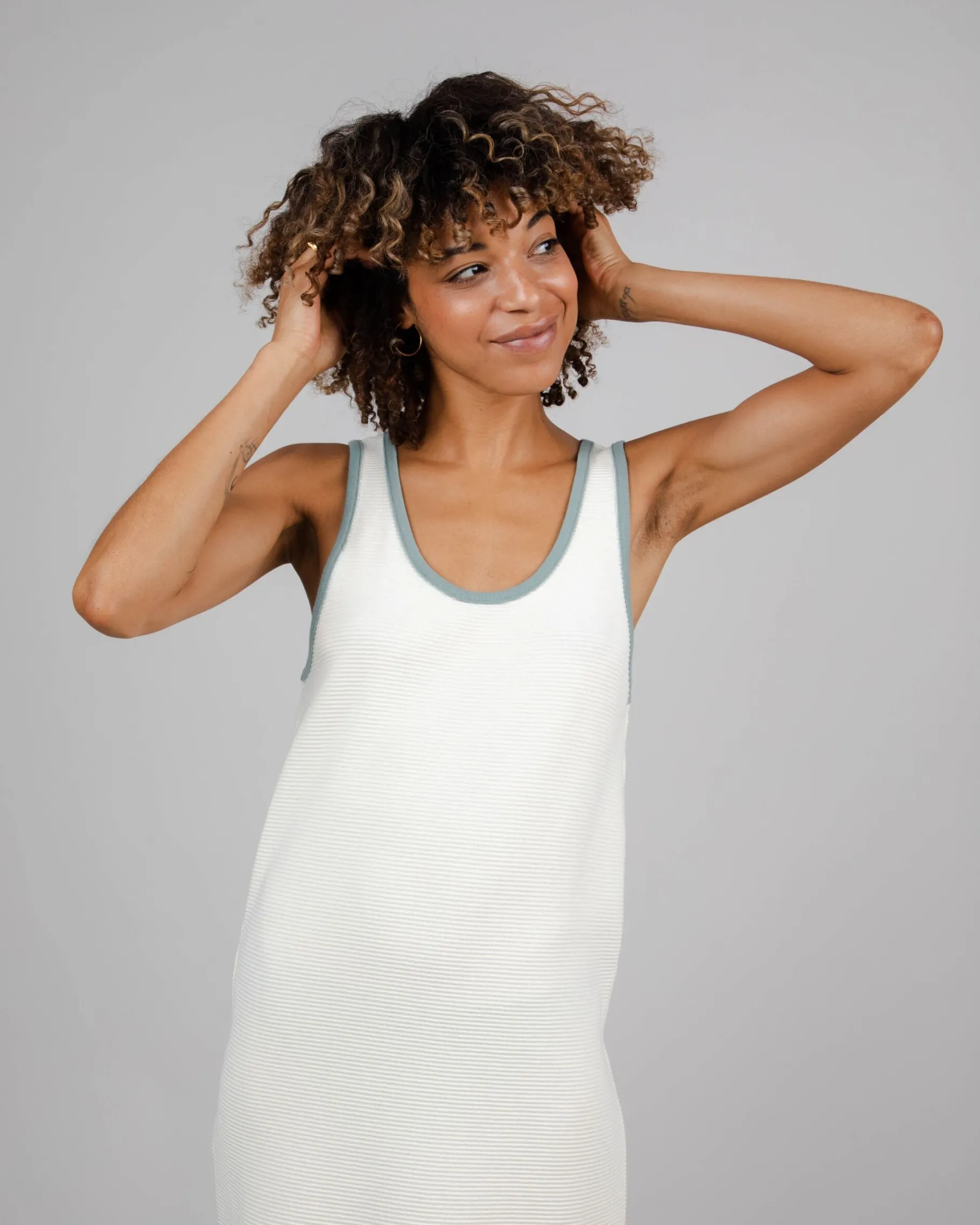 Langes Strick-Kleid mit breiten Trägern aus besonders weichem Stoff. Etwas weiterer Kragen und seitlichem Beinschlitz für besonders viel Komfort. Aus Bio-Baumwoll Mix und unter fairen Bedingungen hergestellt.| Waschhinweise