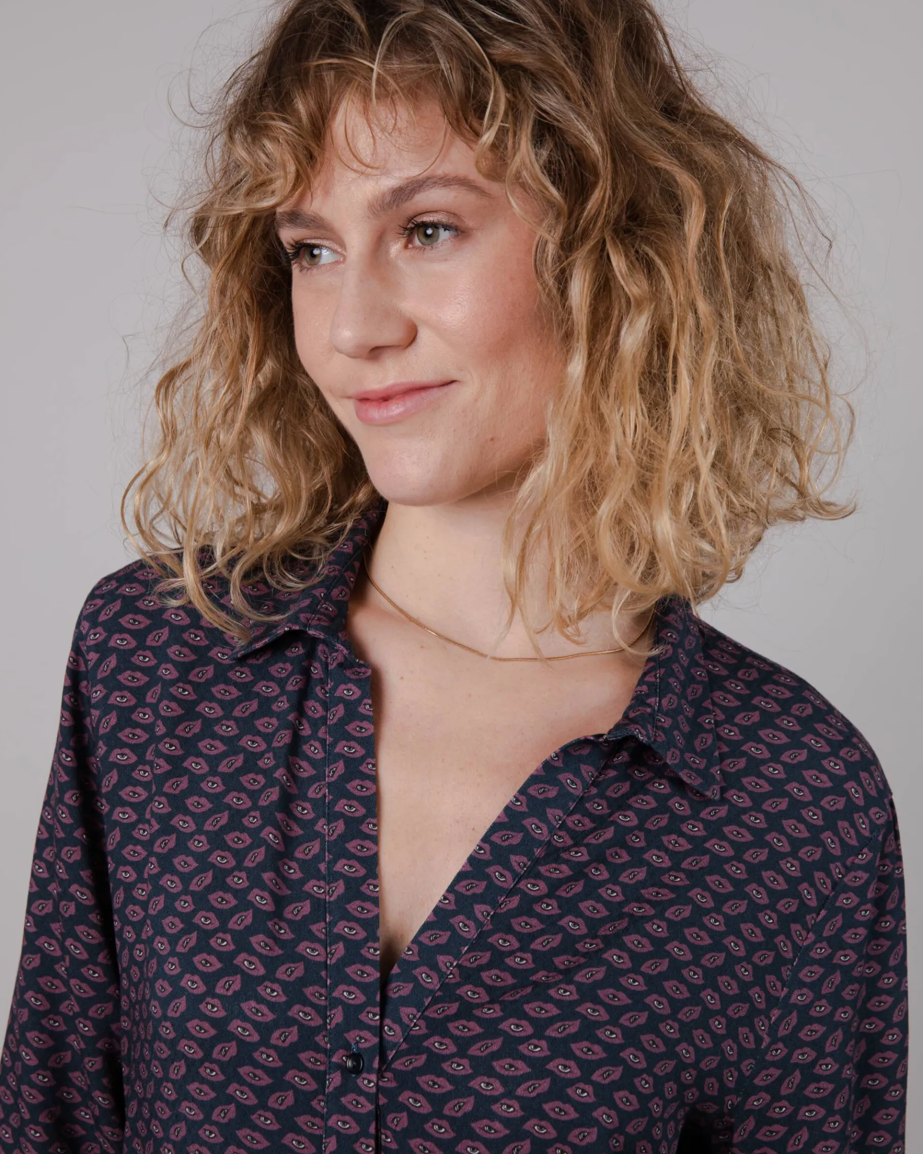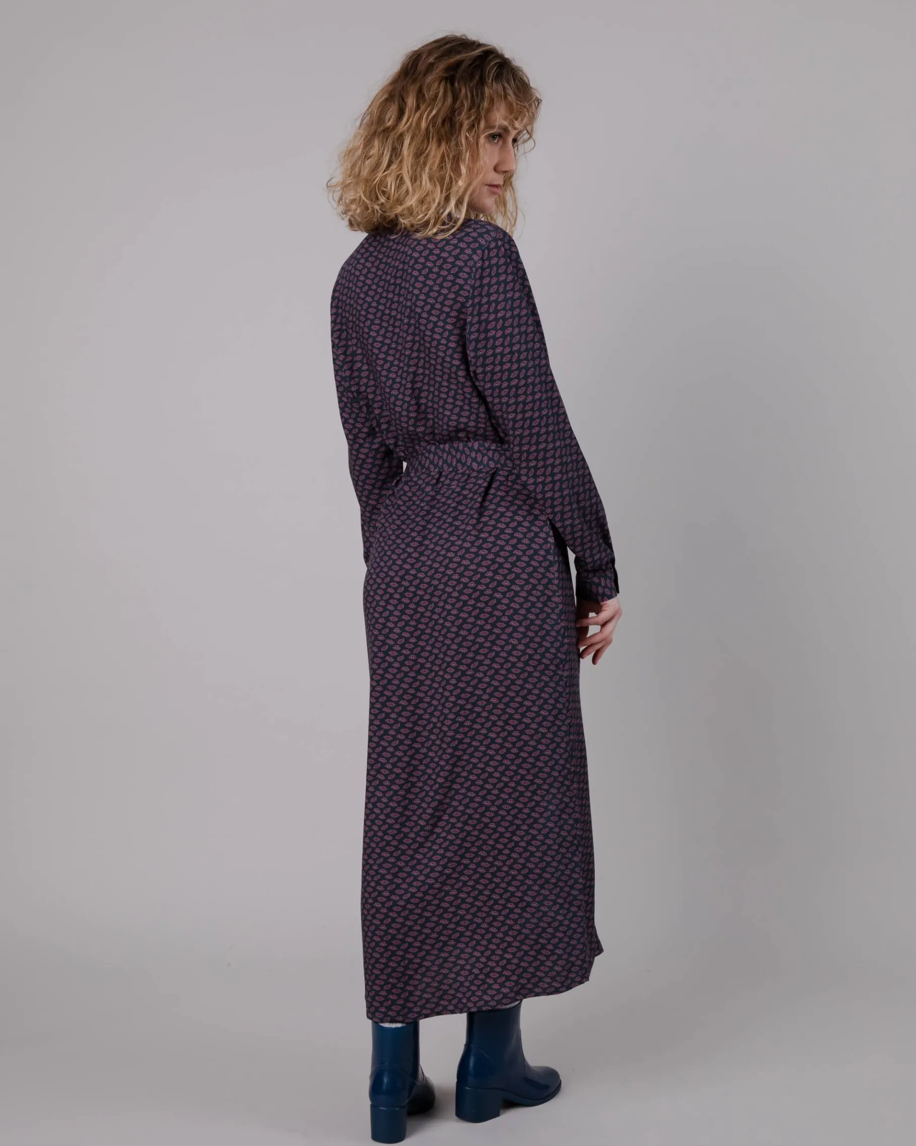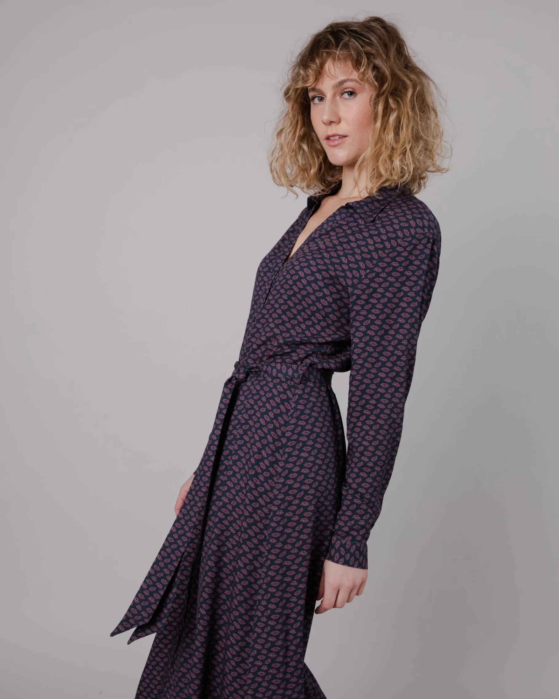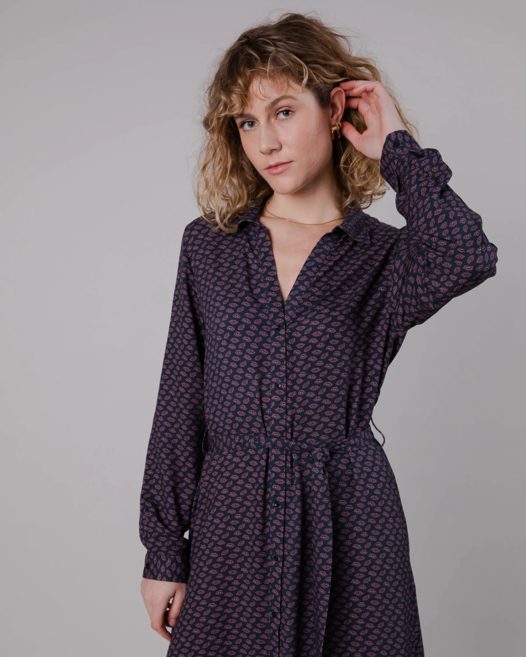 Langärmeliges, schmal geschnittenes Kleid mit V-Ausschnit und Taillengürtel. Ethisch hergestellt aus Ecovero-Viskose.| Waschhinweise