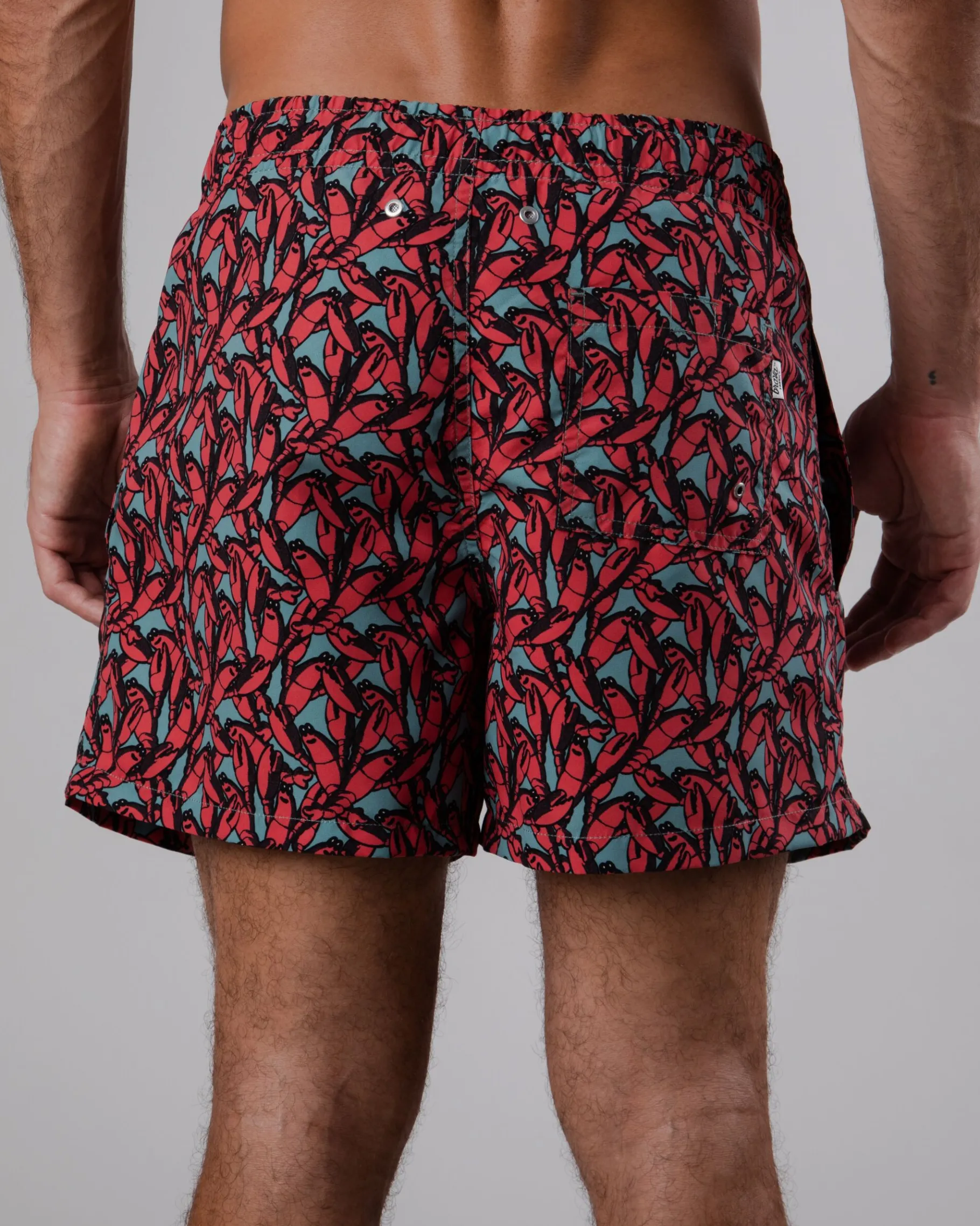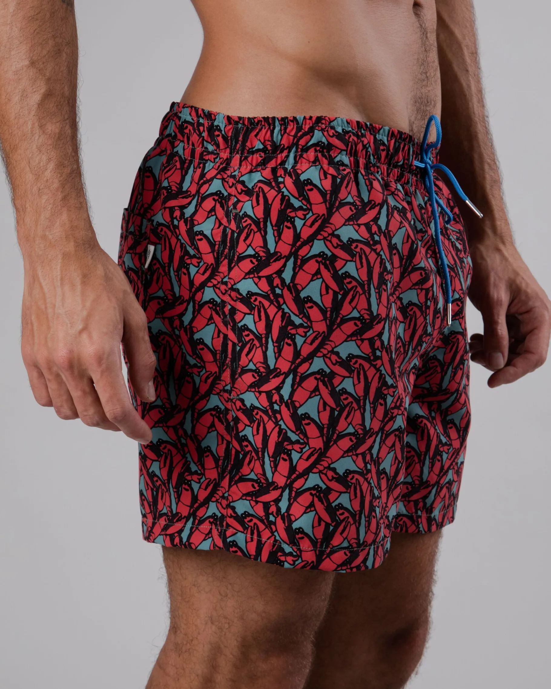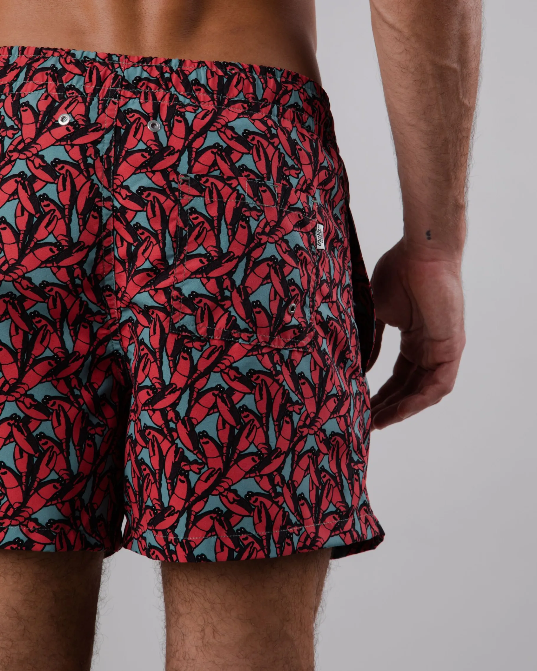 Kurze Badehose mit geradem Bein und Hummer-Print. Sie hat einen elastischen Bund und einen Kordelzug zur Regulierung der Passform. Mit Taschen auf der Vorderseite und einer aufgesetzter Tasche auf der Rückseite. Ethisch hergestellt aus recyceltem Polyester.| Waschhinweise