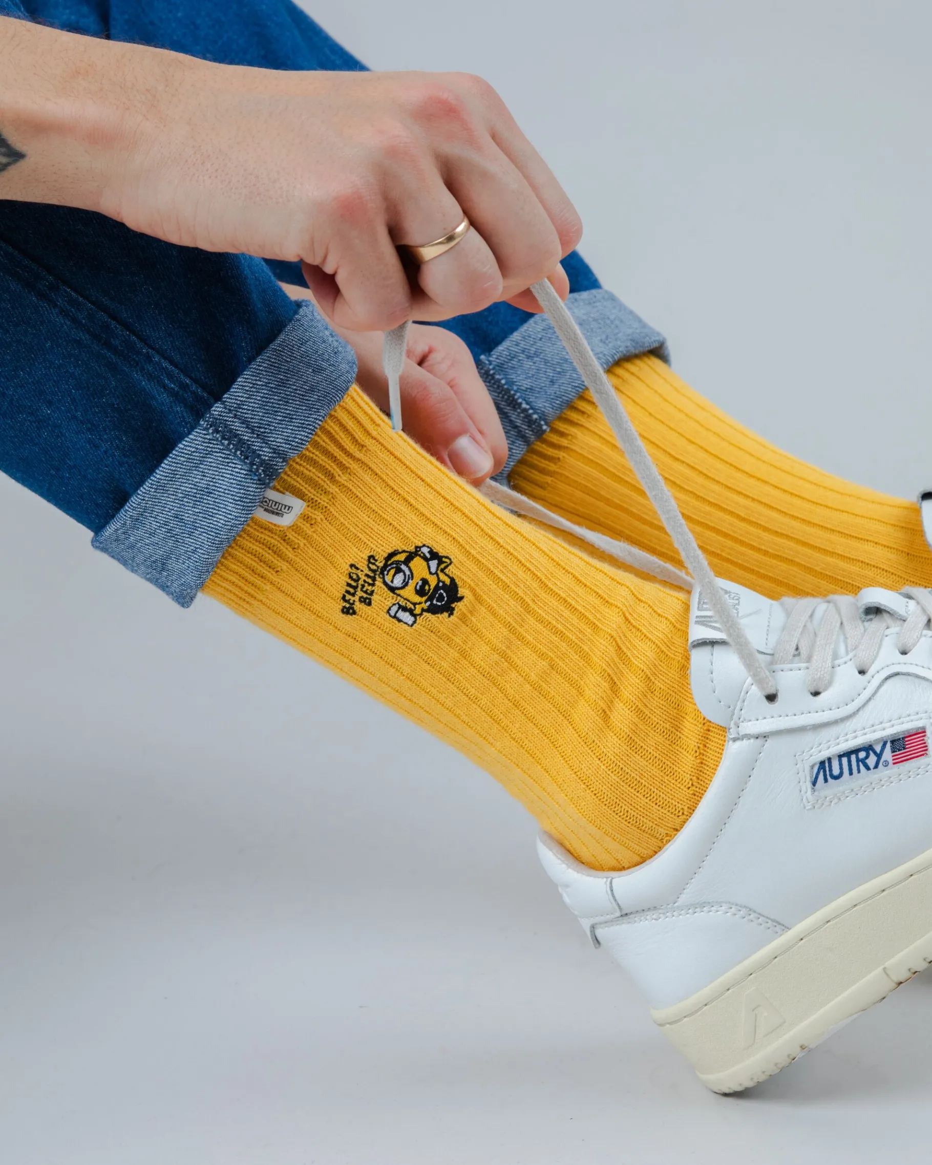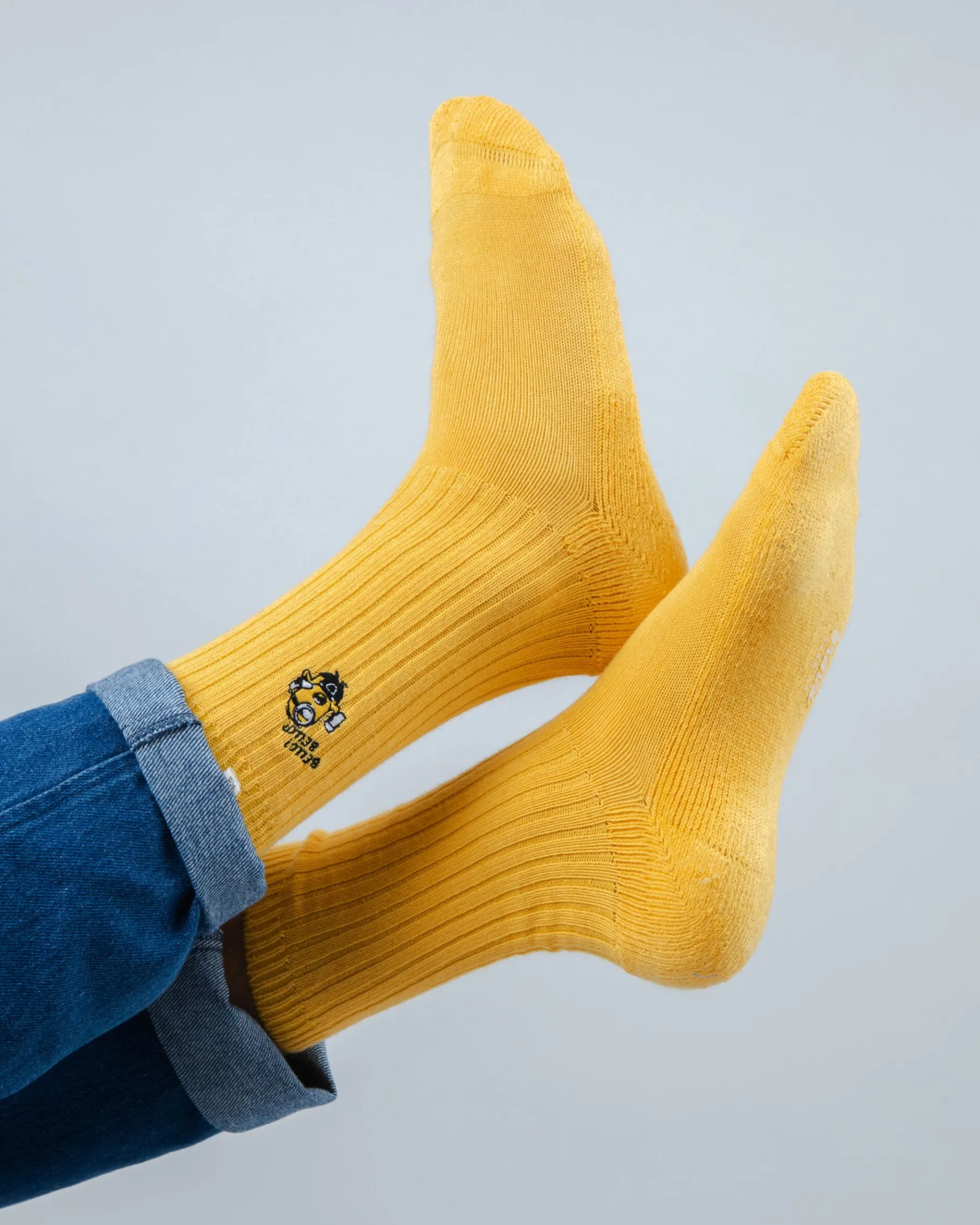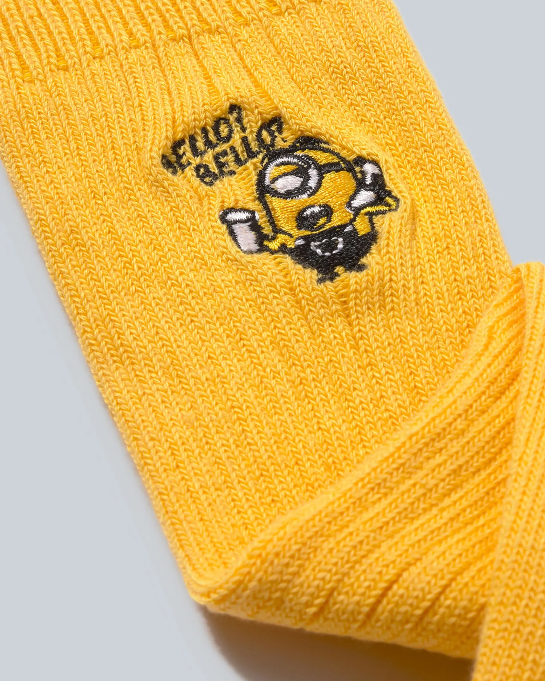 Minions-Baumwollsocken mit mittlerer Wadenlänge und mittlerer Dicke mit gesticktem Minions. Ethisch hergestellt aus Bio-Baumwolle, Polyamid und Elastan.| Waschhinweise