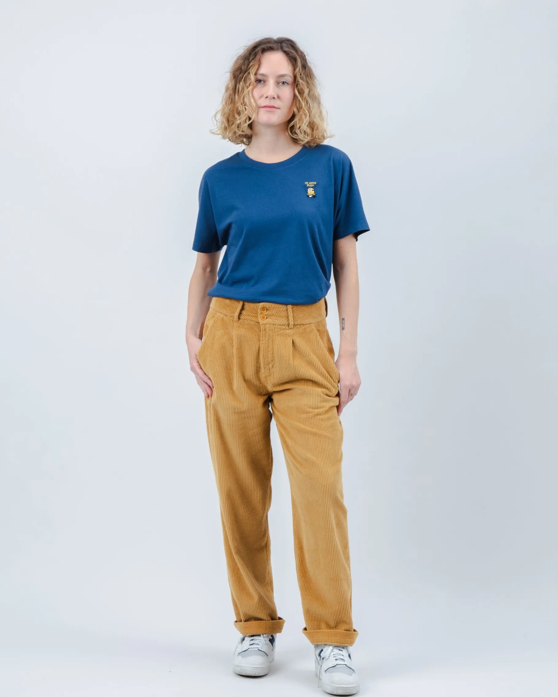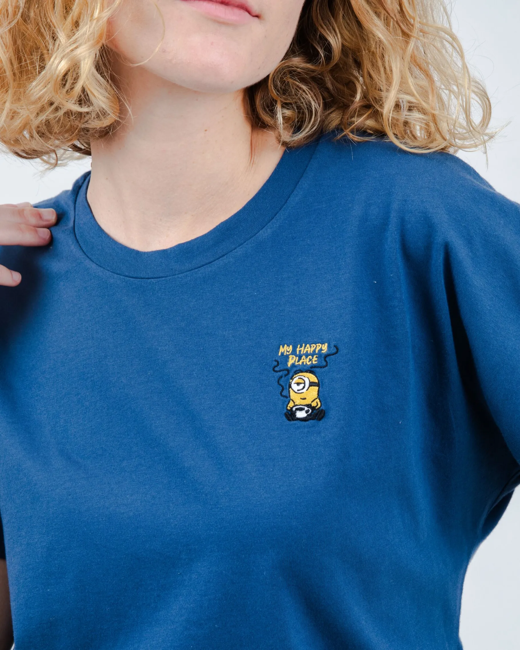 Minions-T-Shirt mit kurzen Ärmeln und Woodstock-Stickerei. Der runde Kragen und die grafischen Details sorgen für einen zusätzlichen Akzent. Ethisch hergestellt aus biologischer Baumwolle.| Waschhinweise