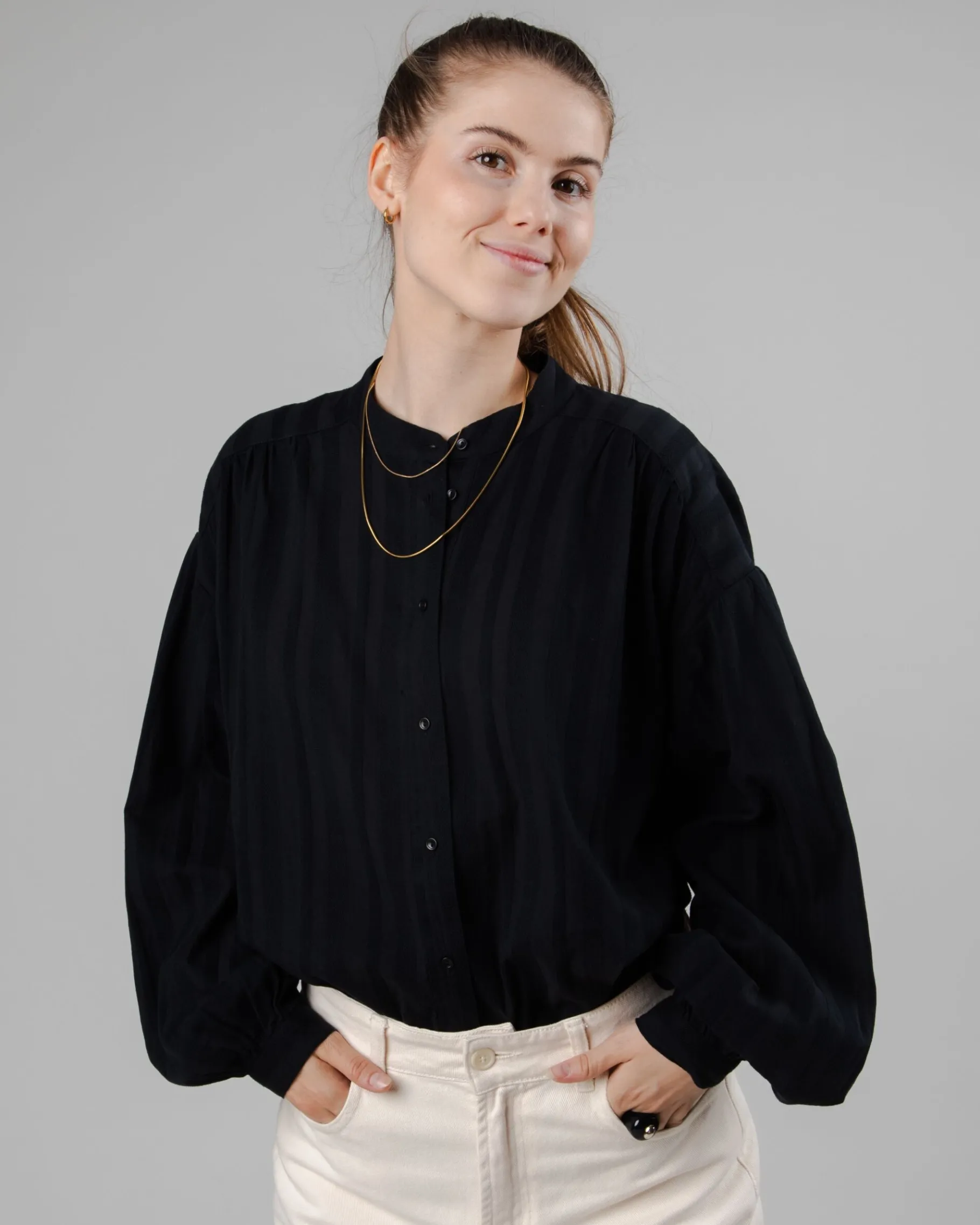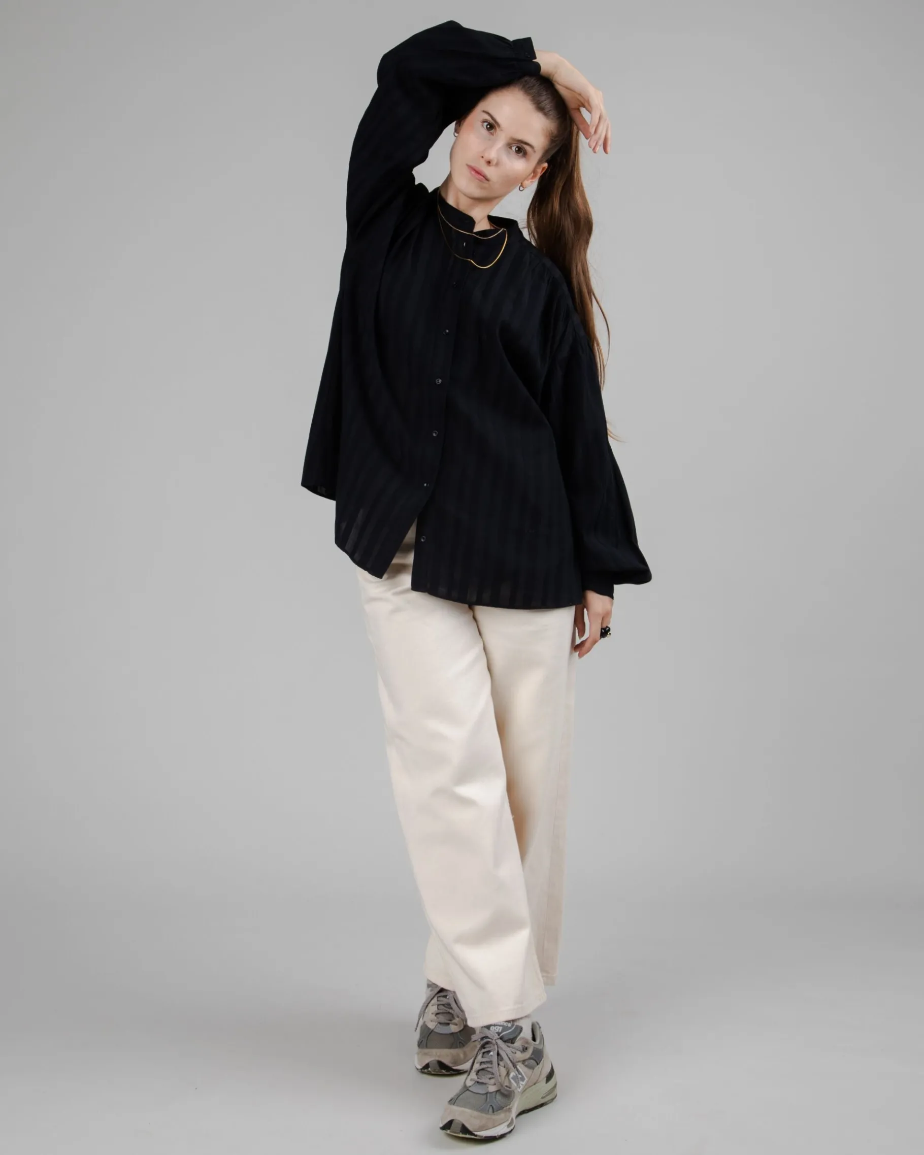 Diese Bluse in lockerer Oversized-Passform verbindet klassische Eleganz mit höchstem Tragekomfort.Hergestellt aus 100% Bio-Baumwolle und unter fairen Bedingungen in Portugal produziert| Waschhinweise