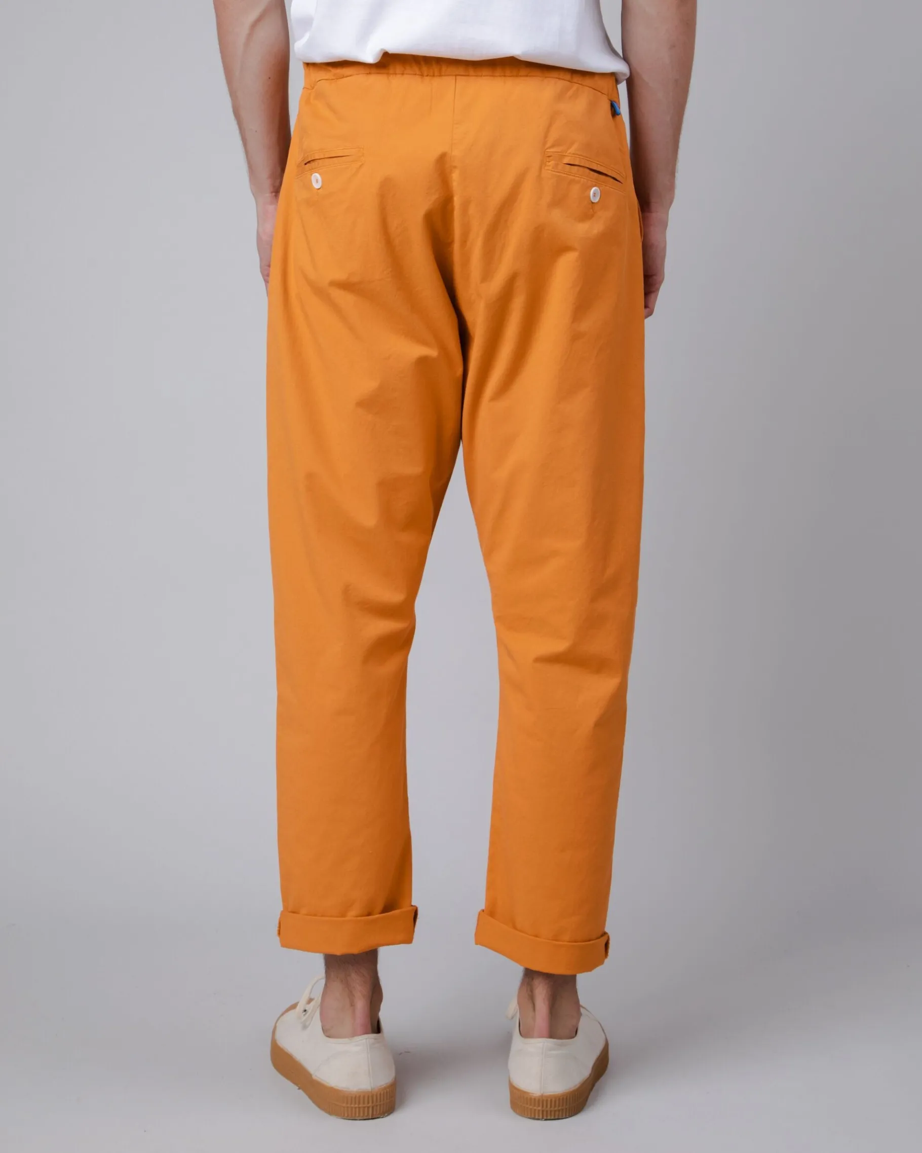 Lange Hose mit geradem Bein in entspannter Passform, elastischem Bund und Fake-Fly-Detail. Sie hat Vordertaschen und Paspeltaschen mit Knöpfen auf der Rückseite. Der Kordelzug ermöglicht eine ideale Passform. Ethisch hergestellt aus Bio-Baumwolle, Leinen, europäischem Flachs und Elastan.| Waschhinweise