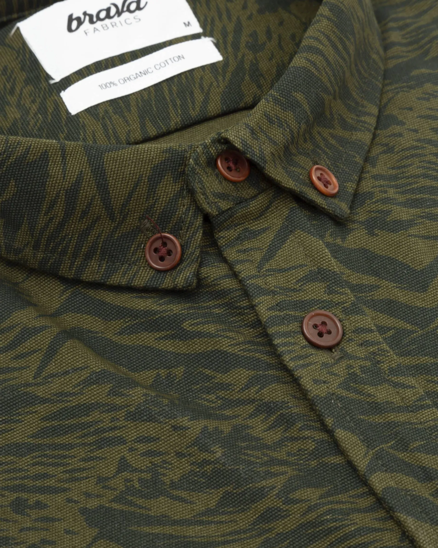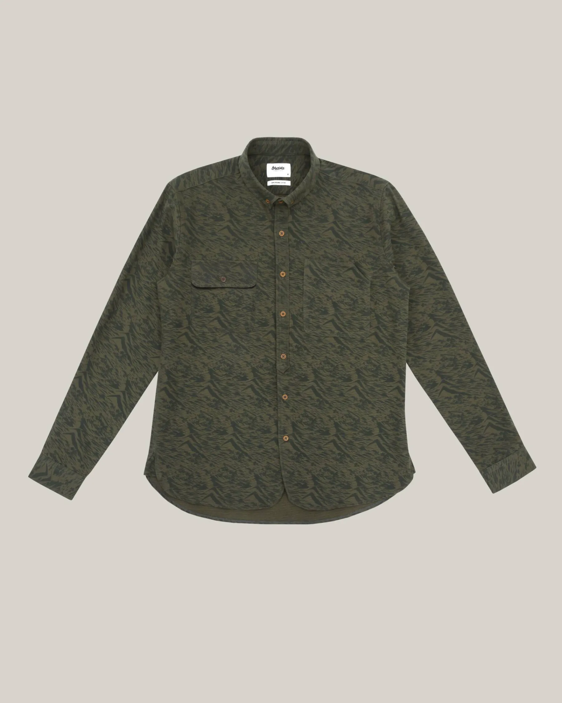 A classic Lumber jack shirt with typical Brava twist: We reinterpreted the camouflage with the shapes of the mountains. A versatile shirt, that can be worn buttoned up or open over a T-shirt.