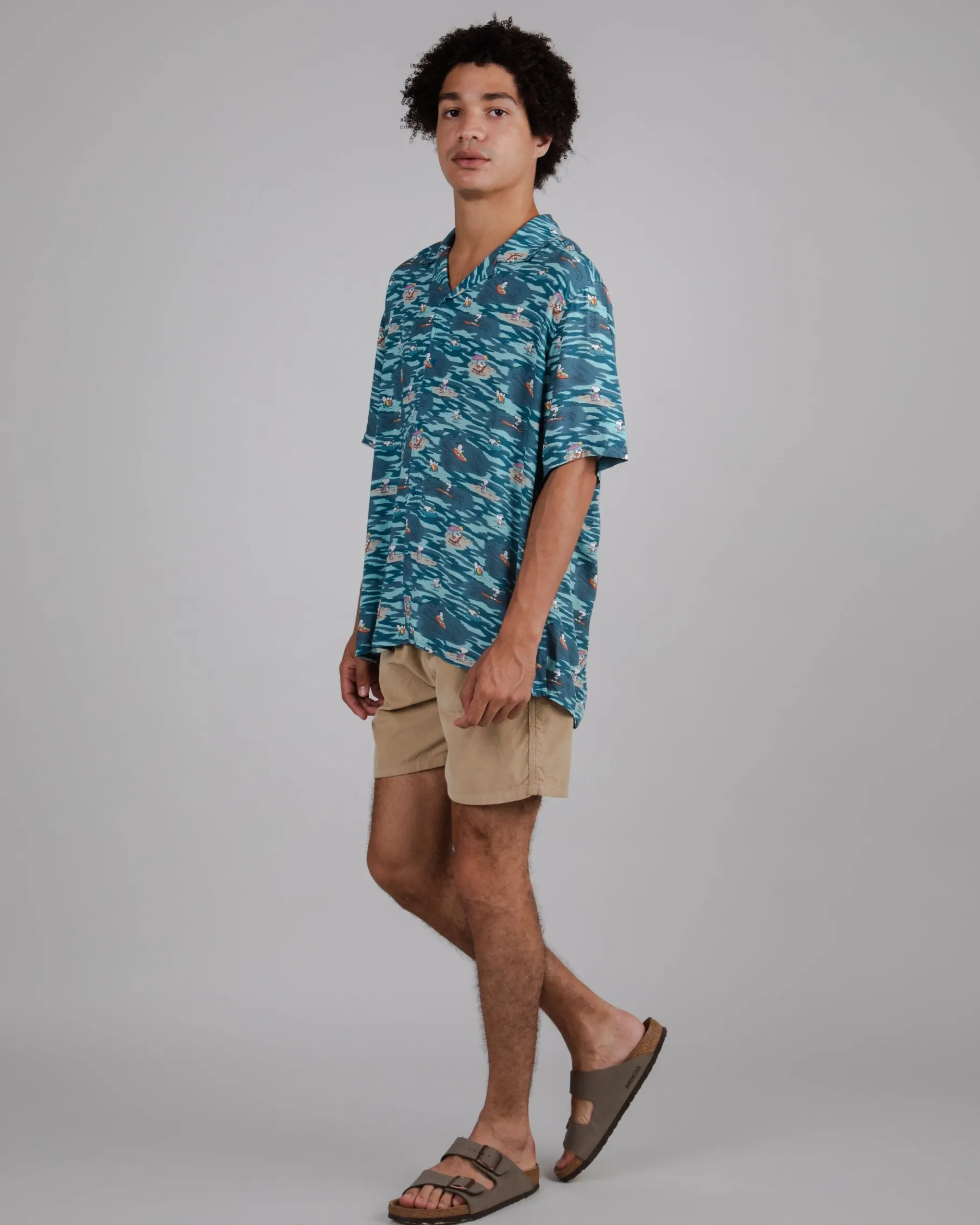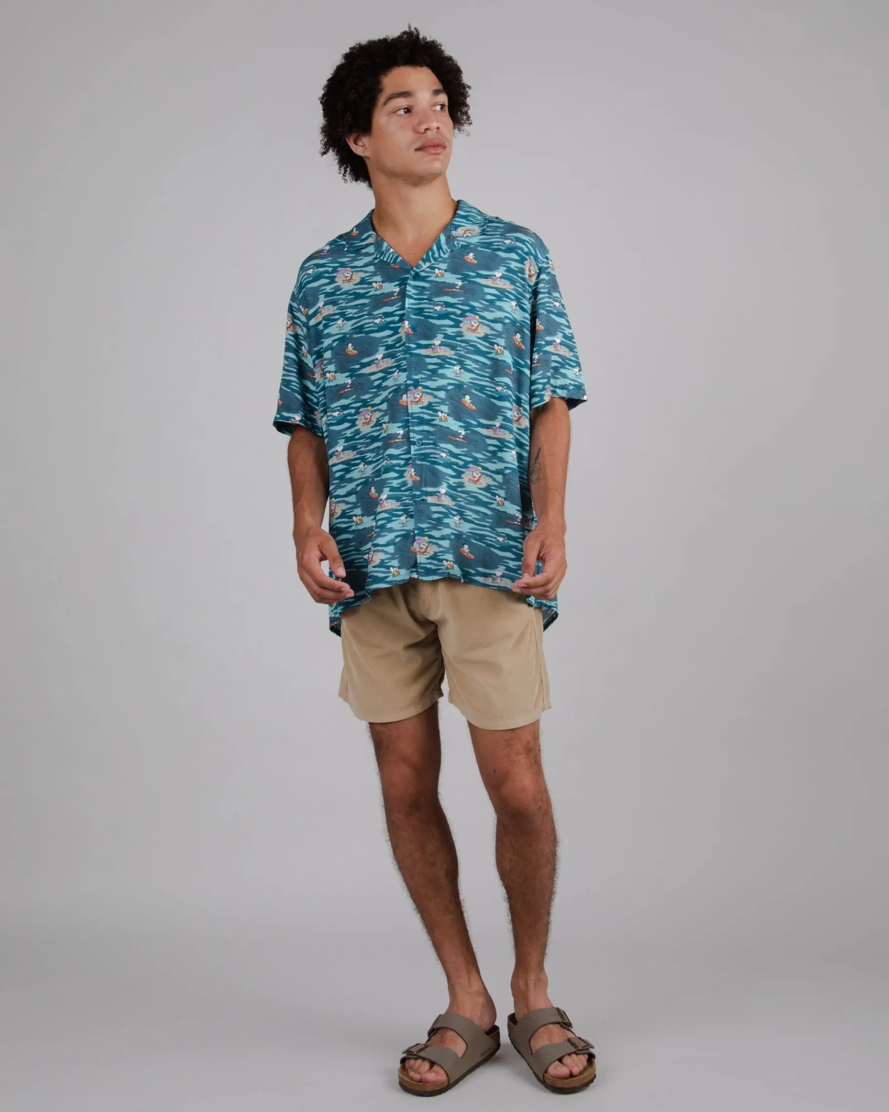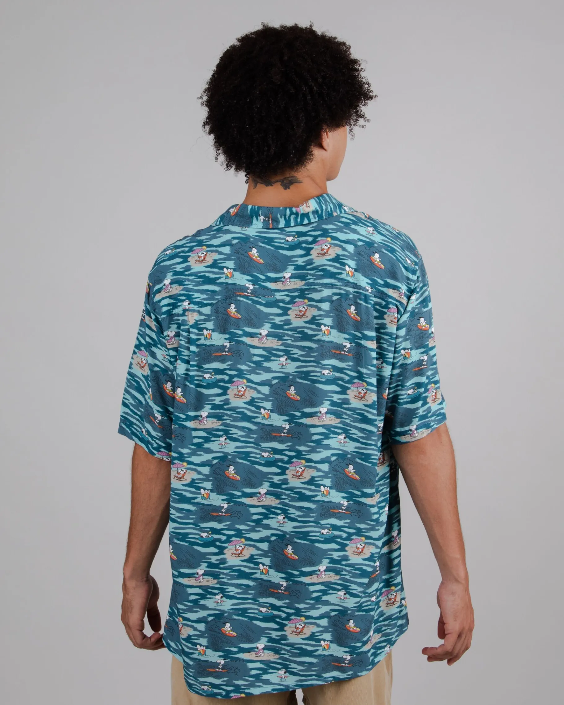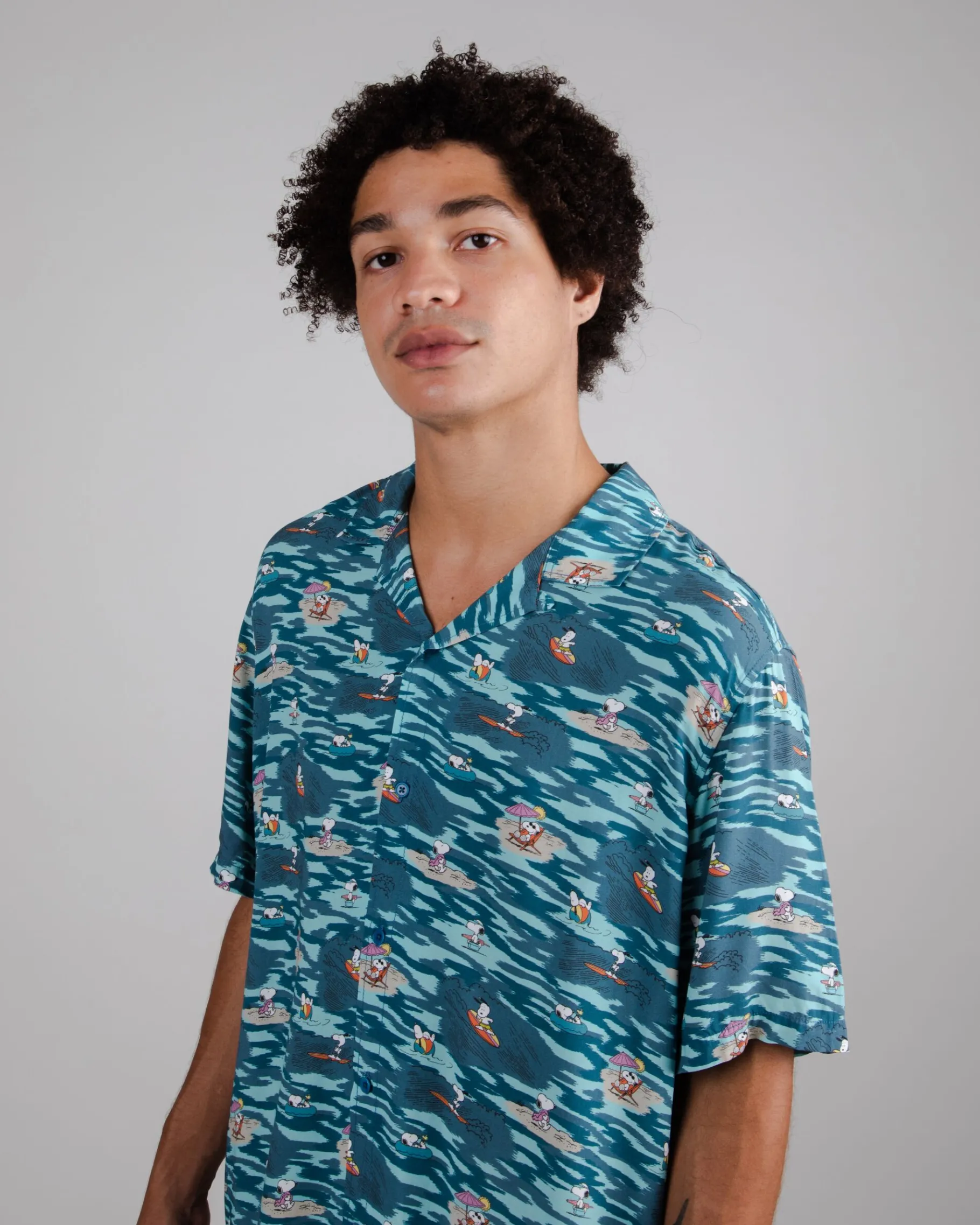 Locker geschnittenes, kurzärmeliges Aloha-Shirt mit Peanuts-Aufdruck. Es hat eine leicht überschnittene Schulter, einen geraden Saum, einen Reverskragen und einen Knopfverschluss. Ethisch hergestellt aus nachhaltiger Viskose.| Waschhinweise