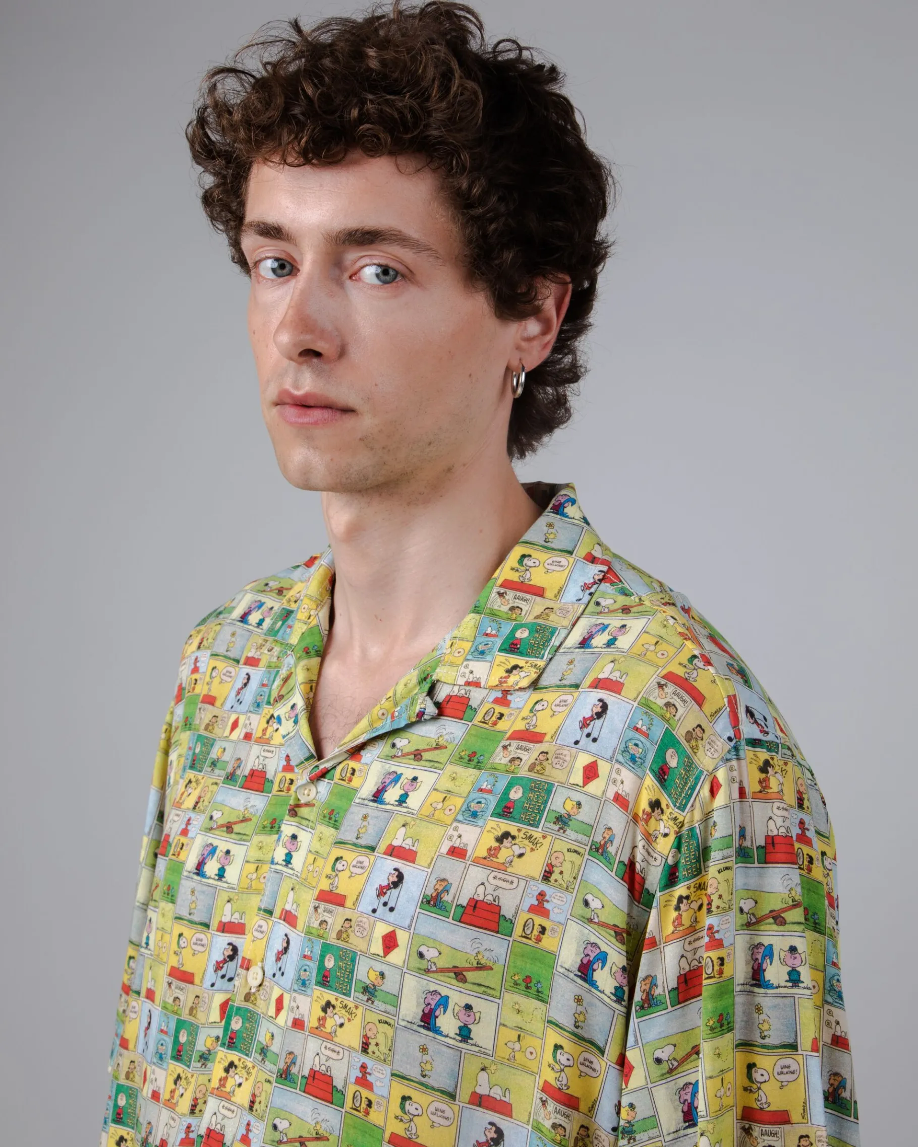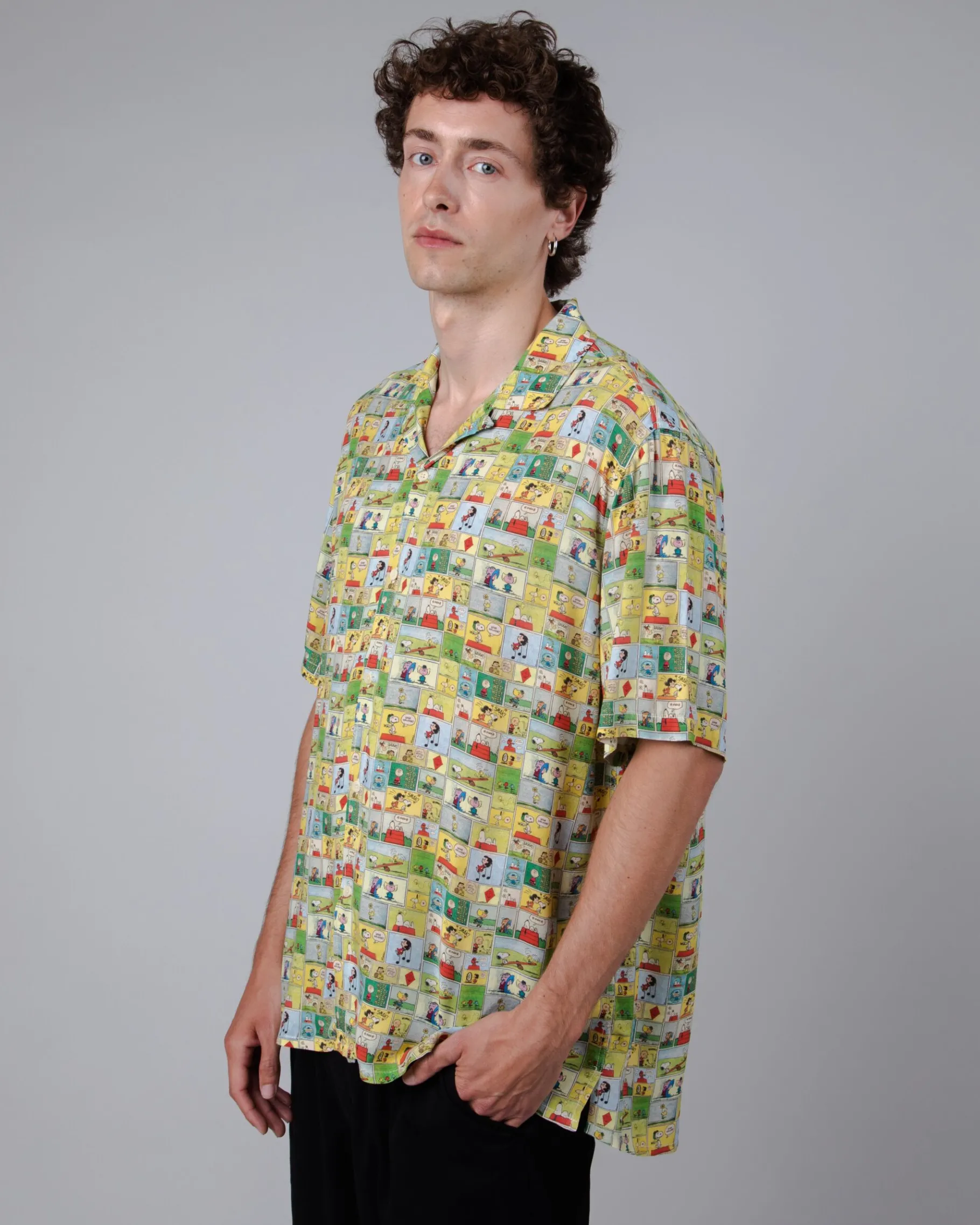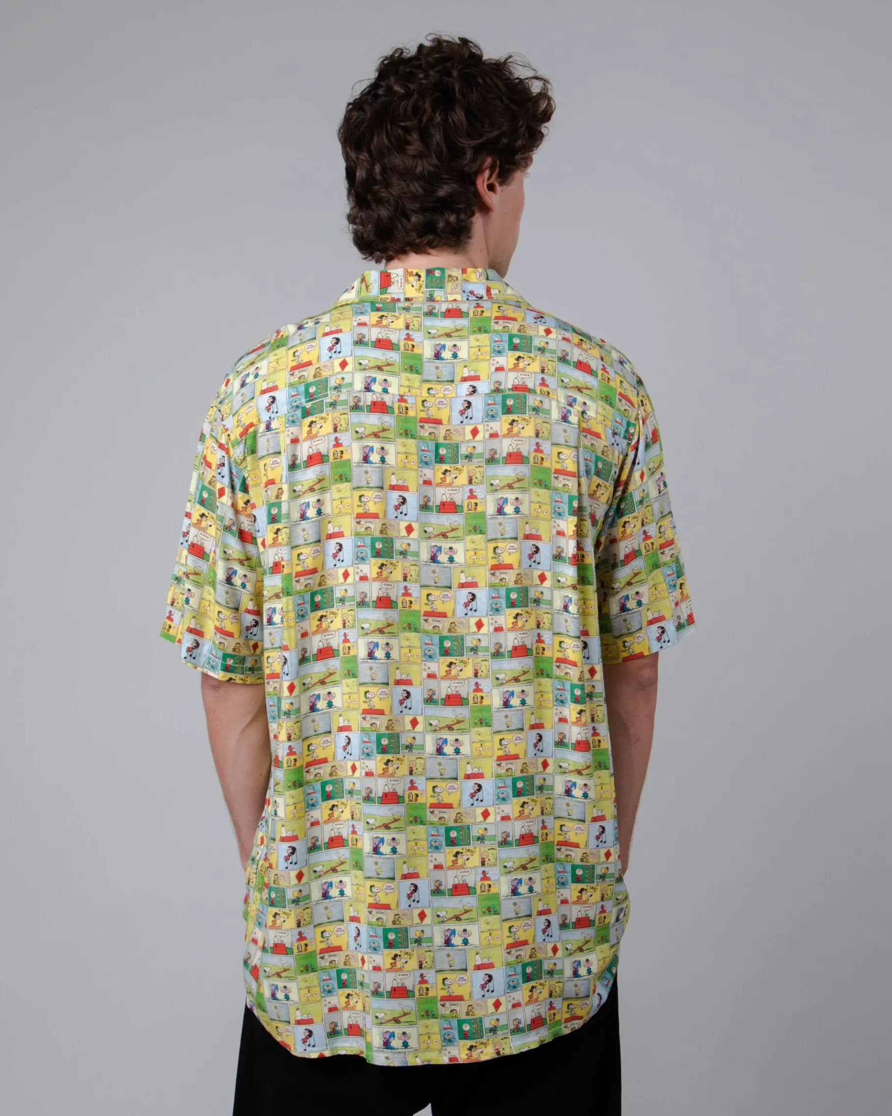 Locker geschnittenes, kurzärmeliges Aloha-Shirt mit Peanuts-Comic-Aufdruck. Es hat eine leicht überschnittene Schulter, einen geraden Saum, einen Reverskragen und einen Knopfverschluss. Ethisch hergestellt aus nachhaltiger Viskose.| Waschhinweise