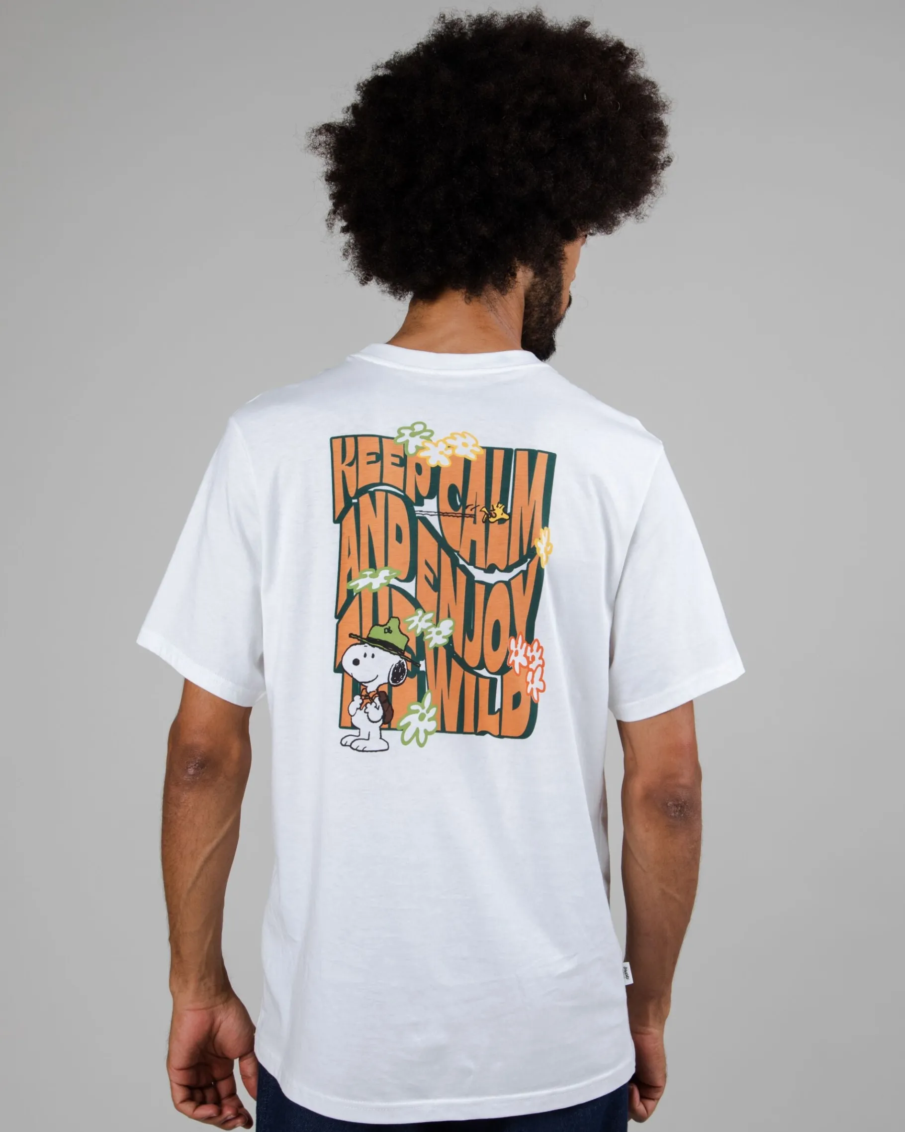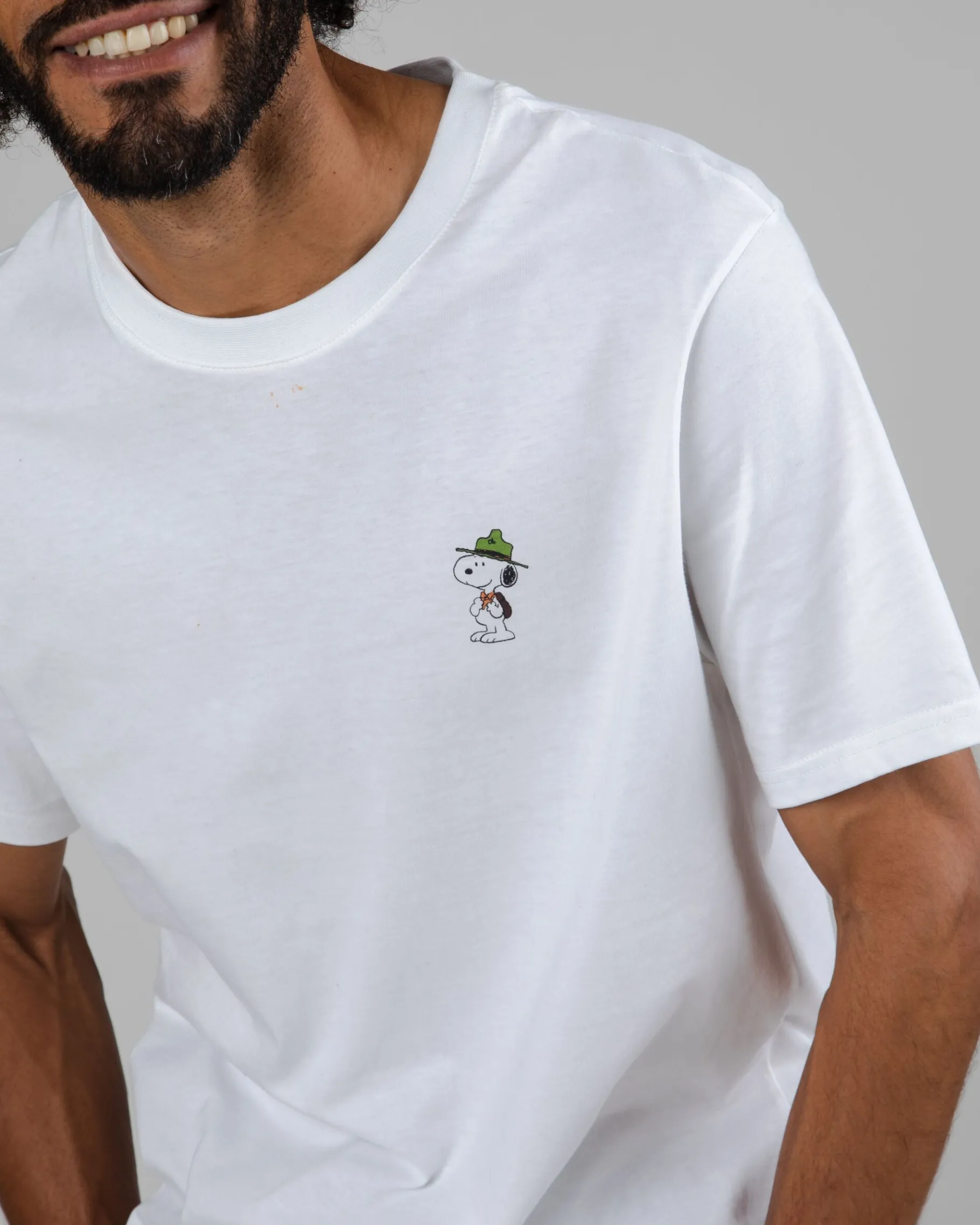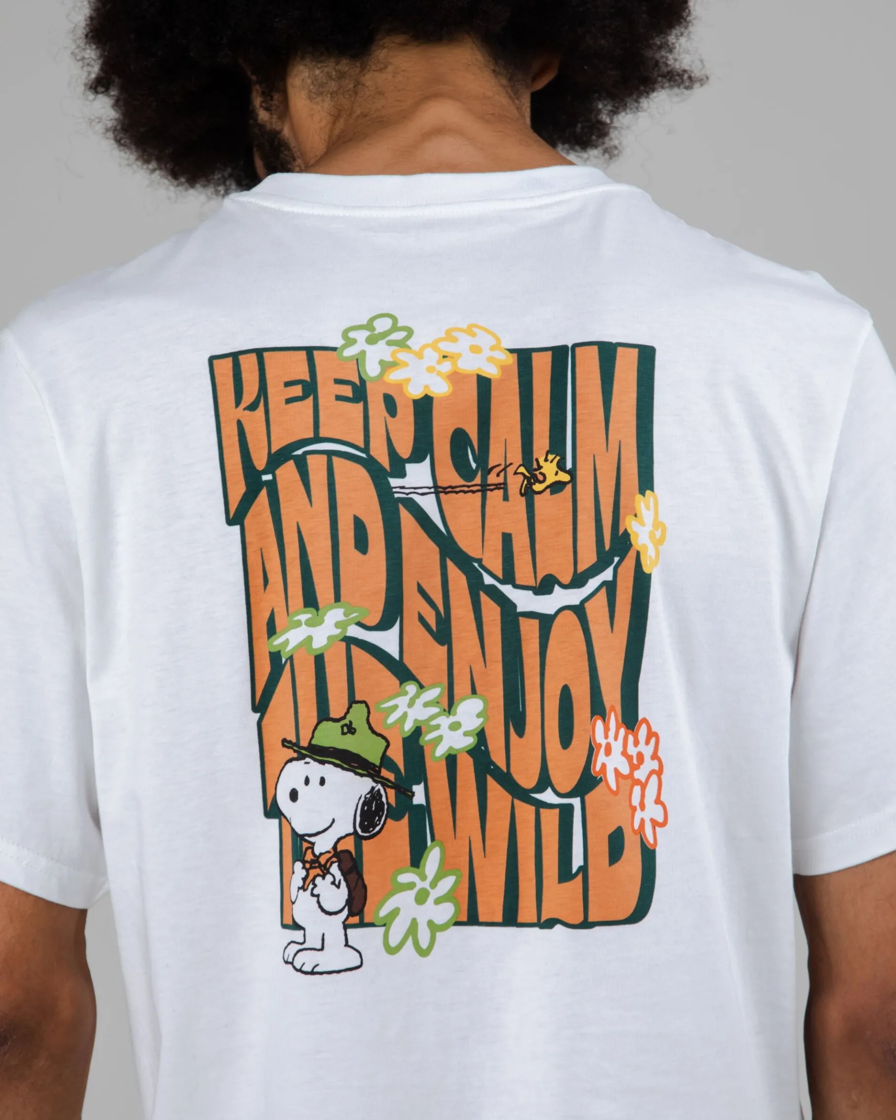 Lass dich zurück in die Kindheit versetzen mit unserer Peanuts-Kollektion. T-Shirt mit Rundhalsausschnitt, „Snoopy“-Stickerei und „Keep calm and enjoy the wild“-Aufdruck auf der Rückseite. Ethisch hergestellt aus Bio-Baumwolle.| Waschhinweise