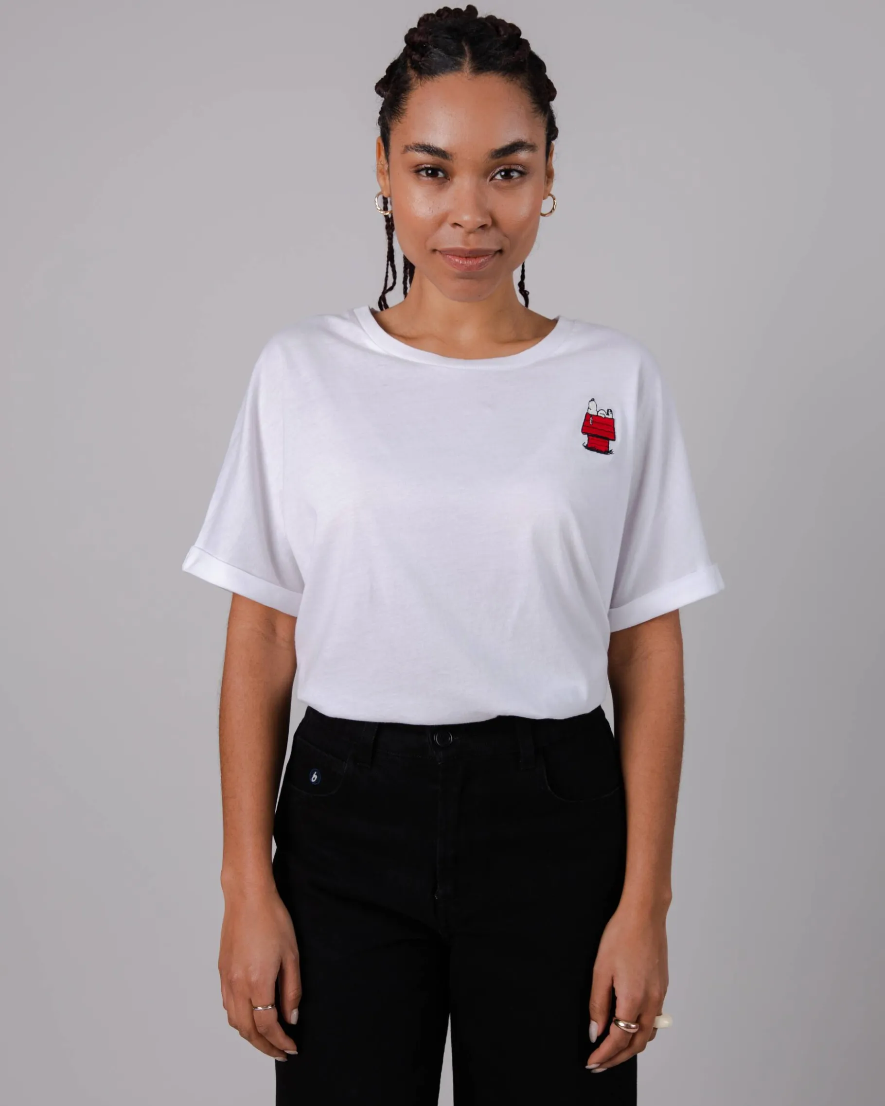 Lass dich zurück in die Kindheit versetzen mit unserer Peanuts-Kollektion. Oversize-T-Shirt mit leichtem Crop, überschnittenen Schultern und Rundhalsausschnitt. Lustiges „Snoopy“-Motiv in seiner berühmten Hundehütte. Ethisch hergestellt aus Bio-Baumwolle.| Waschhinweise