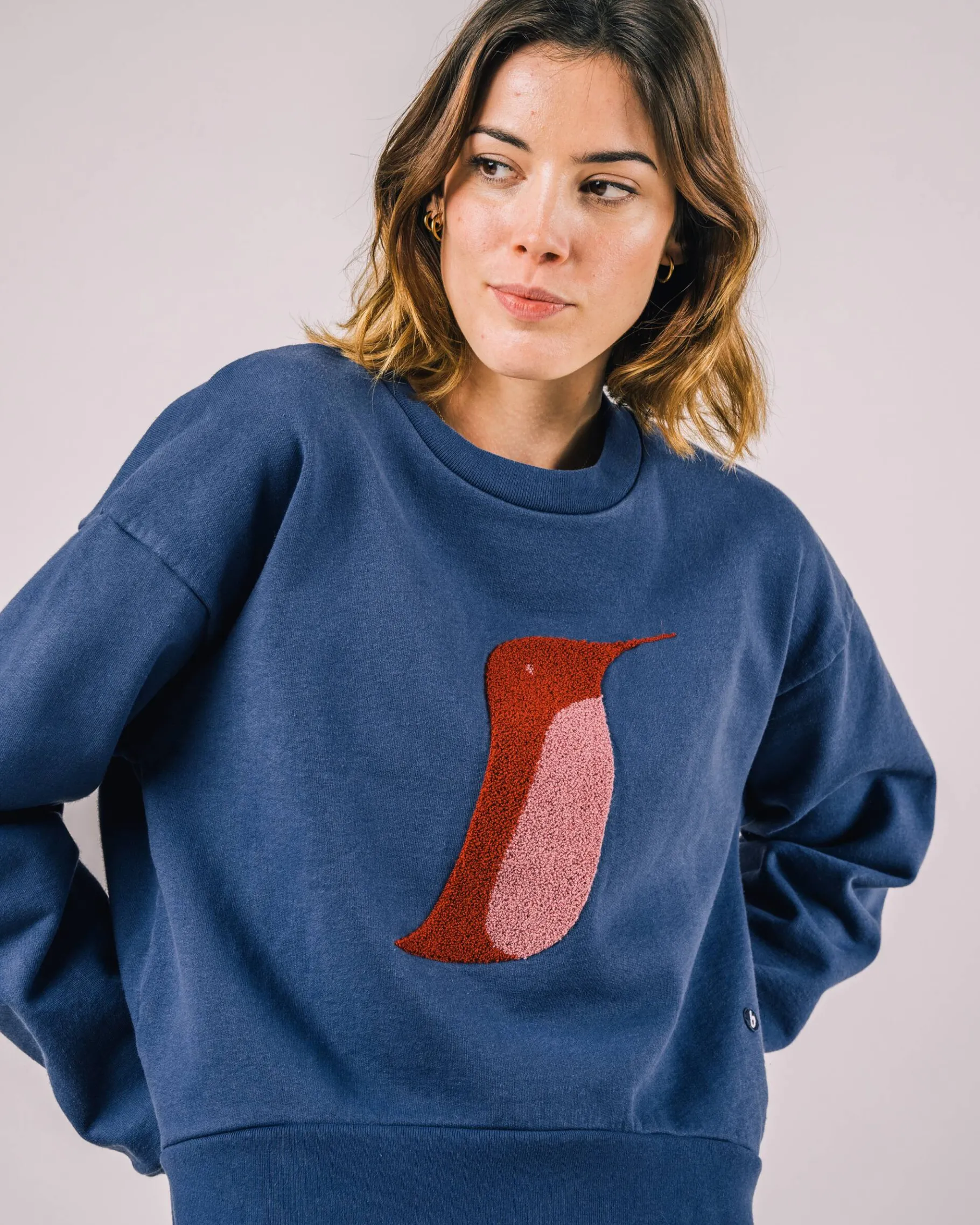 Dank des supersoften Pinguin-Patches in Rottönen, der eine fröhliche Kombination mit der indigoblauen Farbe des Pullovers eingeht, ist dieser Pullover mit abgerundeter Passform ein garantierter Blickfang! Hergestellt aus 100% Bio-Baumwolle und unter fairen Bedingungen in Portugal gefertigt.| Waschhinweise