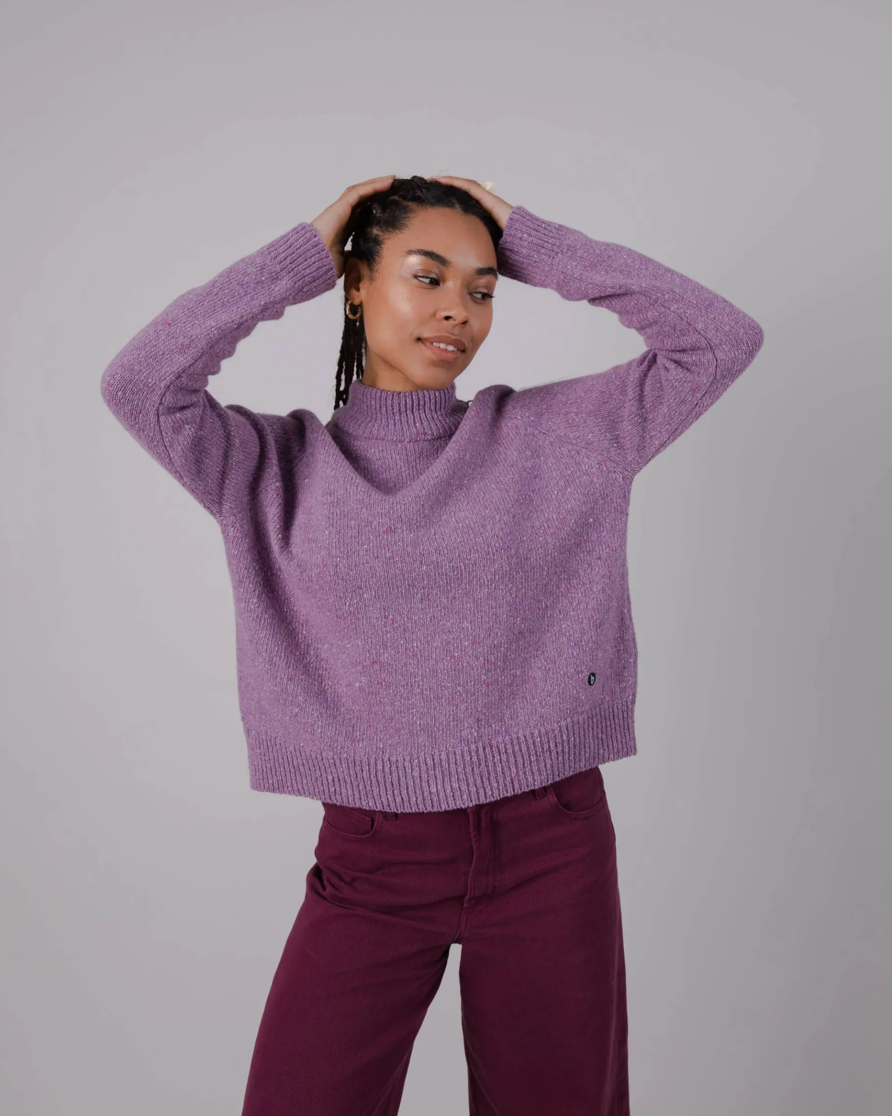 Kurzer Strickpullover mit Perkins-Kragen und Raglan-Ärmeln. Extrem bequem und weich, ehthisch hergestellt aus recycelter Wolle, Polyamid und Viskose.| Waschhinweise