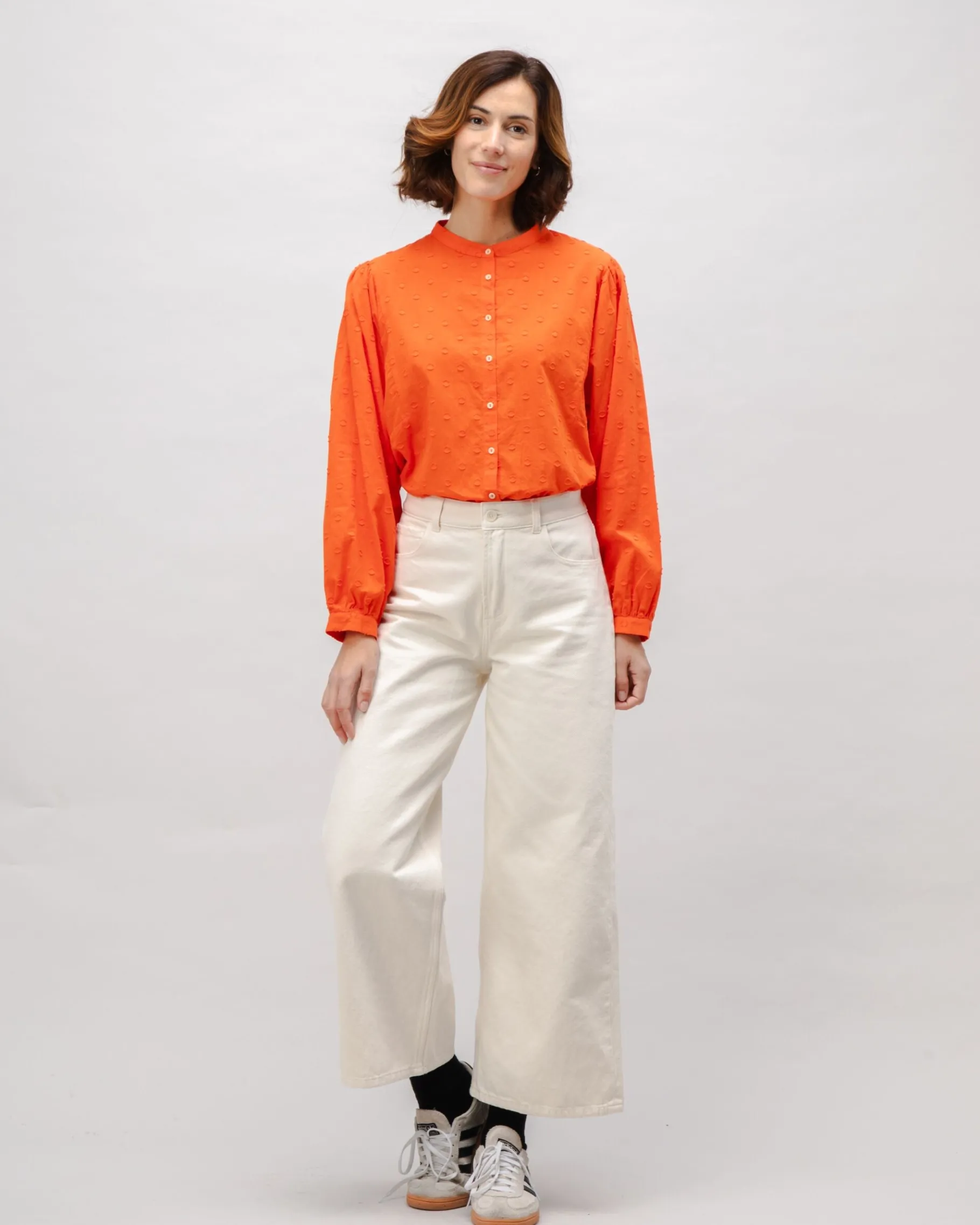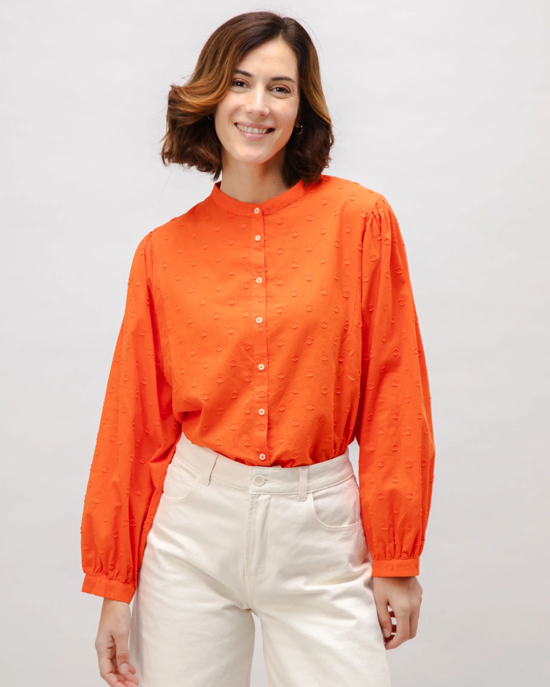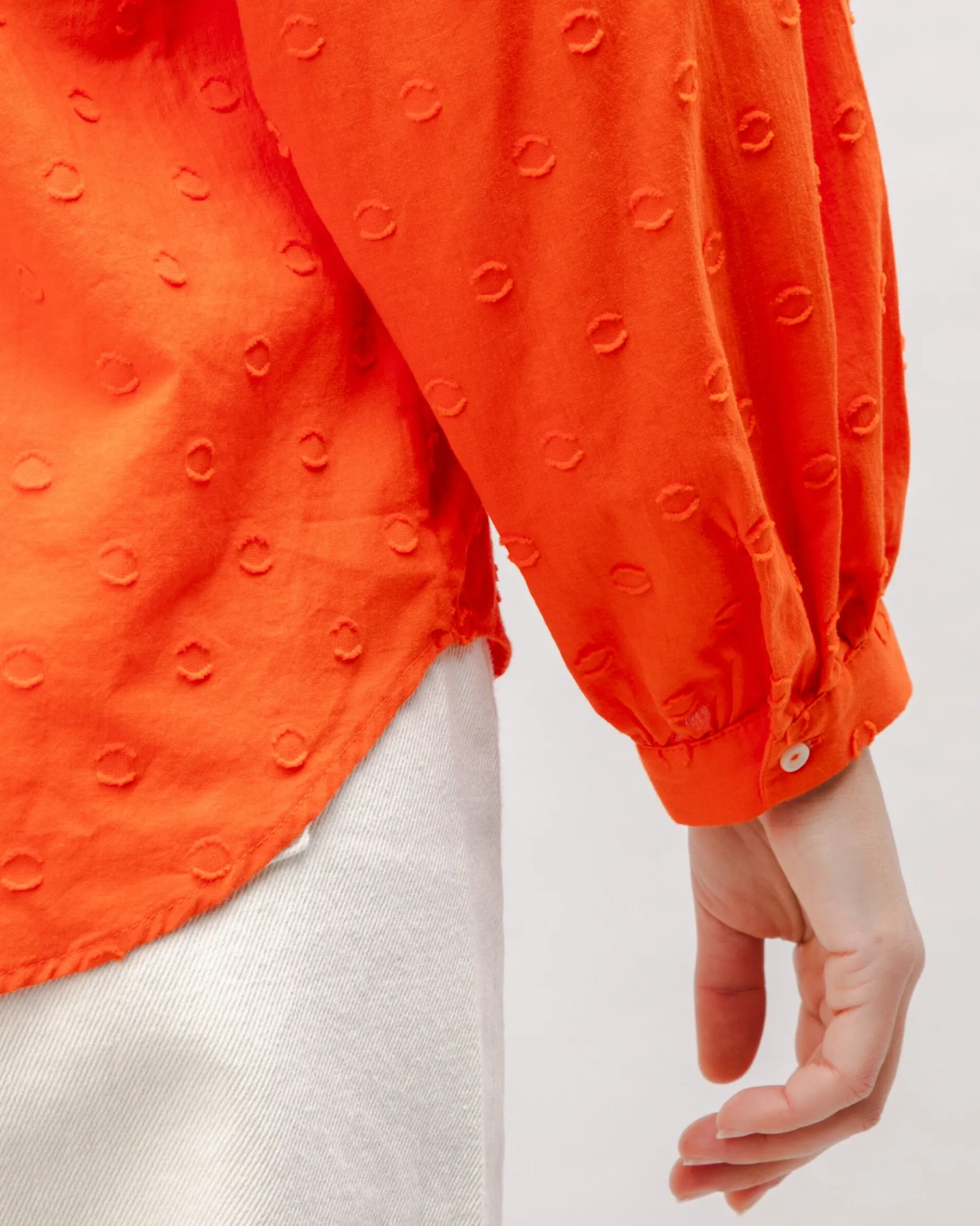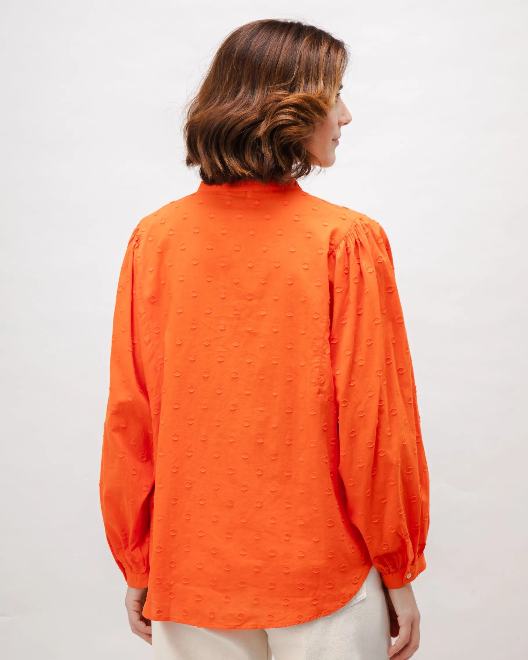Langärmelige Polka Dot Boho Bluse. Romantisches Design und leicht kombinierbar. Lockerer Fit und mit viel Liebe zum Detail unter fairen Bedingungen und aus 100% Bio-Baumwolle hergestellt.| Waschhinweise