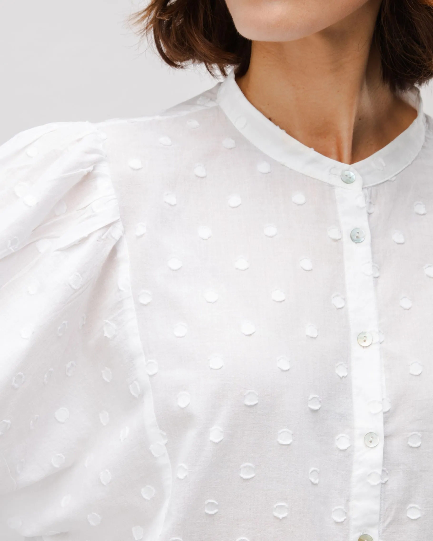 Polka Dot Romantic Baumwollbluse Weiß-Brava Fabrics Sale