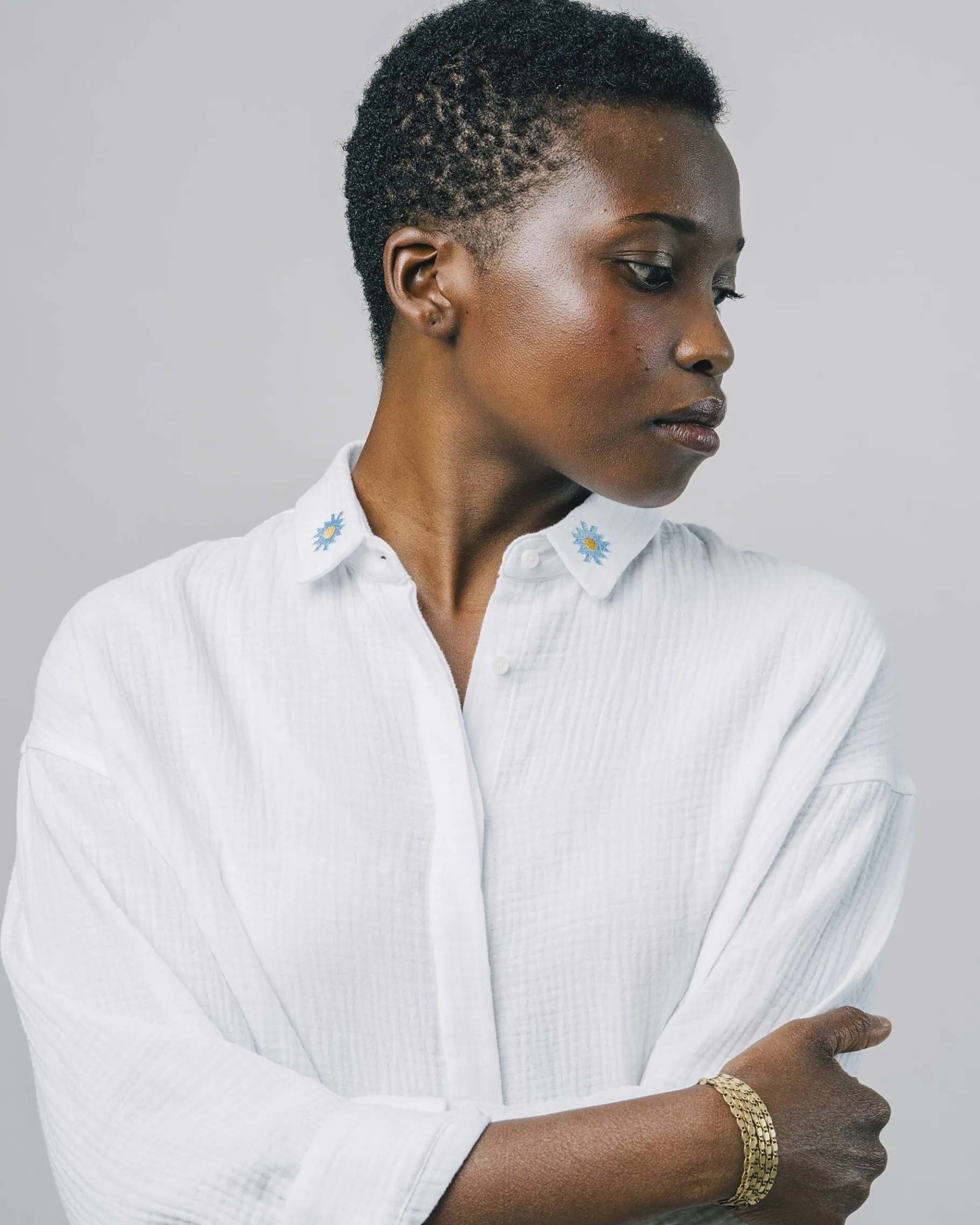 Sanft wie eine Sommerbrise: Dieses Teil kombiniert eine subtile Blumen-Stickereien am Kragen mit einem super weichen Material.