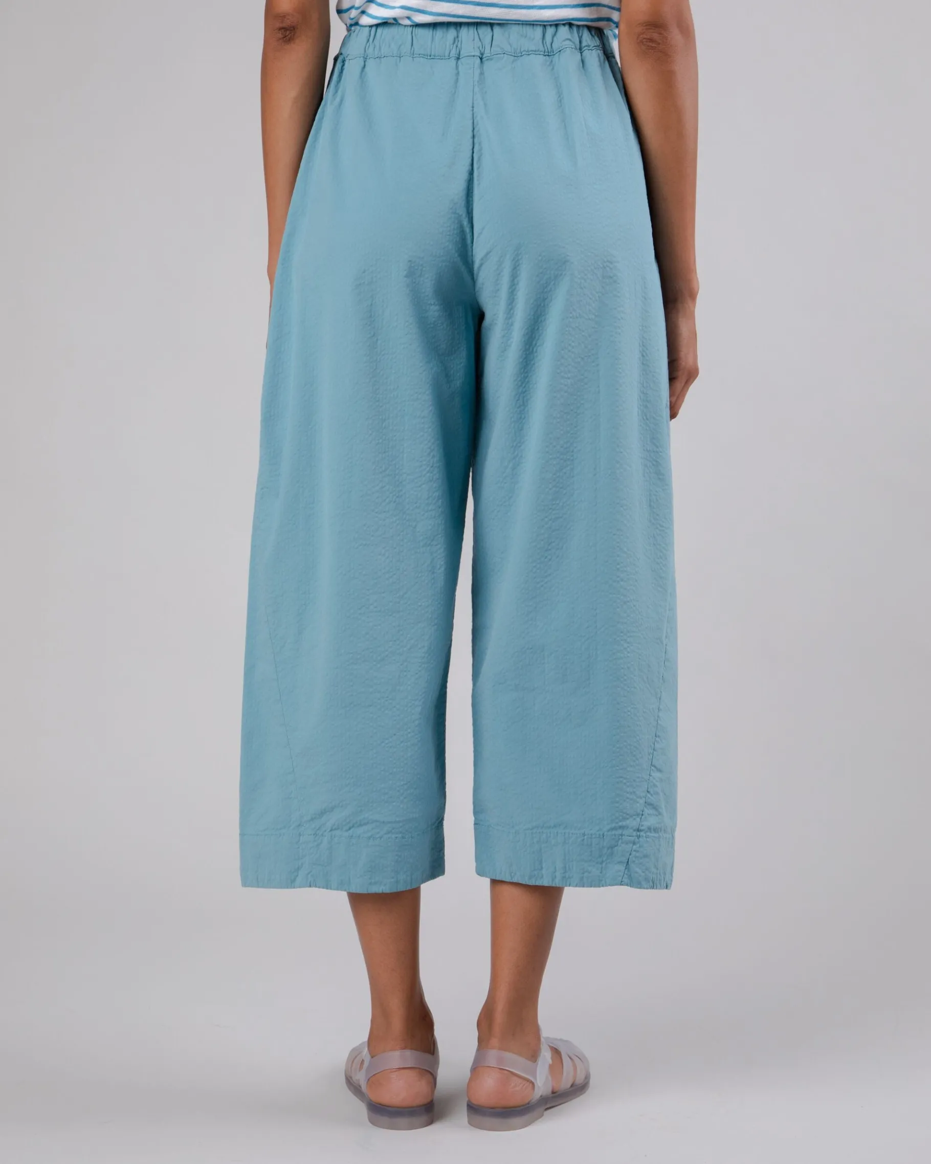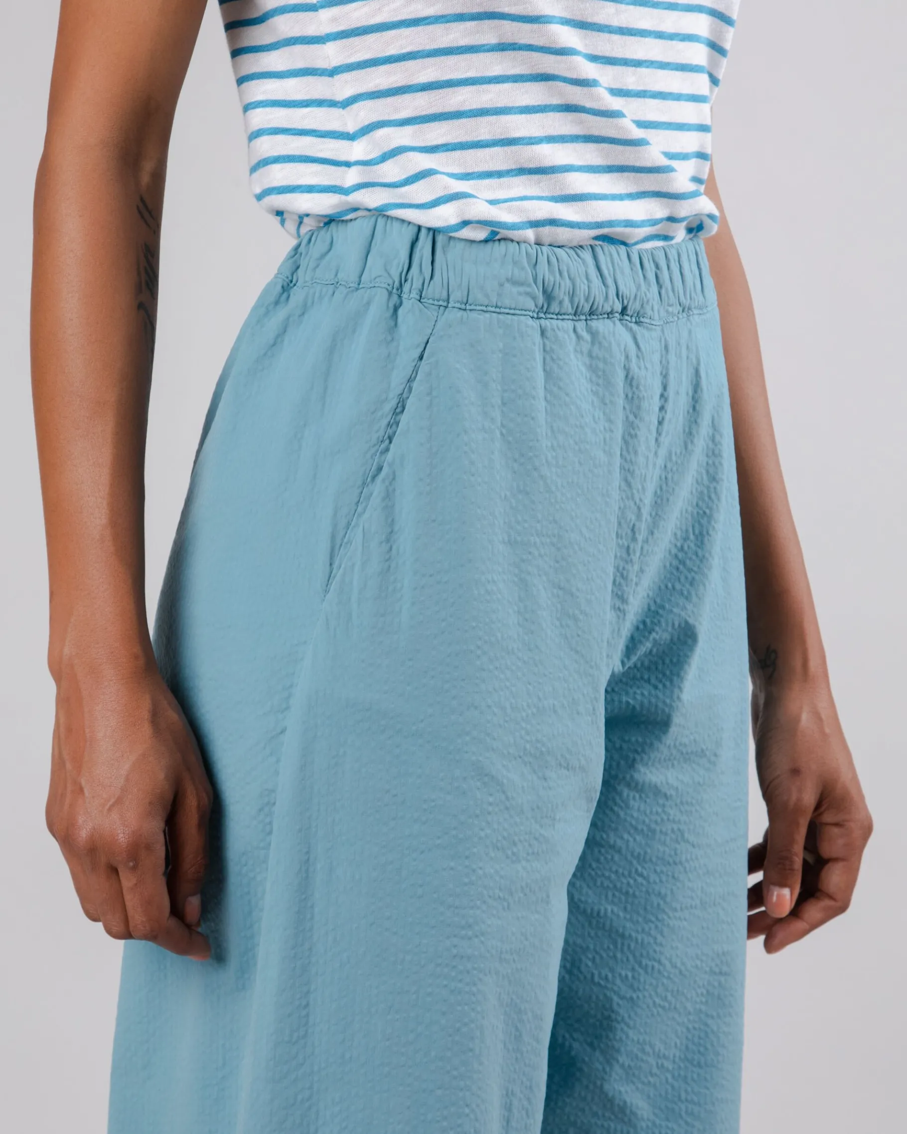 Gerade geschnittene lange Hose mit hohem Bein, elastischem Bund und Vordertaschen. Hergestellt aus Seersucker, einem leichten Stoff. Ethisch hergestellt aus Bio-Baumwolle und Elastan.| Waschhinweise