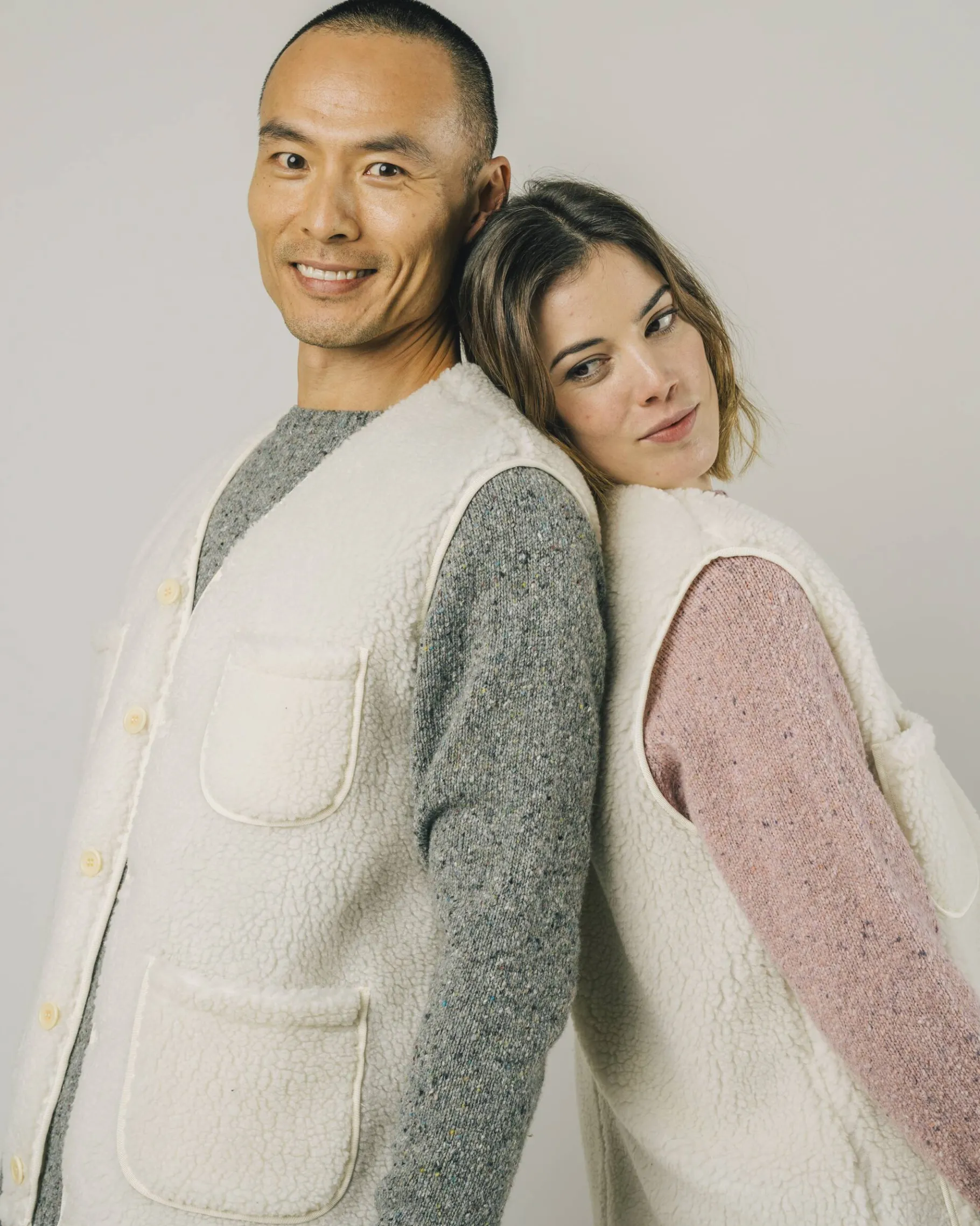 Wahrscheinlich unsere weichste und bequemste Kreation aller Zeiten! Diese zeitlose und vielseitige Sherpa-Weste verwandelt jedes Outfit in einen echten Blickfang.