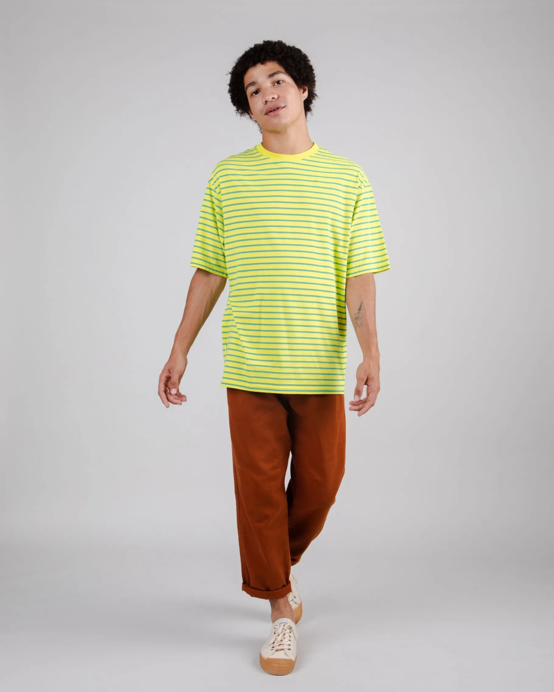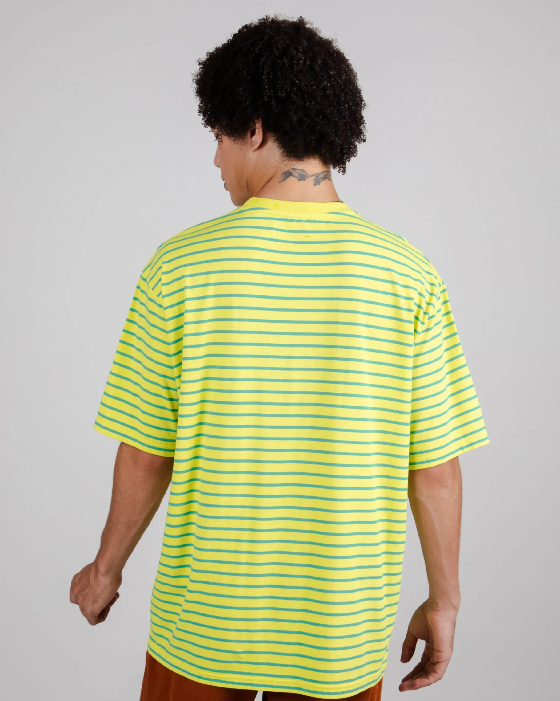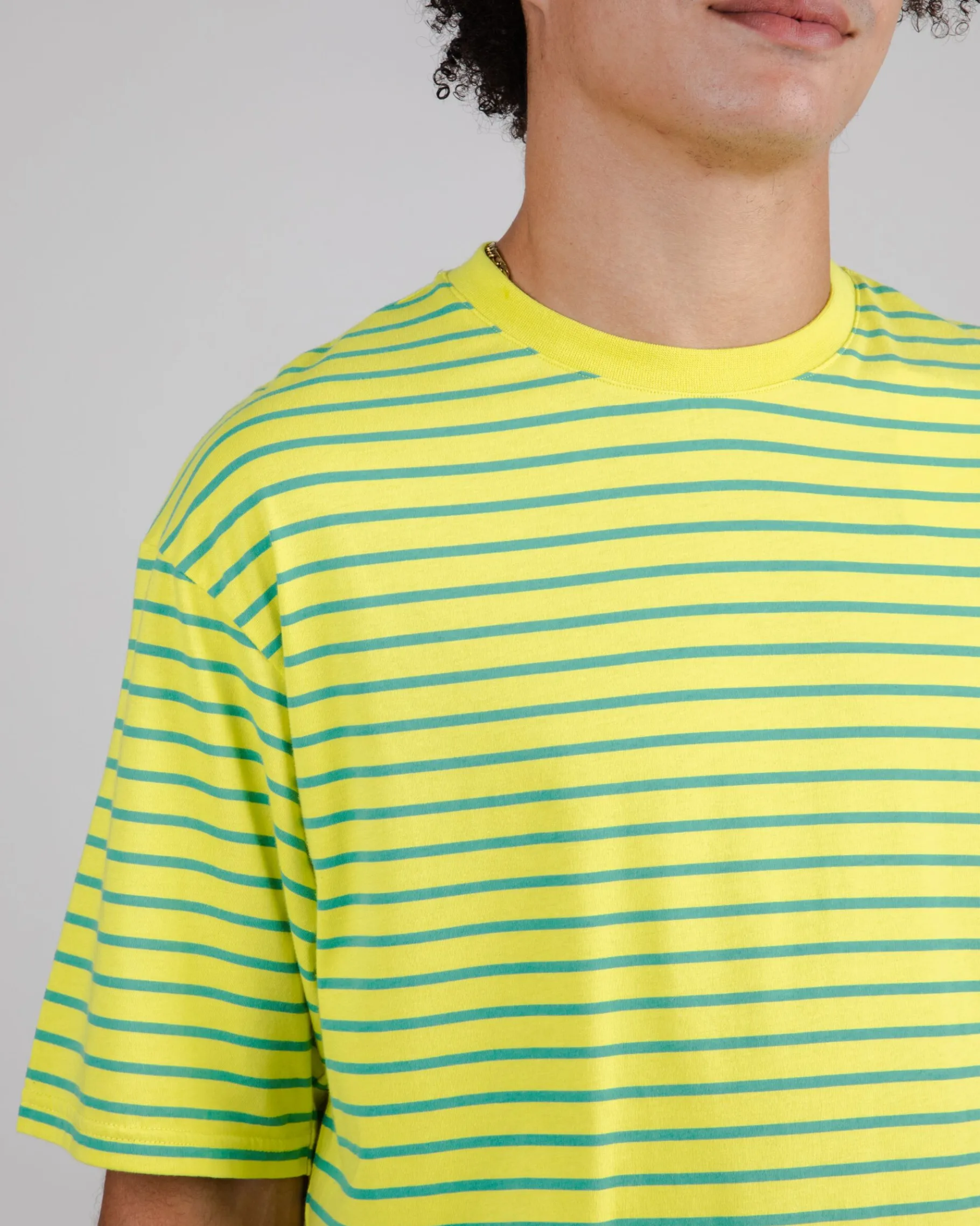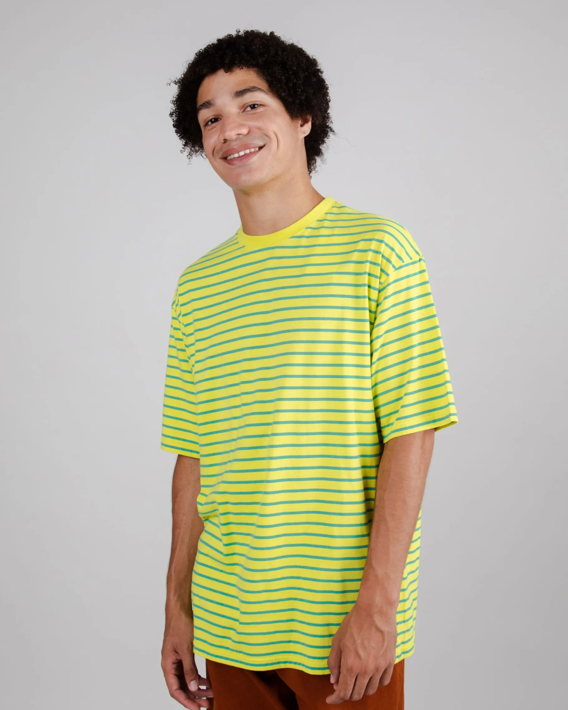 Gestreiftes Kurzarm-T-Shirt in Übergröße mit leicht überschnittener Schulter und Rundkragen. Ethisch hergestellt aus biologischer Baumwolle.| Waschhinweise
