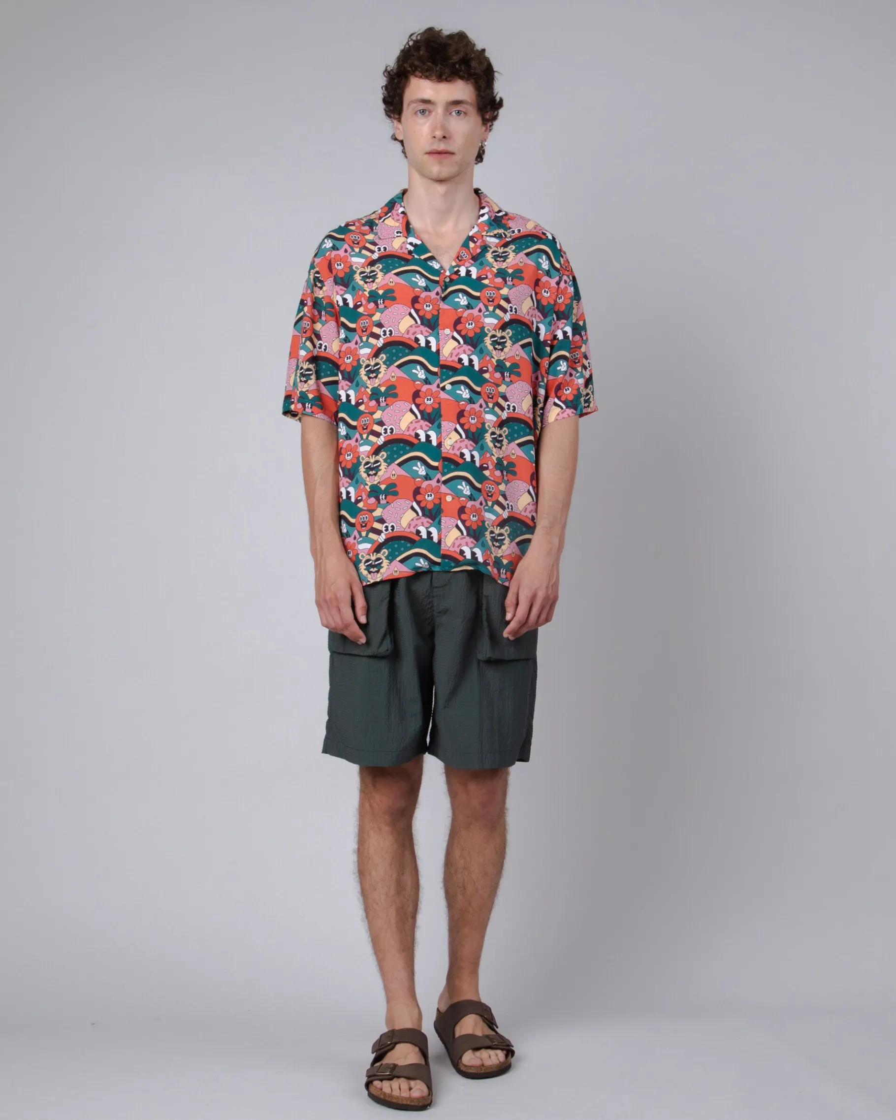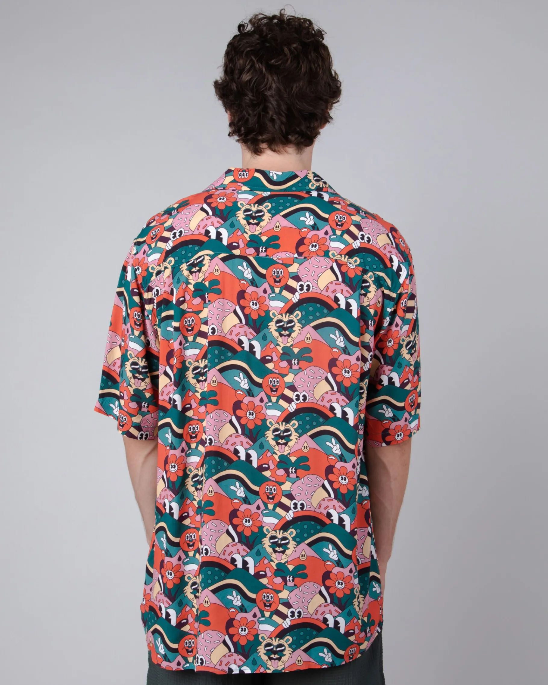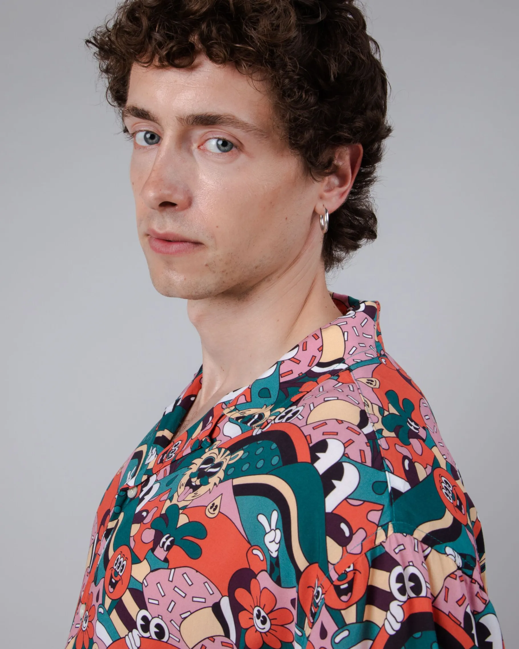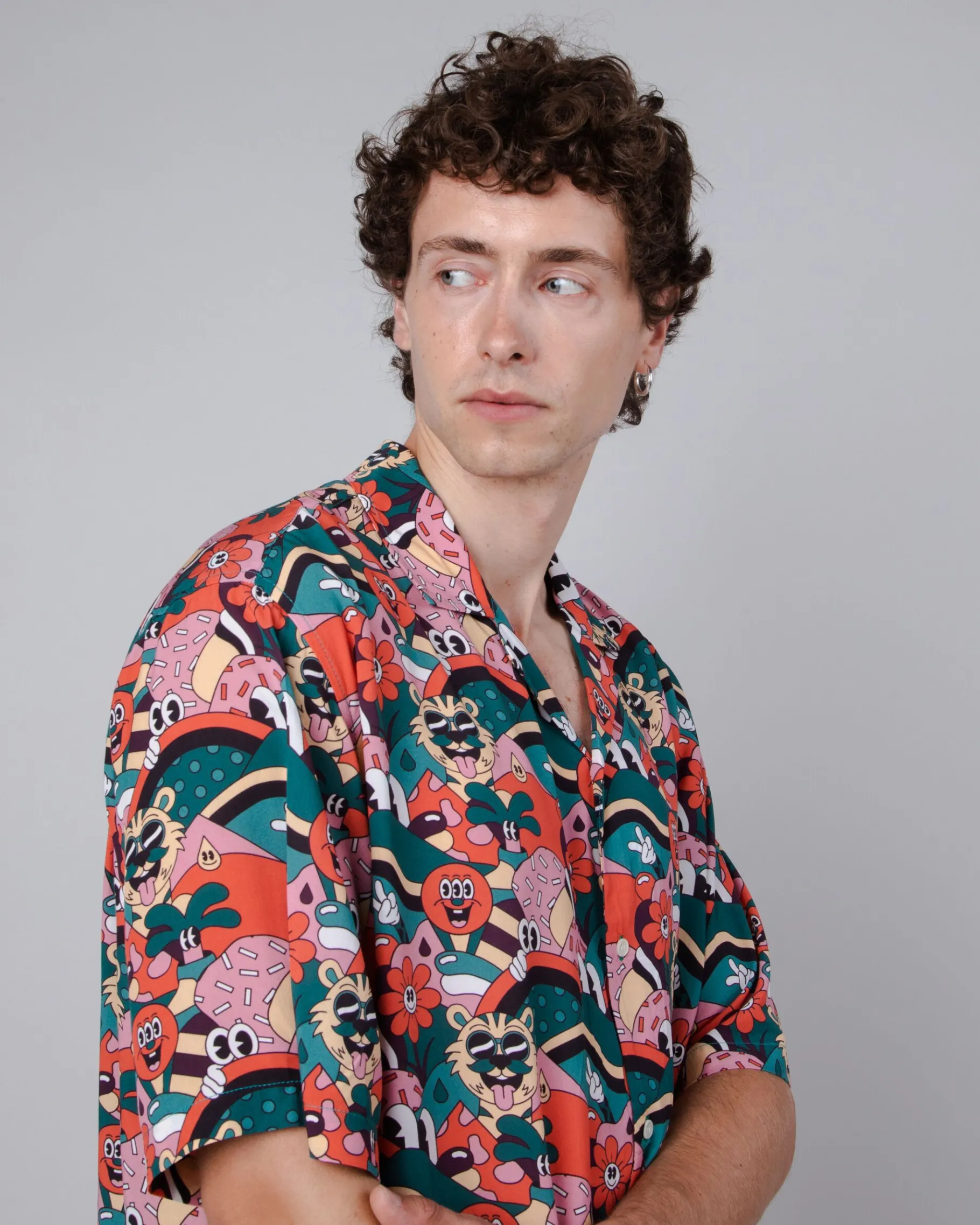 Kurzärmeliges Aloha-Shirt in entspannter Passform mit einer Illustration in Zusammenarbeit mit dem Künstler Yeye Weller. Es hat eine leicht überschnittene Schulter, einen geraden Saum, einen Reverskragen und einen Knopfverschluss. Ethisch hergestellt aus nachhaltiger Viskose.| Waschhinweise