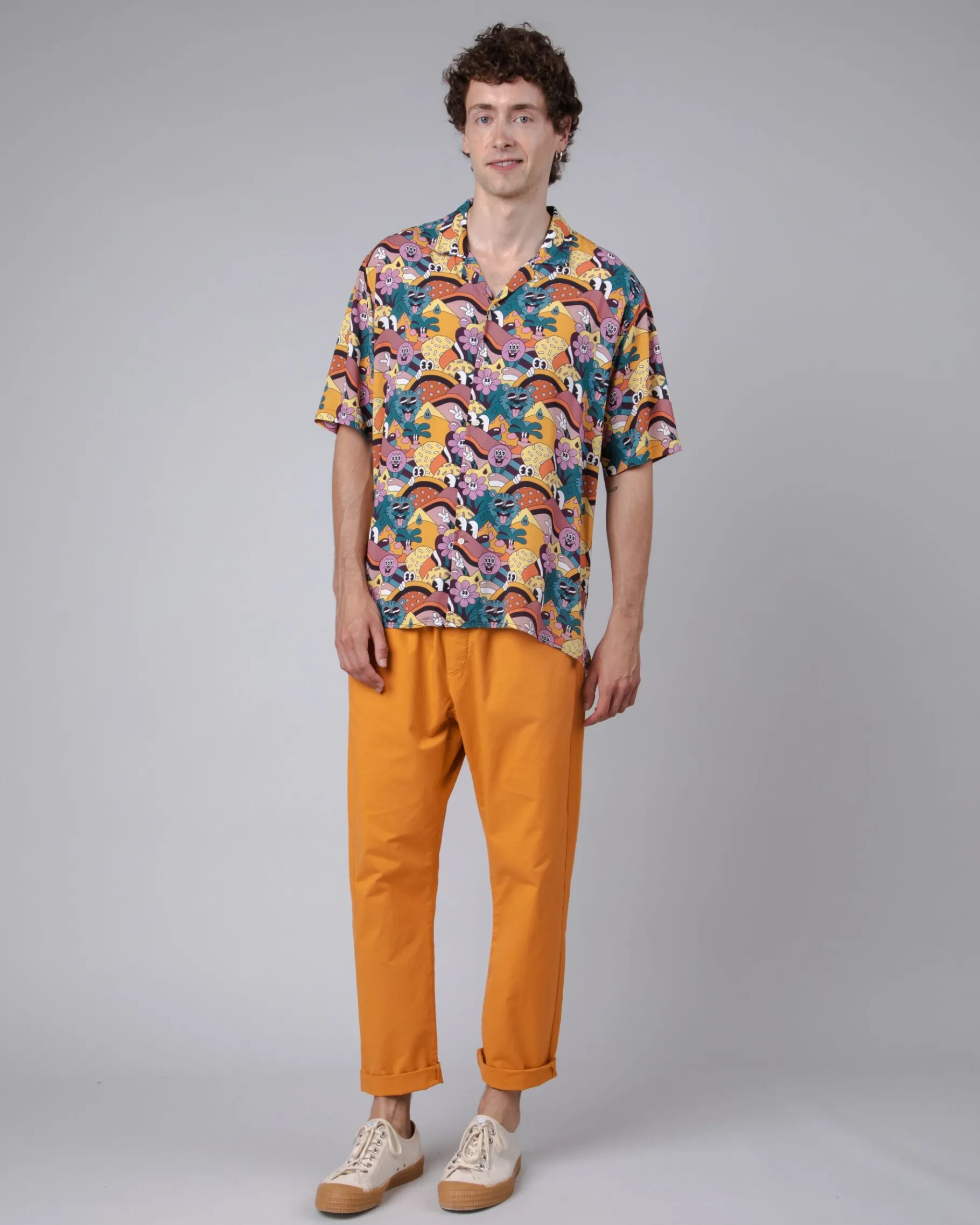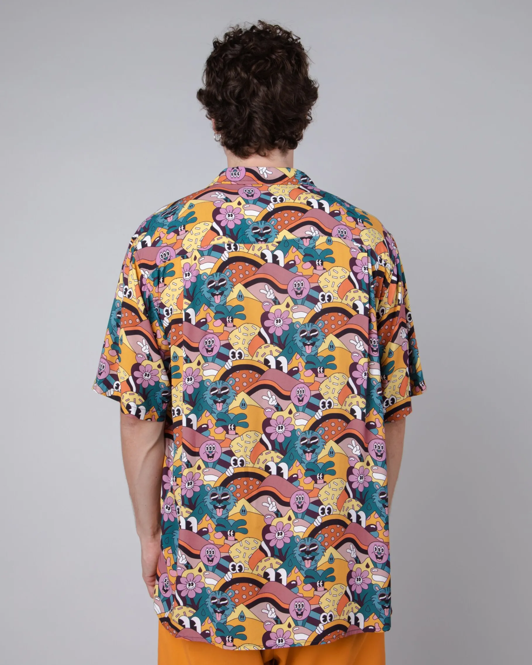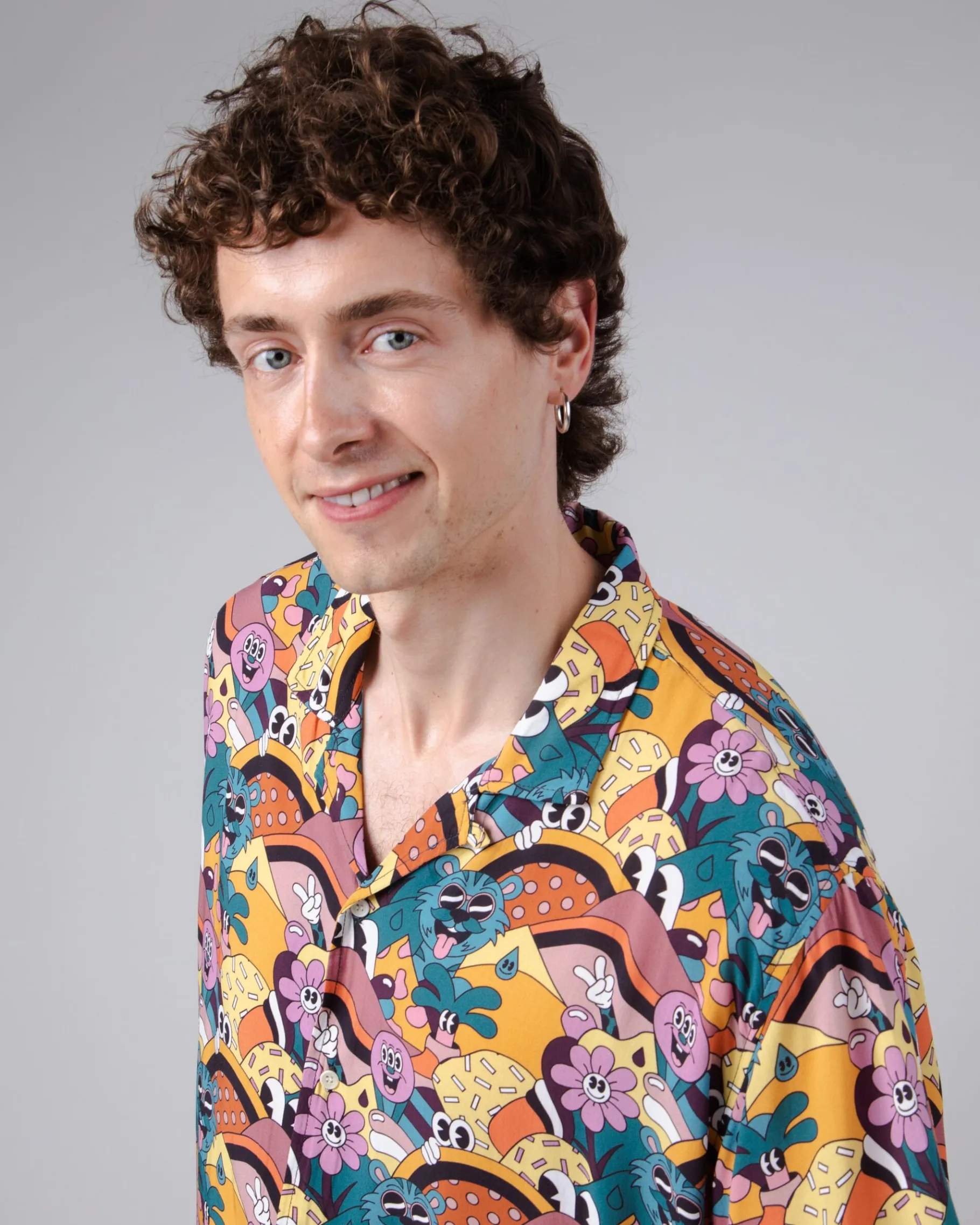 Kurzärmeliges Aloha-Shirt in entspannter Passform mit einer Illustration in Zusammenarbeit mit dem Künstler Yeye Weller. Es hat eine leicht überschnittene Schulter, einen geraden Saum, einen Reverskragen und einen Knopfverschluss. Ethisch hergestellt aus nachhaltiger Viskose.| Waschhinweise